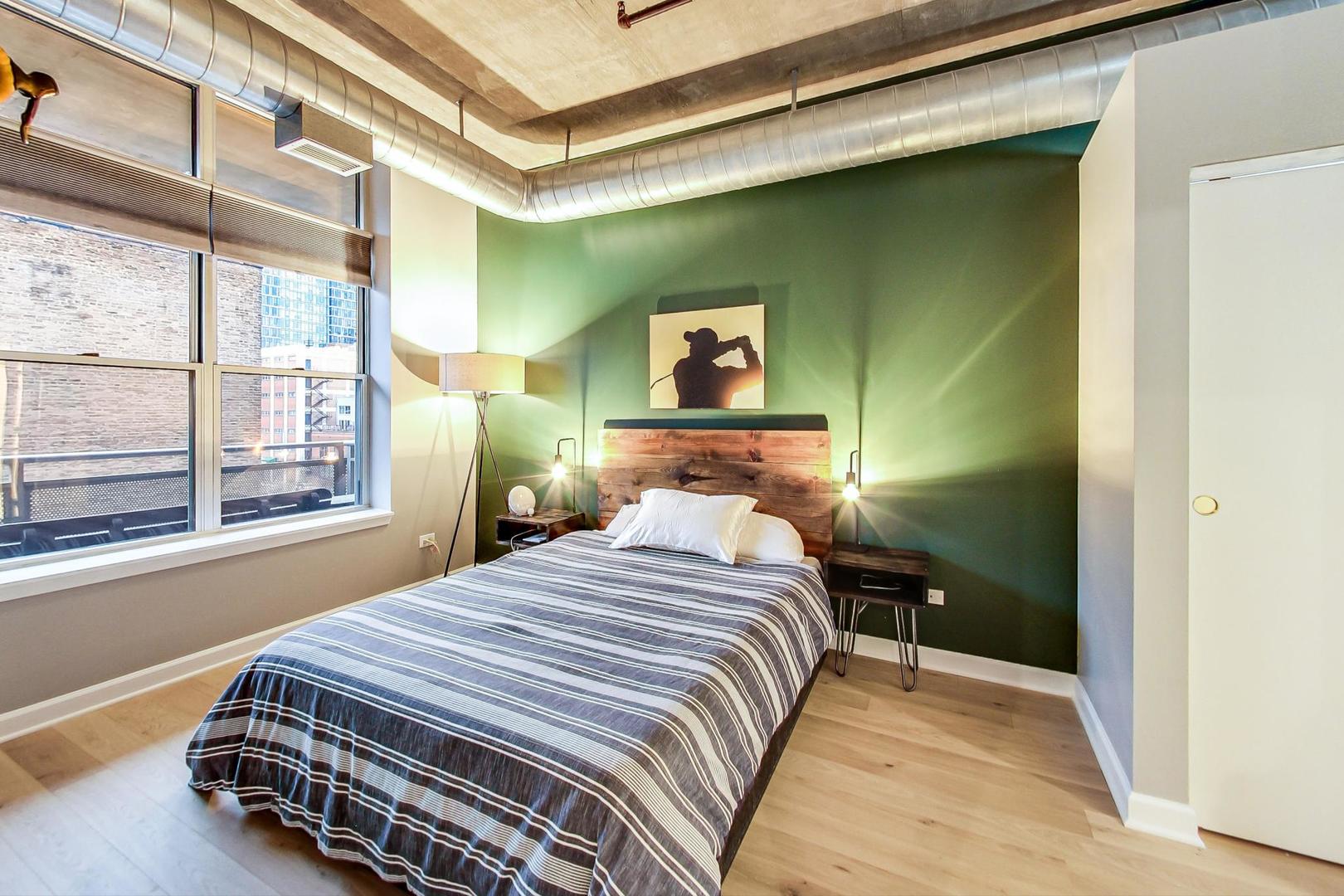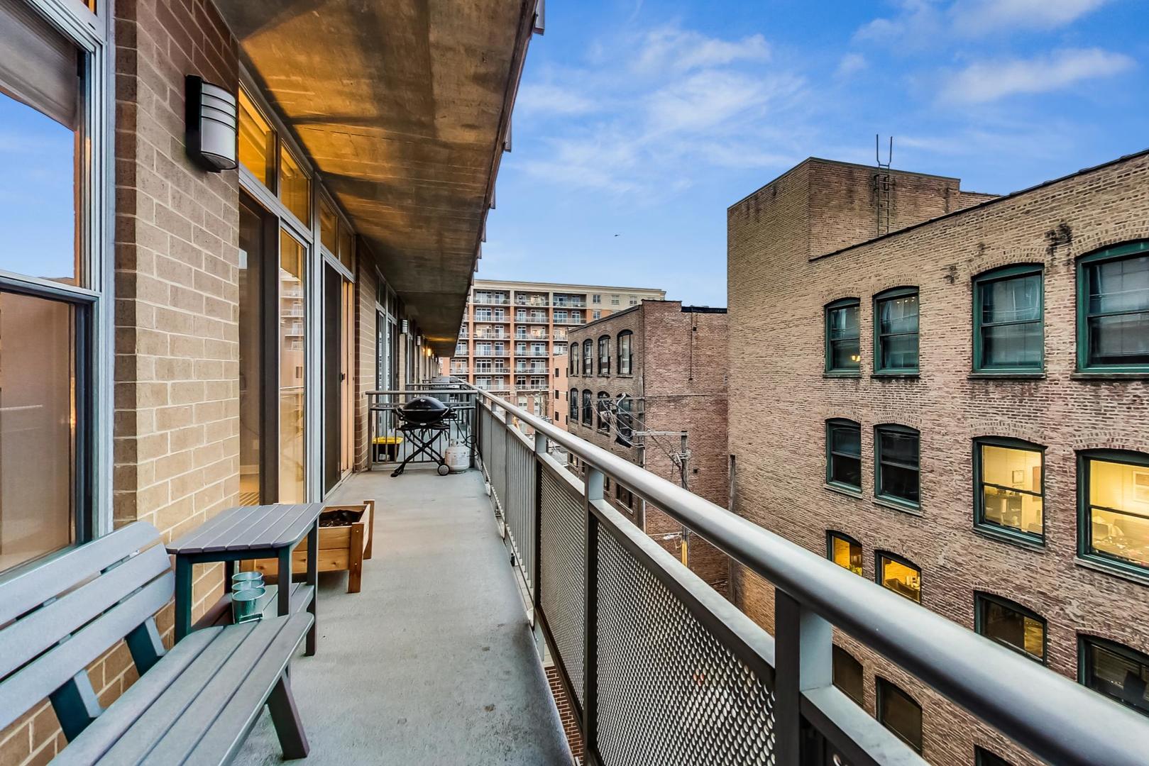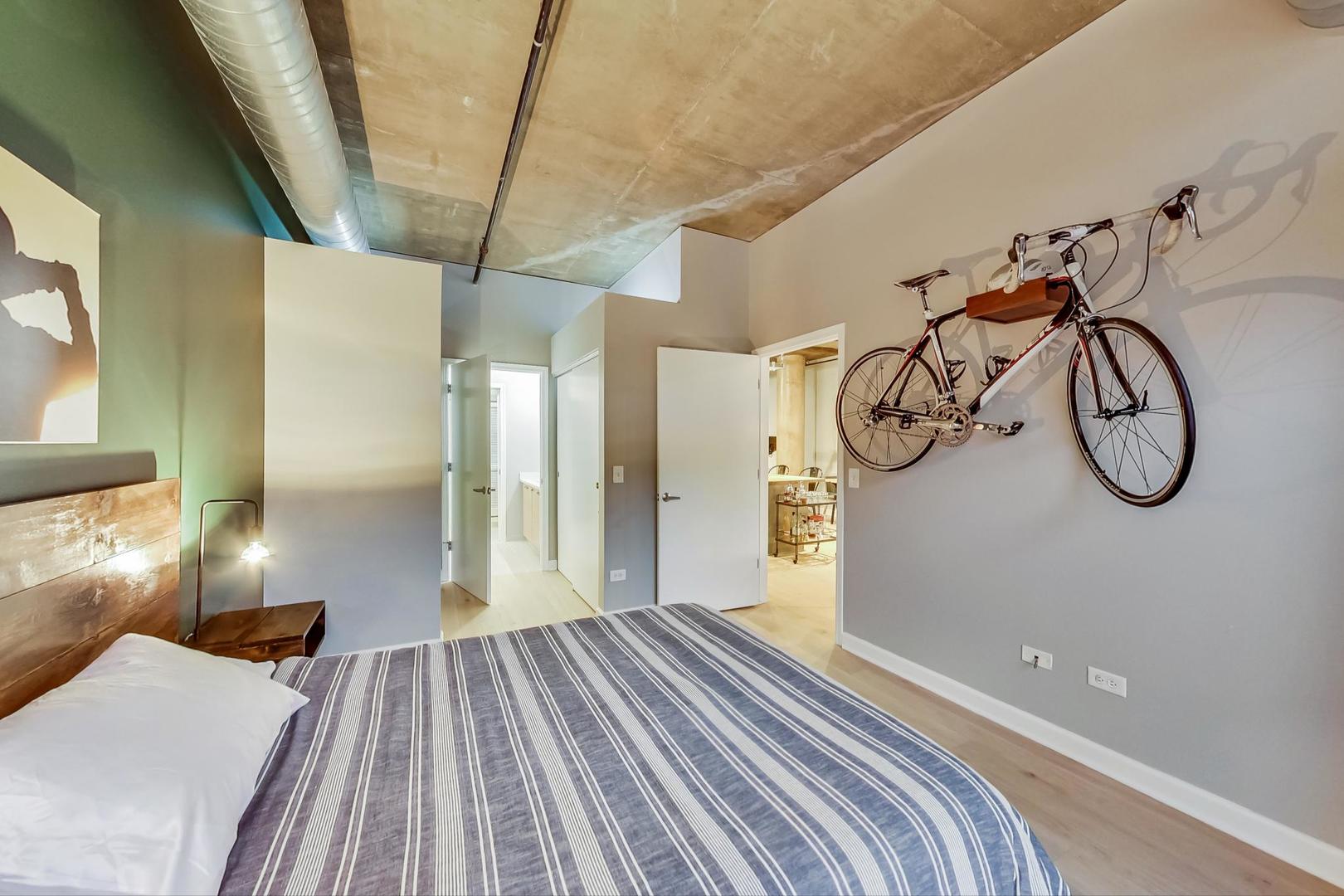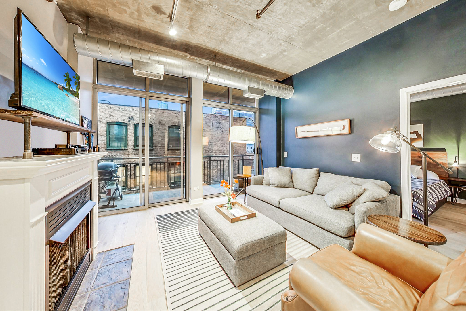 Stunning, freshly updated jumbo 1bed/1bath loft in the heart of West Loop w/ heated garage parking spot INCLUDED in price. Over $45k in updates throughout. This gracious floorpan has it all and lives more like a 1bed + den -- open living/dining, designated work space, newly expanded kitchen, pantry, numerous closets and outdoor space. Enjoy 10ft ceilings, a wall of floor-to-ceiling windows and brand new wide plank light Oak floors throughout. Recently updated kitchen (2020) w/ freshly painted cabinets, extended island, quartz countertops, upgraded range hood, new backsplash, sink, faucet, fridge, oven, and dishwasher. Living room is anchored by a handsome gas fireplace and opens onto a balcony that spans the entire width of the home for exceptional outdoor space. Fully enclosed bedroom with hardwood floors, high ceilings and walk-thru closet with professional organization system. Newly renovated full bath with Quartz double vanity, new mirror, lighting and subway tile shower. Efficient bathroom layout w/ privacy door that allows it to double as a powder room when hosting. Other bonuses include in-unit W/D, NEW furnace & AC as well as smart thermostat. One garage parking space included in the price as well as a storage unit. Have West Loop, Greek Town, Fulton Market, and the most popular restaurants in the city at your doorstep. Target, Marianos and Whole Foods just blocks away. Dog friendly building and Mary Bartelme Park next door. Building amenities also include doorperson, bike room, & on-site management. Fantastic home with an exceptional layout in an unbeatable location - it's not to be missed.