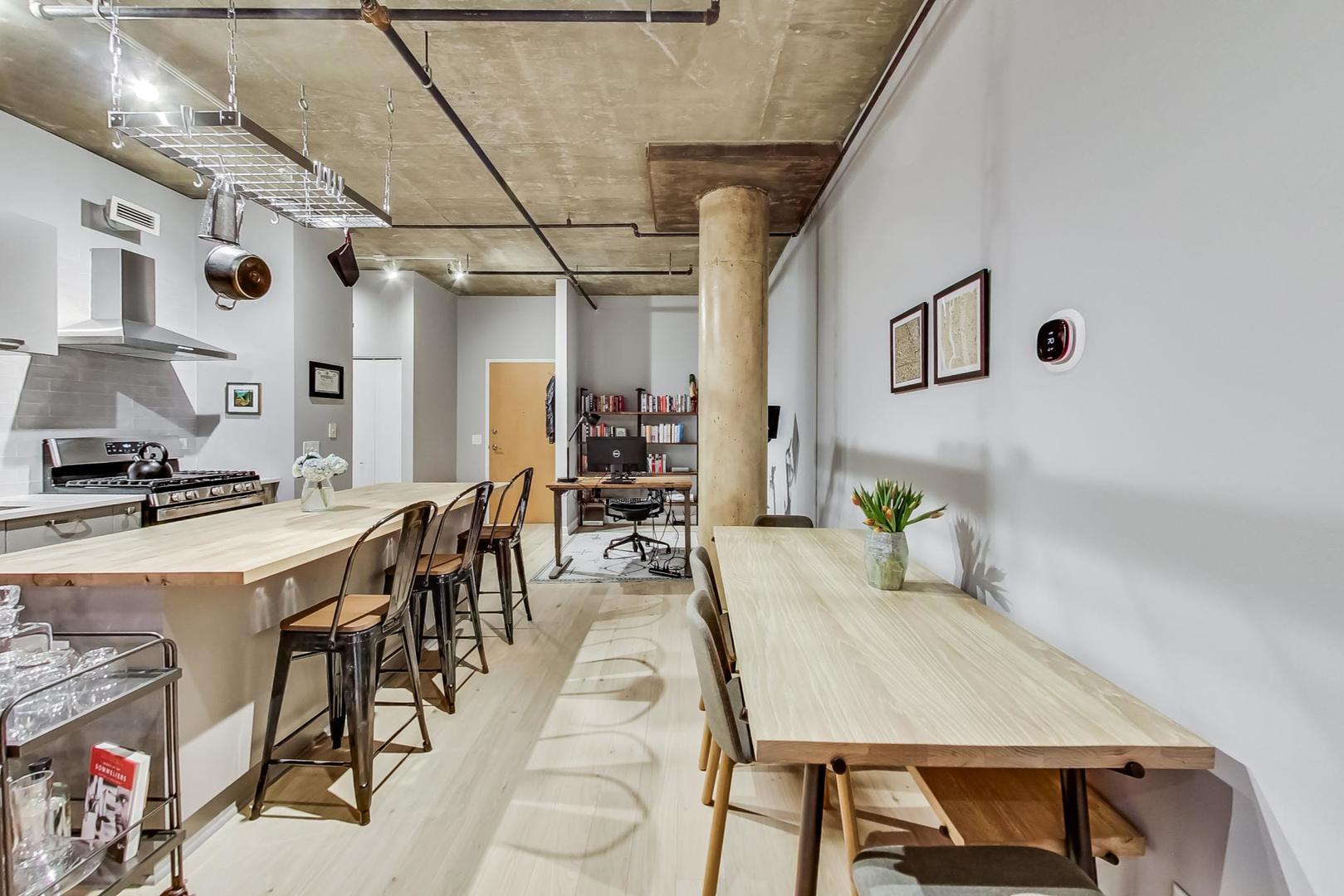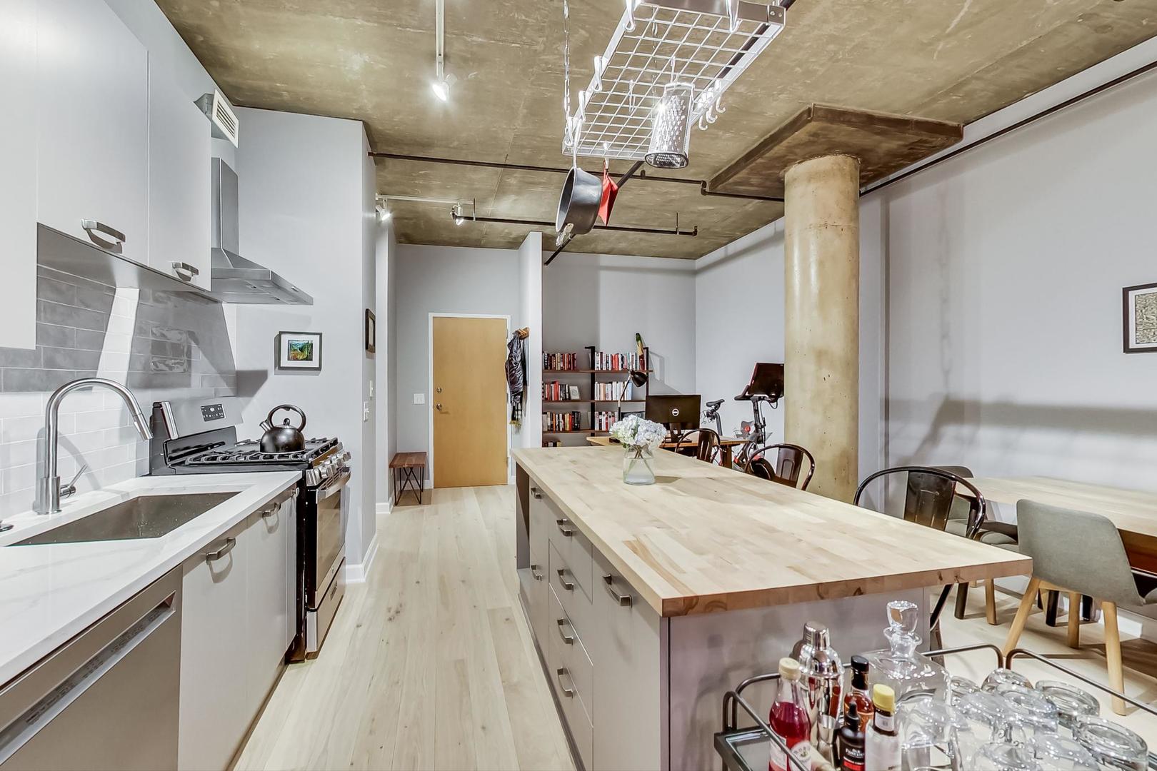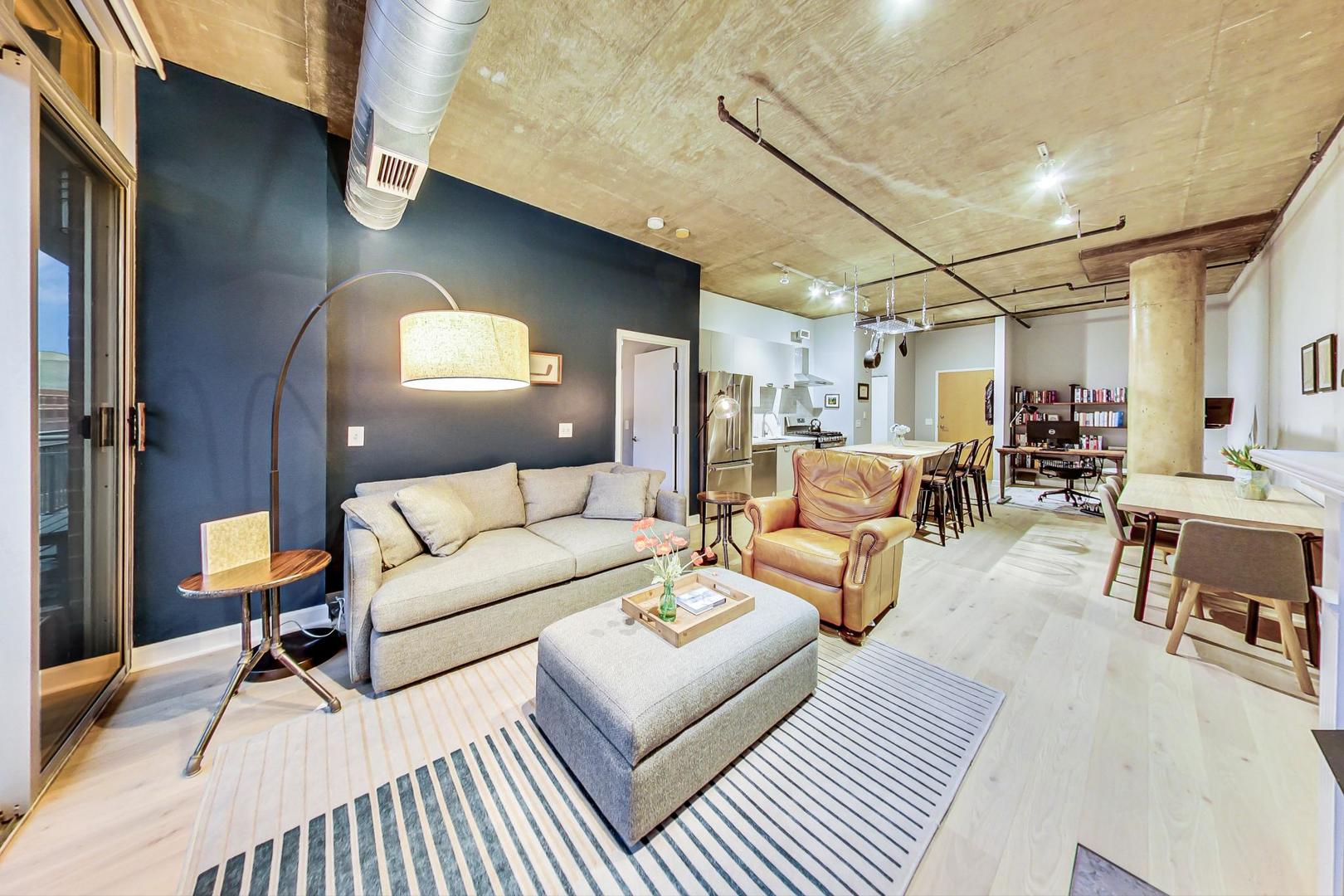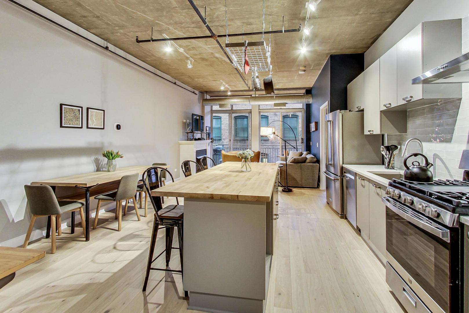 Stunning, freshly updated jumbo 1bed/1bath loft in the heart of West Loop w/ heated garage parking spot INCLUDED in price. Over $45k in updates throughout. This gracious floorpan has it all and lives more like a 1bed + den -- open living/dining, designated work space, newly expanded kitchen, pantry, numerous closets and outdoor space. Enjoy 10ft ceilings, a wall of floor-to-ceiling windows and brand new wide plank light Oak floors throughout. Recently updated kitchen (2020) w/ freshly painted cabinets, extended island, quartz countertops, upgraded range hood, new backsplash, sink, faucet, fridge, oven, and dishwasher. Living room is anchored by a handsome gas fireplace and opens onto a balcony that spans the entire width of the home for exceptional outdoor space. Fully enclosed bedroom with hardwood floors, high ceilings and walk-thru closet with professional organization system. Newly renovated full bath with Quartz double vanity, new mirror, lighting and subway tile shower. Efficient bathroom layout w/ privacy door that allows it to double as a powder room when hosting. Other bonuses include in-unit W/D, NEW furnace & AC as well as smart thermostat. One garage parking space included in the price as well as a storage unit. Have West Loop, Greek Town, Fulton Market, and the most popular restaurants in the city at your doorstep. Target, Marianos and Whole Foods just blocks away. Dog friendly building and Mary Bartelme Park next door. Building amenities also include doorperson, bike room, & on-site management. Fantastic home with an exceptional layout in an unbeatable location - it's not to be missed.