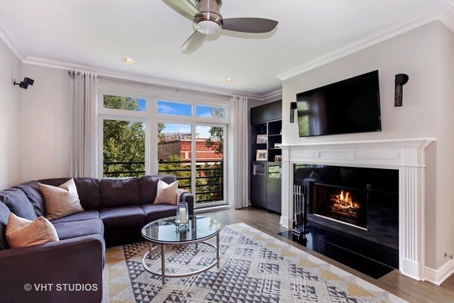 Sun-drenched, extra-wide and highly updated 3 bedroom, 2 bathroom on quiet Thomas St. steps from all that Wicker Park has to offer. Multiple public transportation options right outside your door. Remodeled kitchen with built-in Wolf coffee/espresso machine, built-in Wolf drawer-style microwave and new hood exhaust. Full size washer/dryer recently added as well as decorative lighting, wainscoting/trim, and Bose surround speakers. Refinished hardwood flooring throughout with additional flooring added to all bedrooms. Property is freshly painted. Large private deck, additional walk-in storage locker and heated, attached parking space included in the price.