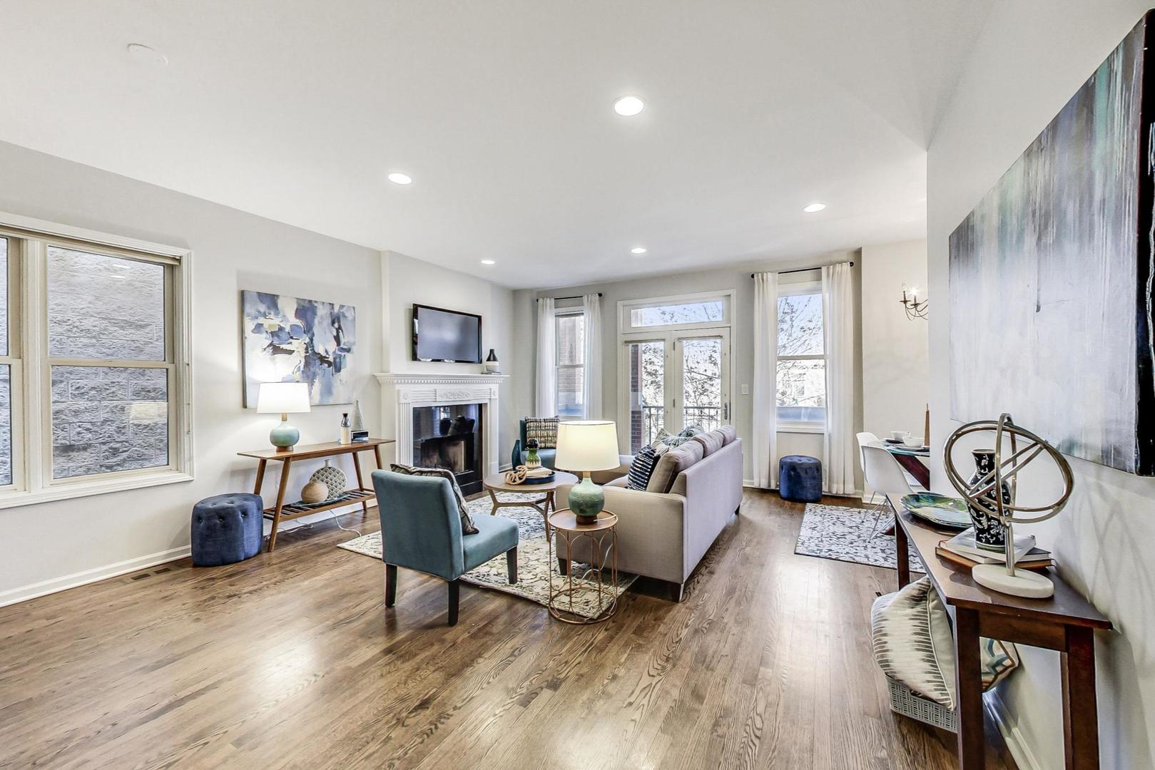 Stunning & spacious 3bed/2bath in the heart of Old Town w/ attached garage parking! Enjoy 1500+ sqft of hardwood floors & 9ft ceilings, along with a charming wood burning/gas start fireplace & gracious front & back balconies. Expansive open concept living room with large windows & versatile dinning space that could easily double as the perfect work-from-home office space. Gorgeous kitchen with oversized breakfast bar w/ generous seating, granite countertops, white maple cabinets, all SS appliances & separate pantry. Massive primary suite with 2 walk-in closets, additional balcony, & en-suite bath w/ whirlpool tub & separate shower. Bedrooms 2 & 3 are large in size and offer ample closet space. All new solid core doors. Side by Side W/D in-unit. Just steps to the Brown Line, great shopping, restaurants, and all the charm & entertainment of Old Town at your backdoor. Garage parking spot & storage included!