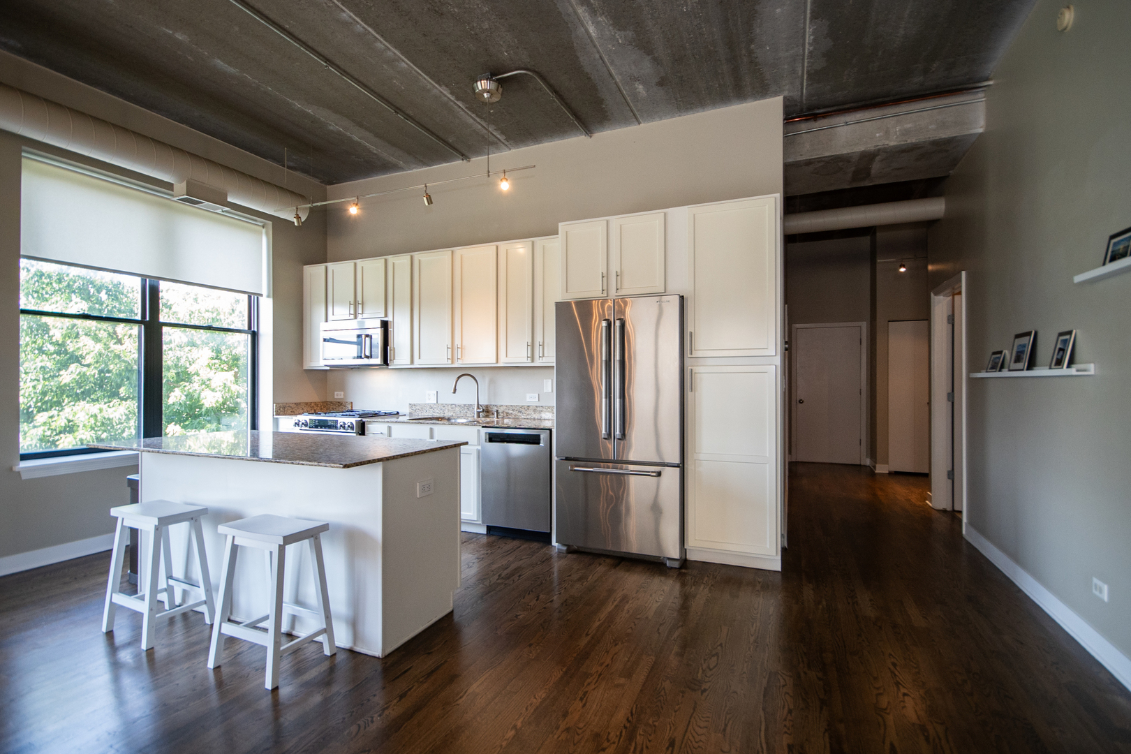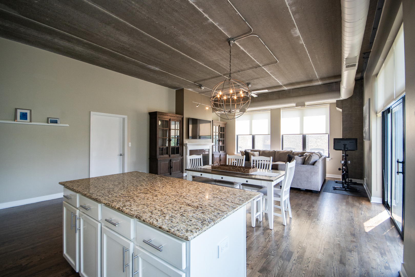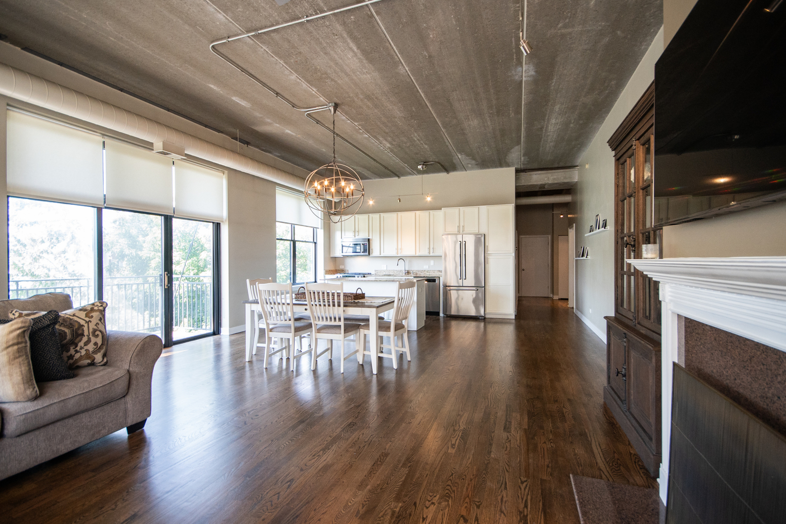 Bright & spacious Lakeview 3-bedroom/2-bath southeast corner unit at the historic Cinema Lofts! Extra wide open floor plan is perfect for entertaining. Huge living room/dining room combo features 11' concrete ceilings, two walls of giant windows, exposed ductwork, gas fireplace, plenty of room for a large dining table and sliding doors to a private south facing balcony. Kitchen includes granite countertops, stainless steel appliances, 42" wood cabinets, and a large island with breakfast bar. Primary bedroom features a remodeled ensuite bathroom with dual sinks, custom tiled shower with frameless glass shower door, and a large walk-in closet. All bedrooms are fully enclosed. Dark stained hardwood floors throughout living space, massive walk-in laundry room/pantry/storage room with full height shelving. Assigned heated garage parking space and a storage unit are included. Professionally managed building features door staff, fitness center, and a spacious rooftop terrace with firepits and skyline views. Located in the highly rated Burley Elementary school district! Amazing location is close to Paulina & Southport Brown Line stops, Whole Foods, Target, Jewel, Xsport Fitness, Lakeview YMCA, Southport Corridor & Roscoe Village shopping, restaurants & theaters.