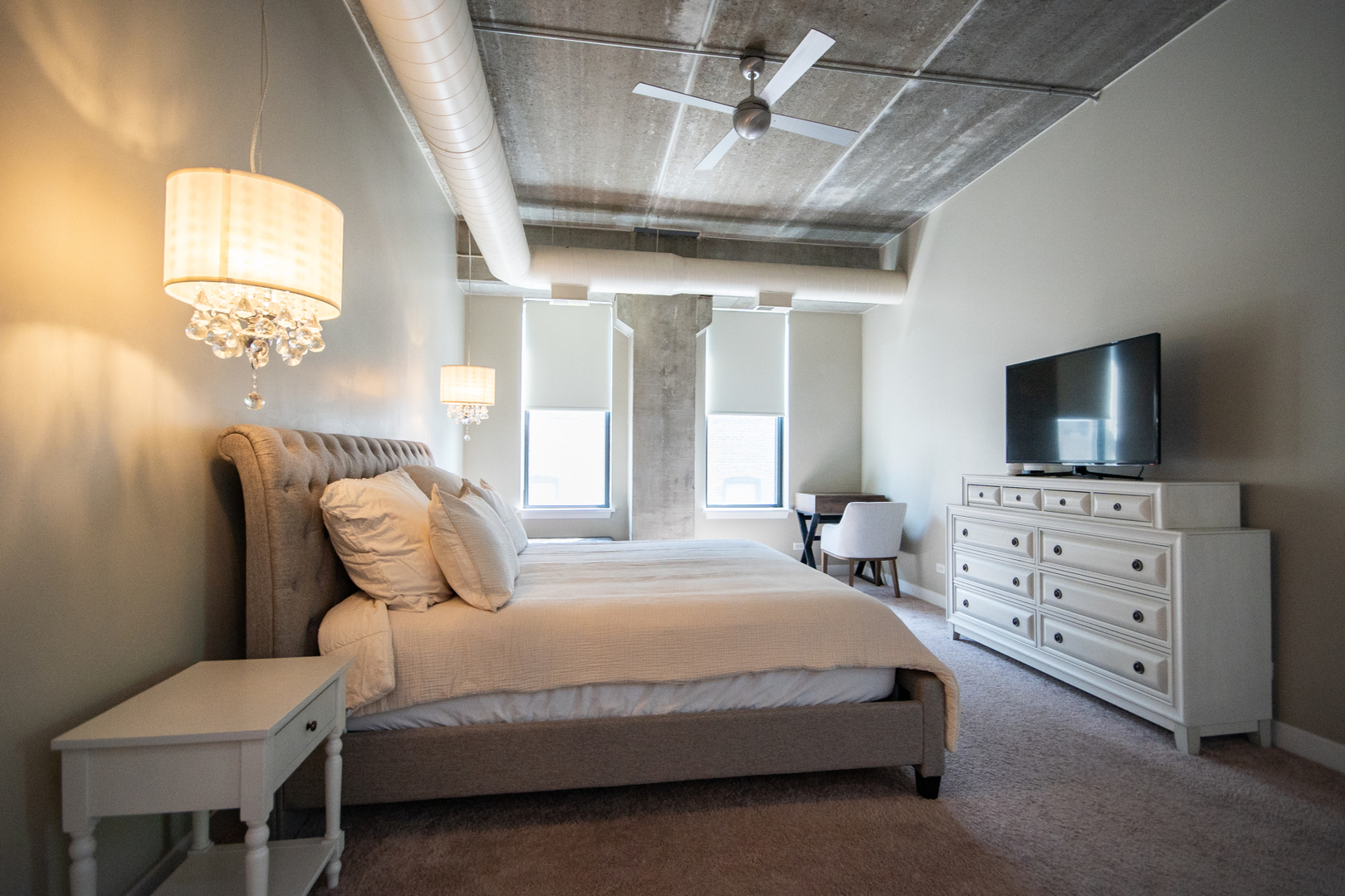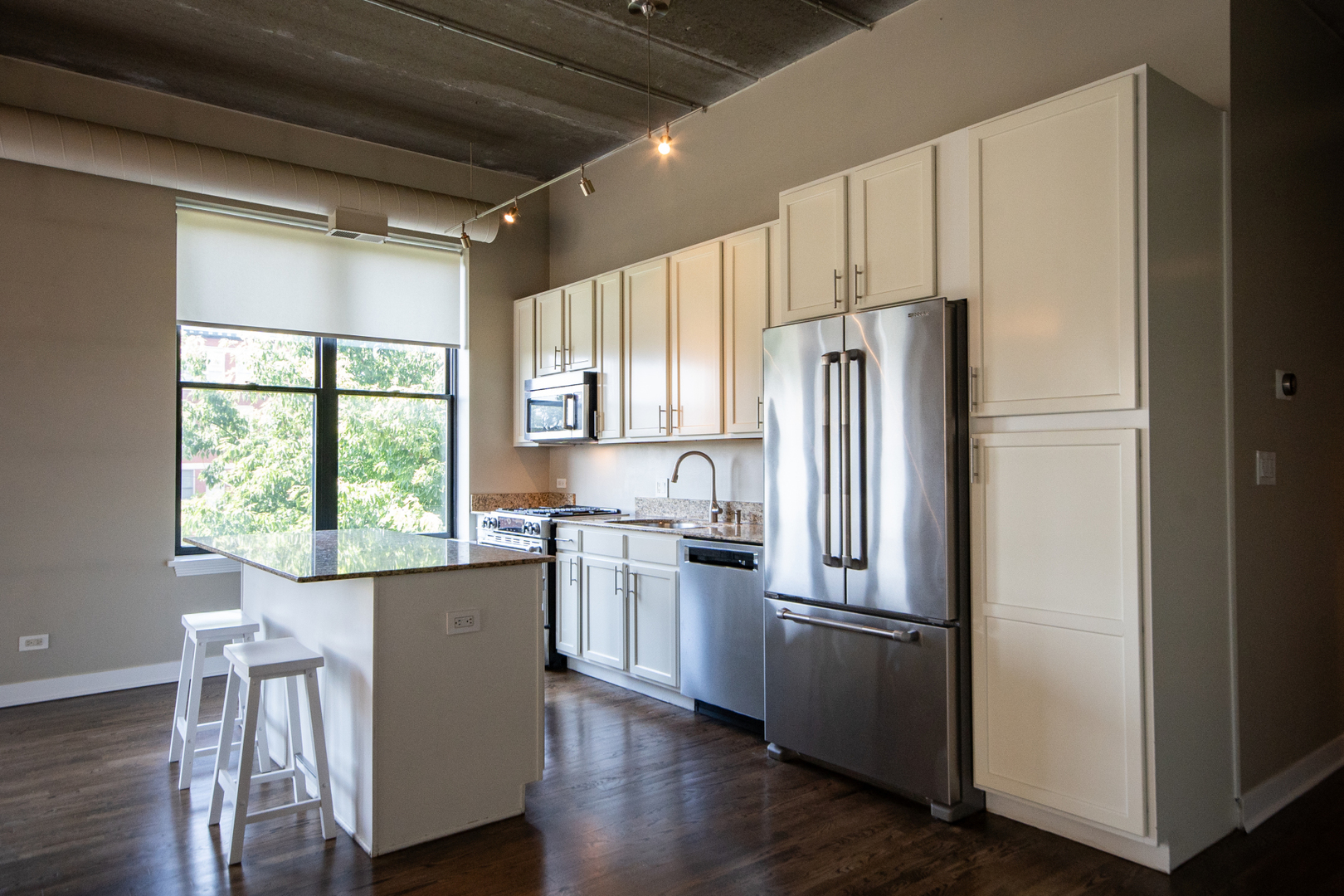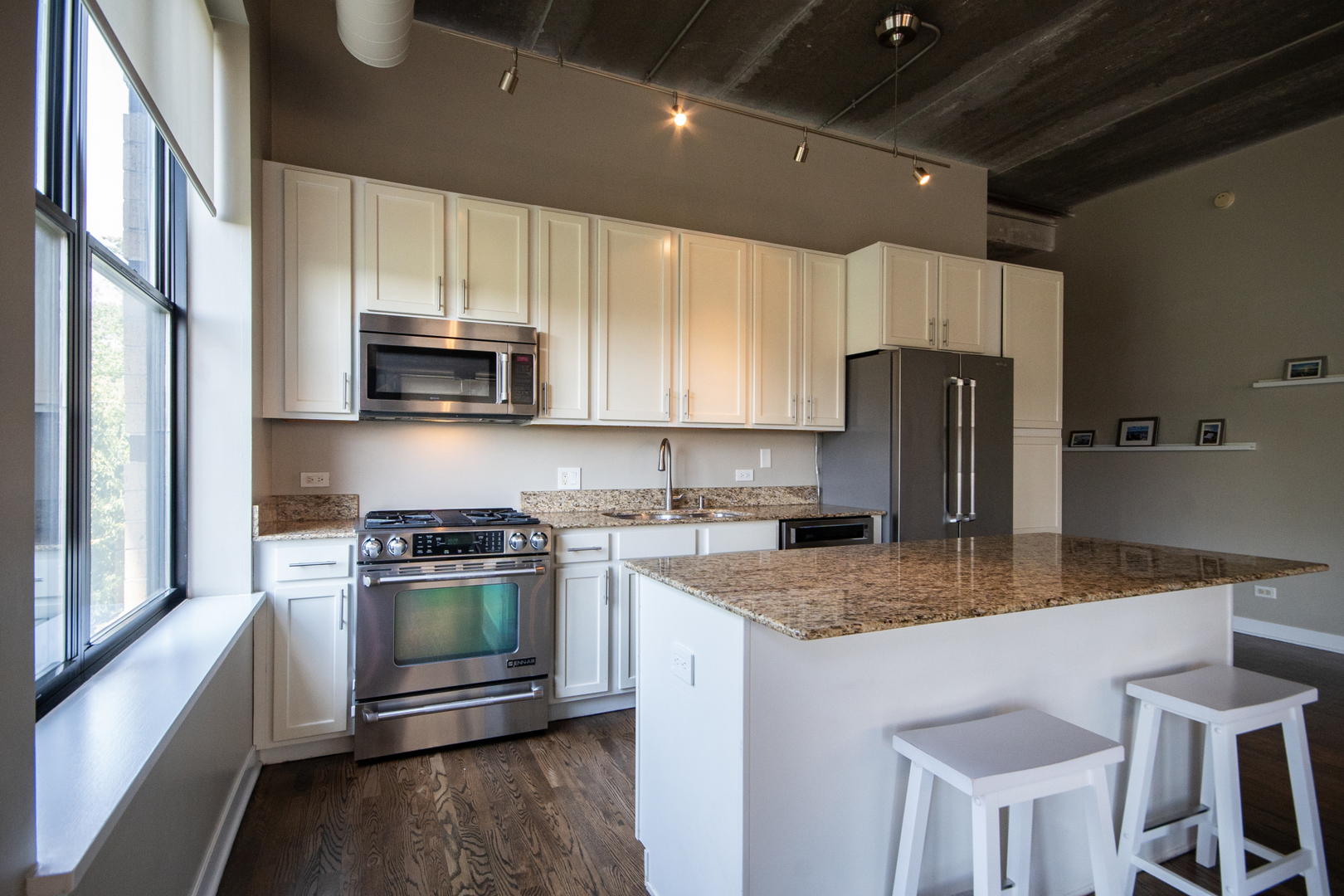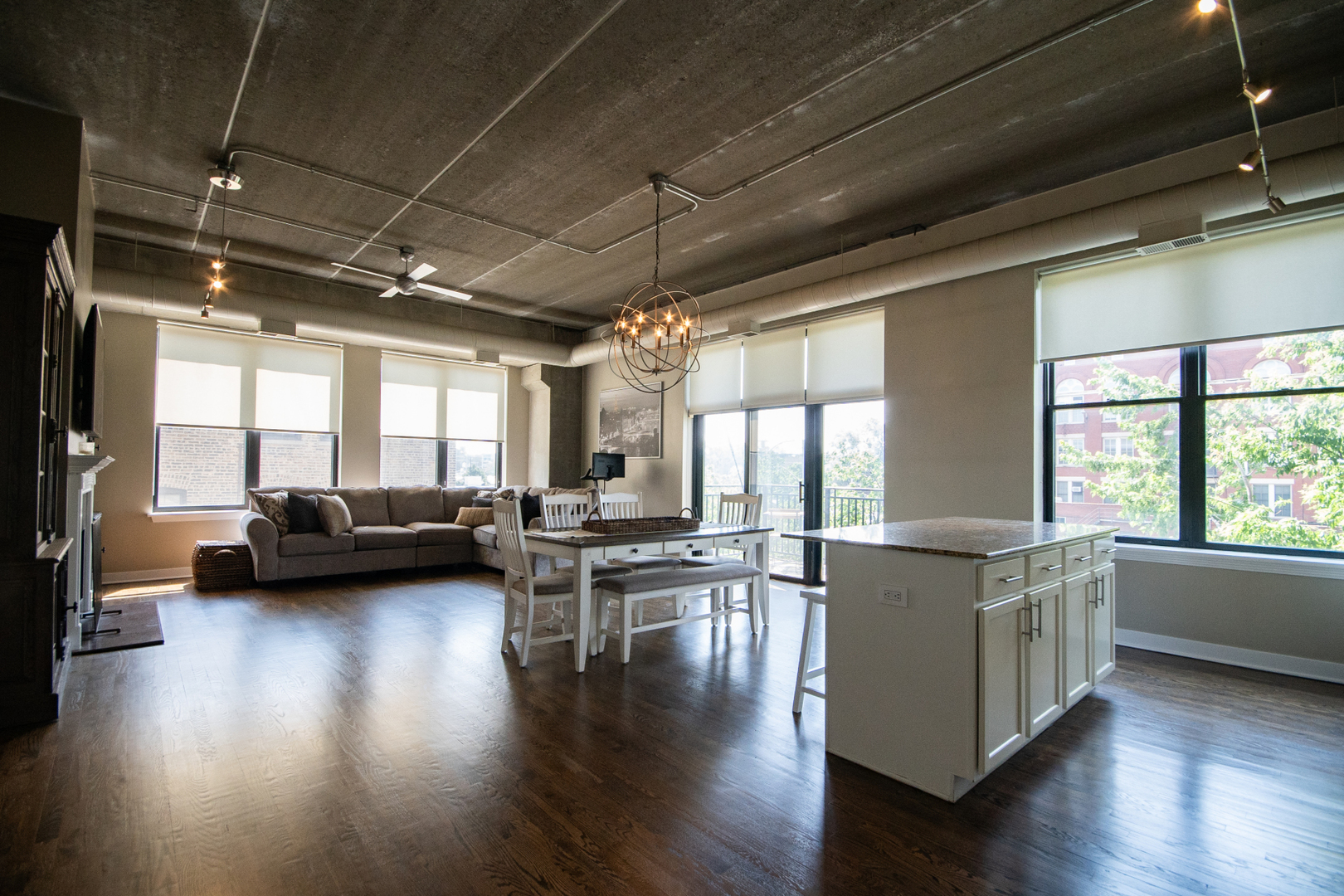 Bright & spacious Lakeview 3-bedroom/2-bath southeast corner unit at the historic Cinema Lofts! Extra wide open floor plan is perfect for entertaining. Huge living room/dining room combo features 11' concrete ceilings, two walls of giant windows, exposed ductwork, gas fireplace, plenty of room for a large dining table and sliding doors to a private south facing balcony. Kitchen includes granite countertops, stainless steel appliances, 42" wood cabinets, and a large island with breakfast bar. Primary bedroom features a remodeled ensuite bathroom with dual sinks, custom tiled shower with frameless glass shower door, and a large walk-in closet. All bedrooms are fully enclosed. Dark stained hardwood floors throughout living space, massive walk-in laundry room/pantry/storage room with full height shelving. Assigned heated garage parking space and a storage unit are included. Professionally managed building features door staff, fitness center, and a spacious rooftop terrace with firepits and skyline views. Located in the highly rated Burley Elementary school district! Amazing location is close to Paulina & Southport Brown Line stops, Whole Foods, Target, Jewel, Xsport Fitness, Lakeview YMCA, Southport Corridor & Roscoe Village shopping, restaurants & theaters.