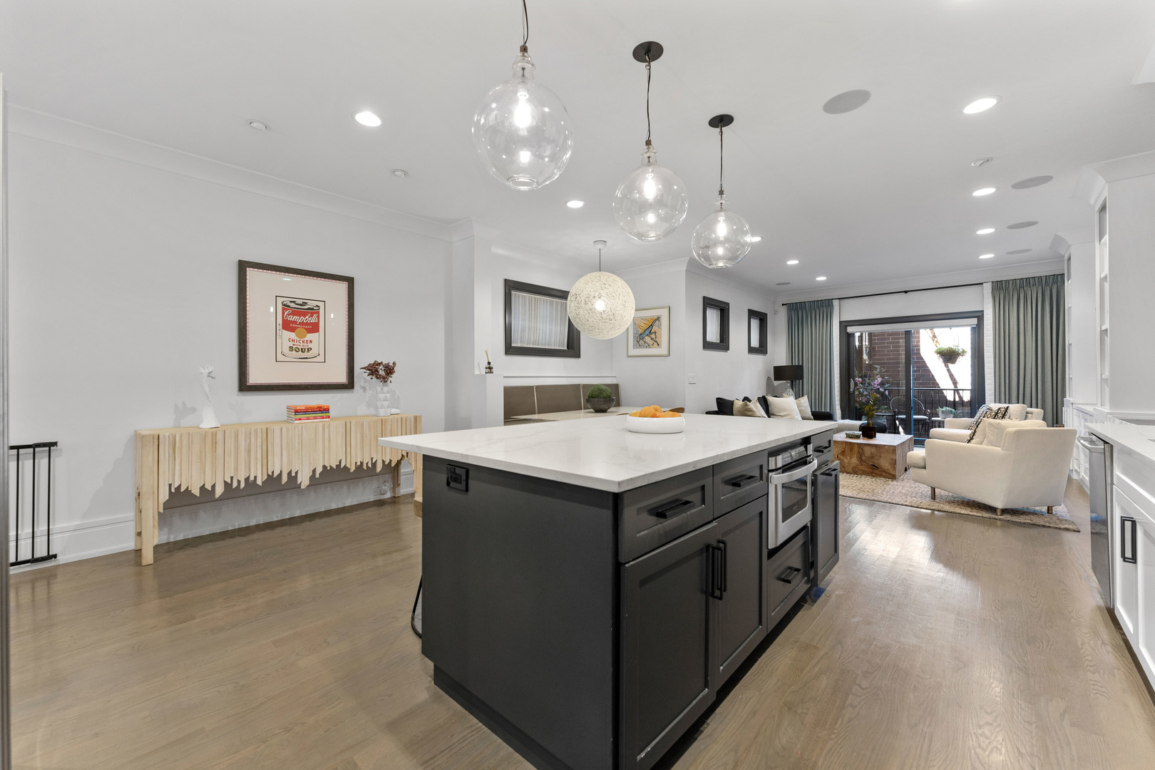 Situated in the heart of Lincoln Park, this exceptional residence is ideally located on a secluded side street with captivating views of picturesque Oz Park. Boasting 4 bedrooms and 2.5 bathrooms, this duplex home features an inviting open floorplan, abundant natural light, and private outdoor space perfect for entertaining. Meticulously finished with the finest craftsmanship and impeccable decor, every detail of this home is thoughtfully curated. The chef's kitchen is a delight, featuring top-of-the-line appliances by Sub Zero, Wolf, and Bosch, a stunning full height kitchen backsplash in Sicis handmade glass tile from Italy, and exquisite custom cabinets and quartz countertops. The lower level encompasses four generously sized bedrooms, radiant heated floors, and a spa-like master bath complete with a steam shower, split vanities, and an elegant soaking tub. Designer upgrades abound, including custom lighting, iron stair rail, Missoni stair runner, and window treatments. With a front terrace offering park views, a rear deck, and a private garage roof deck, there's ample space for relaxation and entertainment. Every detail exudes luxury and modern elegance, making Burling on The Park the epitome of sophisticated urban living.
