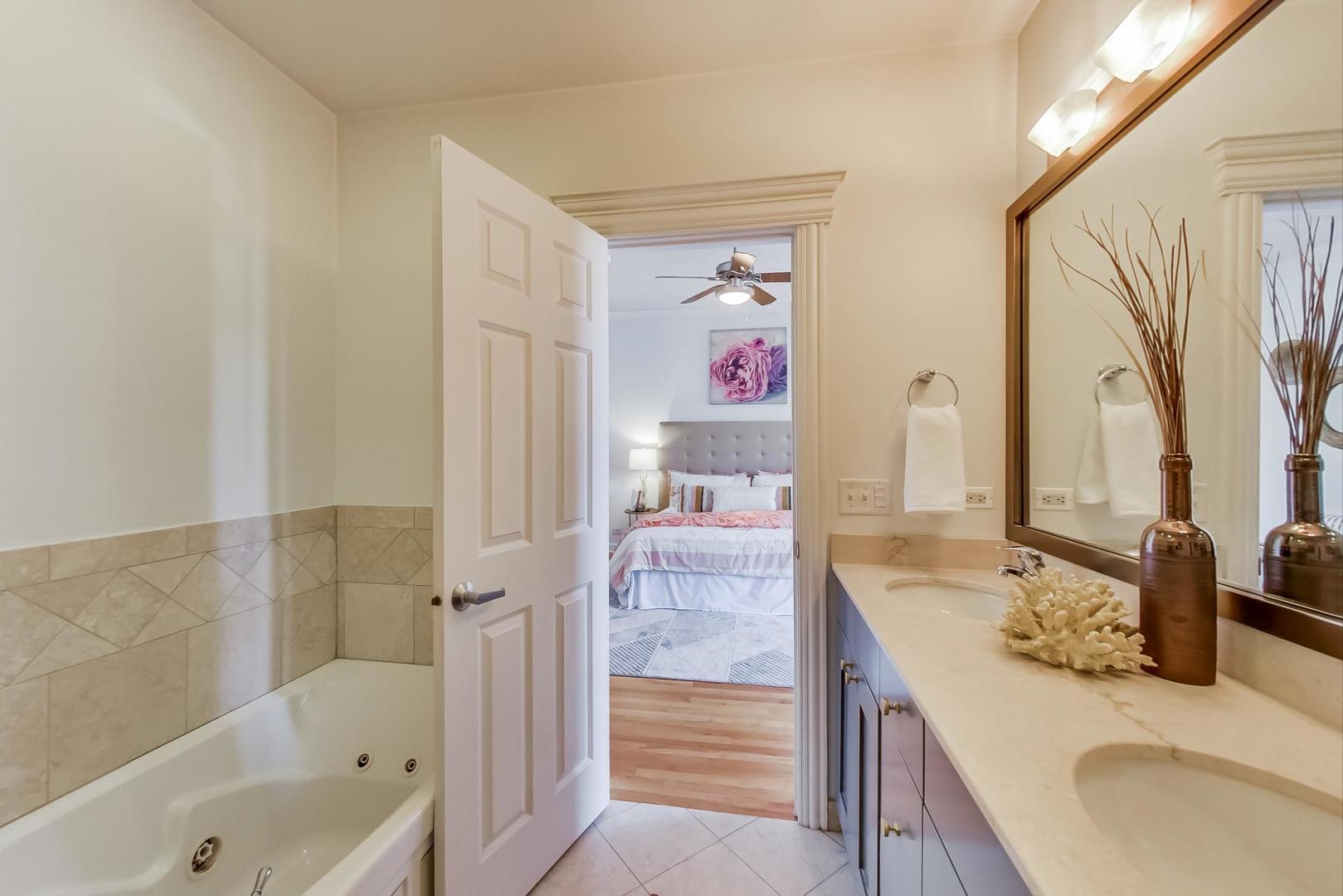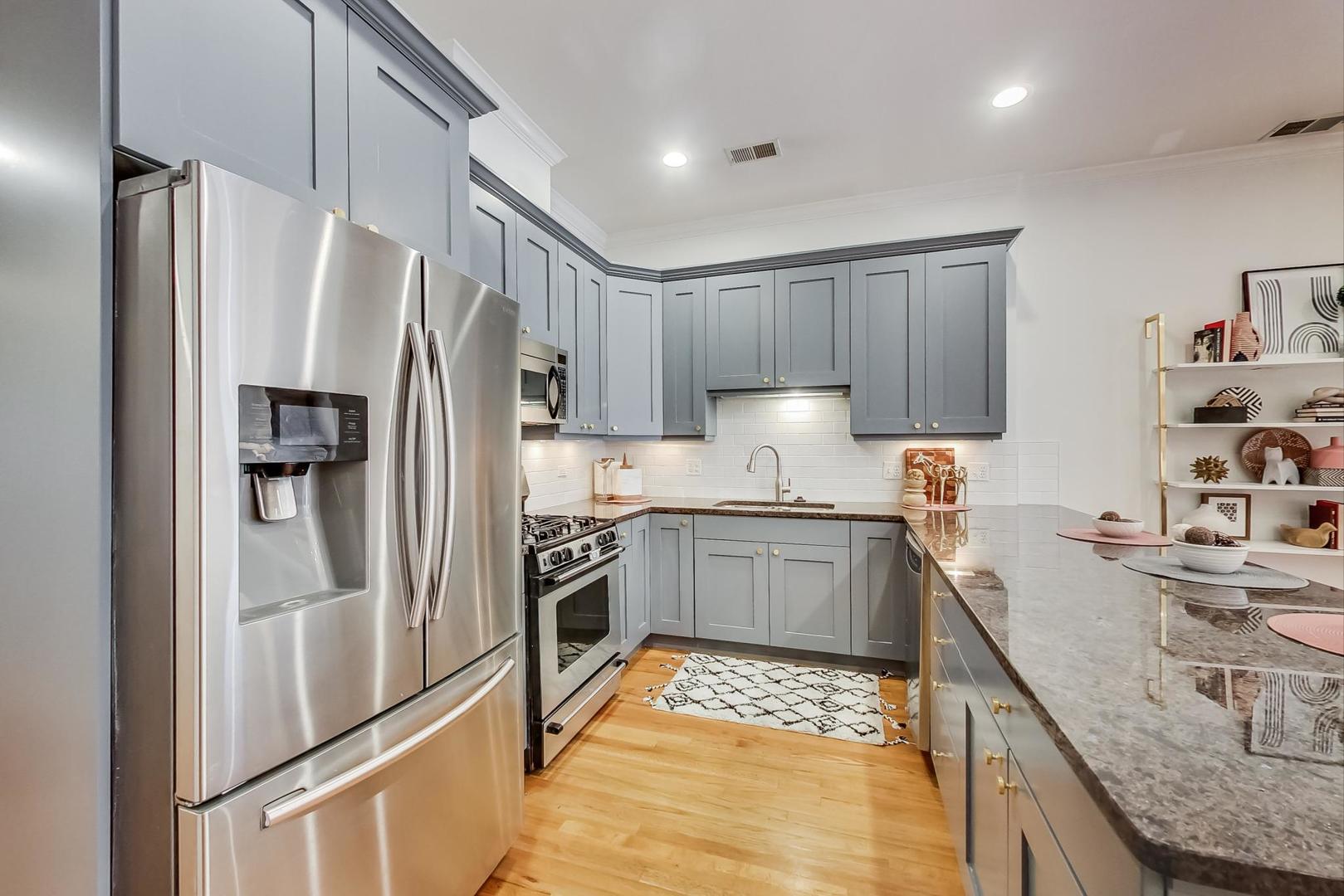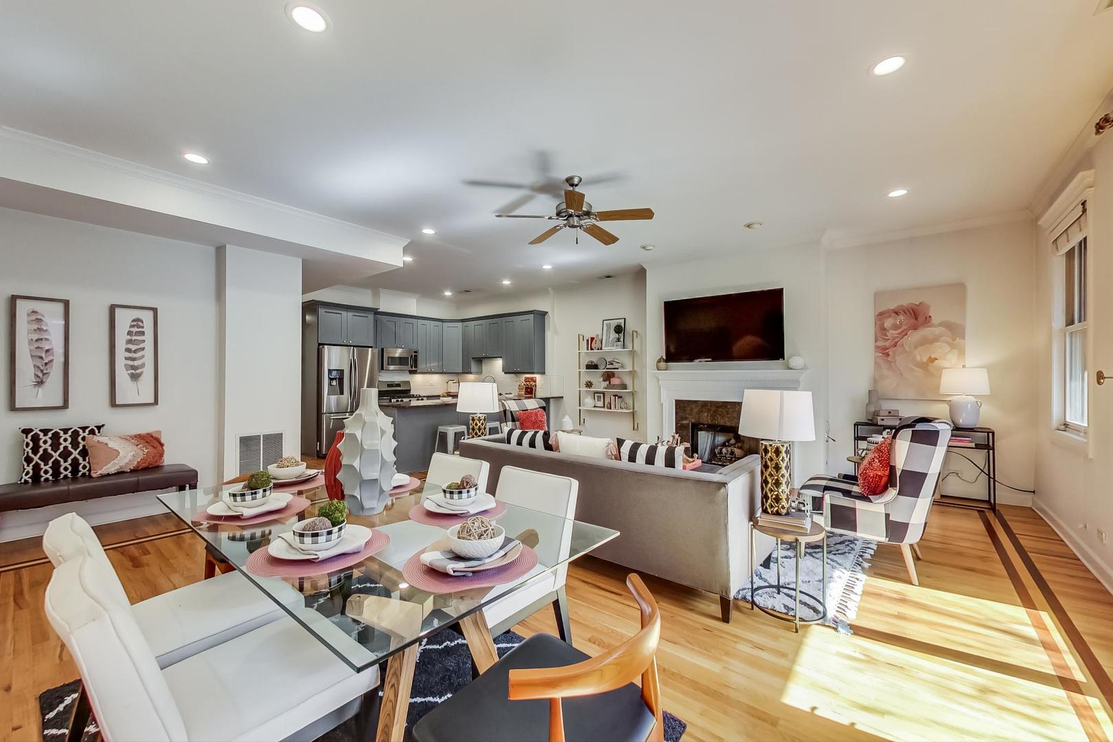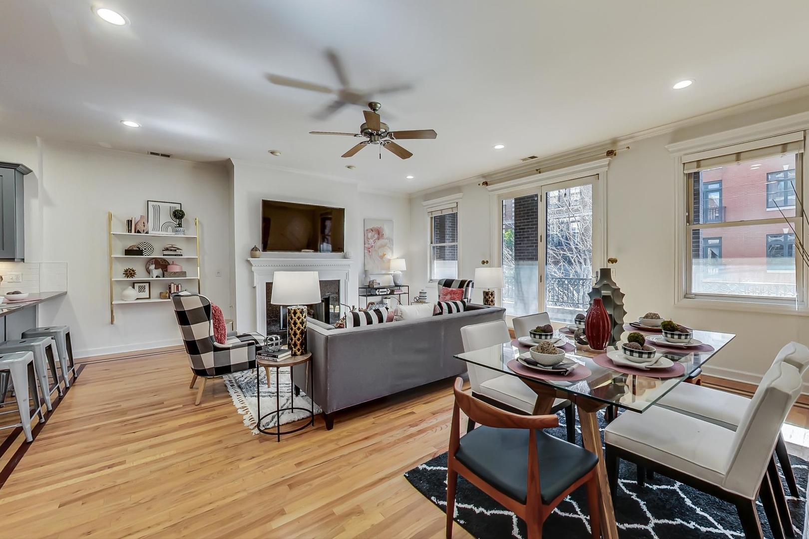 Stunning, extra-wide 3 bedroom/2 bath in the heart of Roscoe Village! Large living space flooded w/light and gorgeous hardwood floors + crown molding throughout. Flexible living & dining space with wood-burning fireplace w/gas starter. Open chef's kitchen with freshly painted cabinets, granite counters, long breakfast bar + stainless steel appliances. Spacious primary suite with WIC and luxe ensuite bathroom w/dual vanities. Gracious floor plan allows for large second and third bedrooms with ample closet storage.Two large outdoor spaces to enjoy! In-unit washer/dryer, large extra storage room and two tandem parking spots included! Great location - close to everything in Roscoe, bars/restaurants/entertainment on Belmont, steps to Hamlin Park + Felger Playlot, and short walk to the Paulina brown line stop.