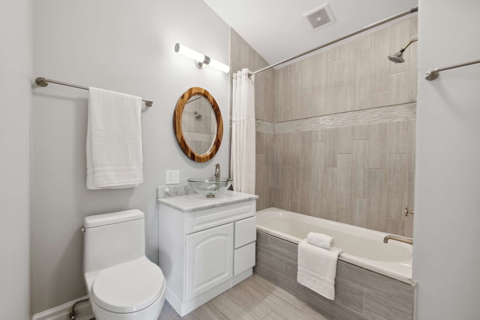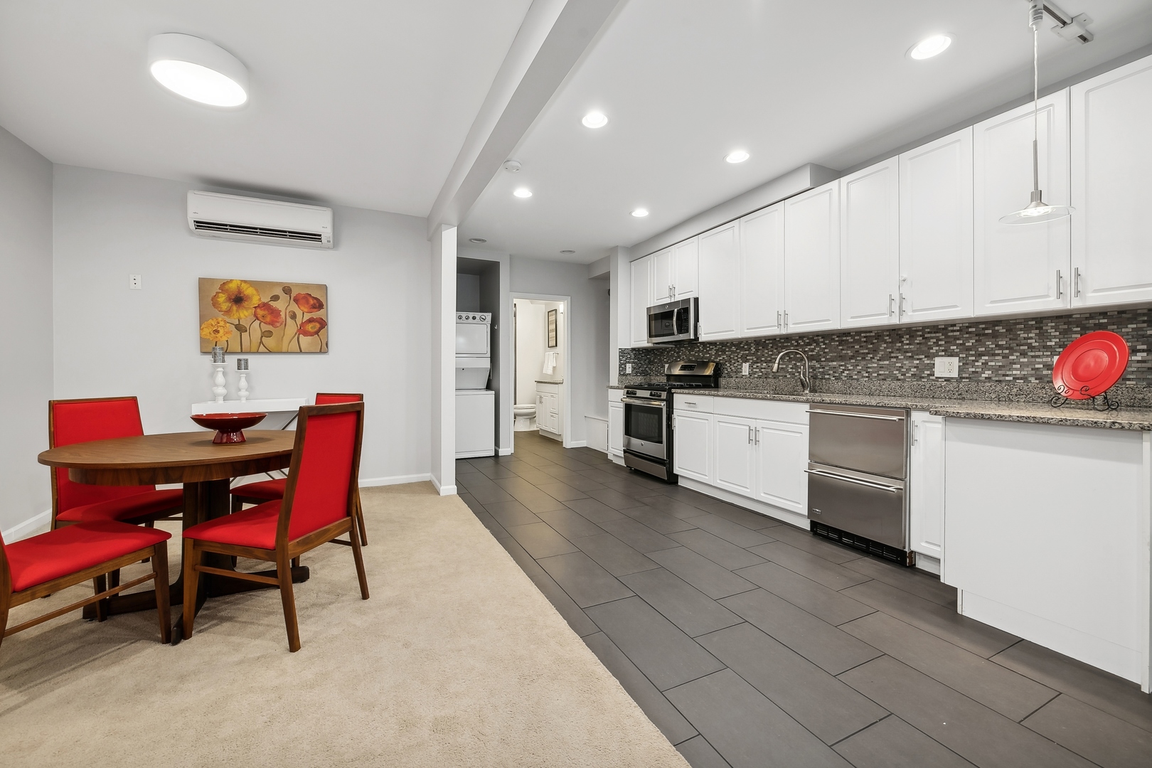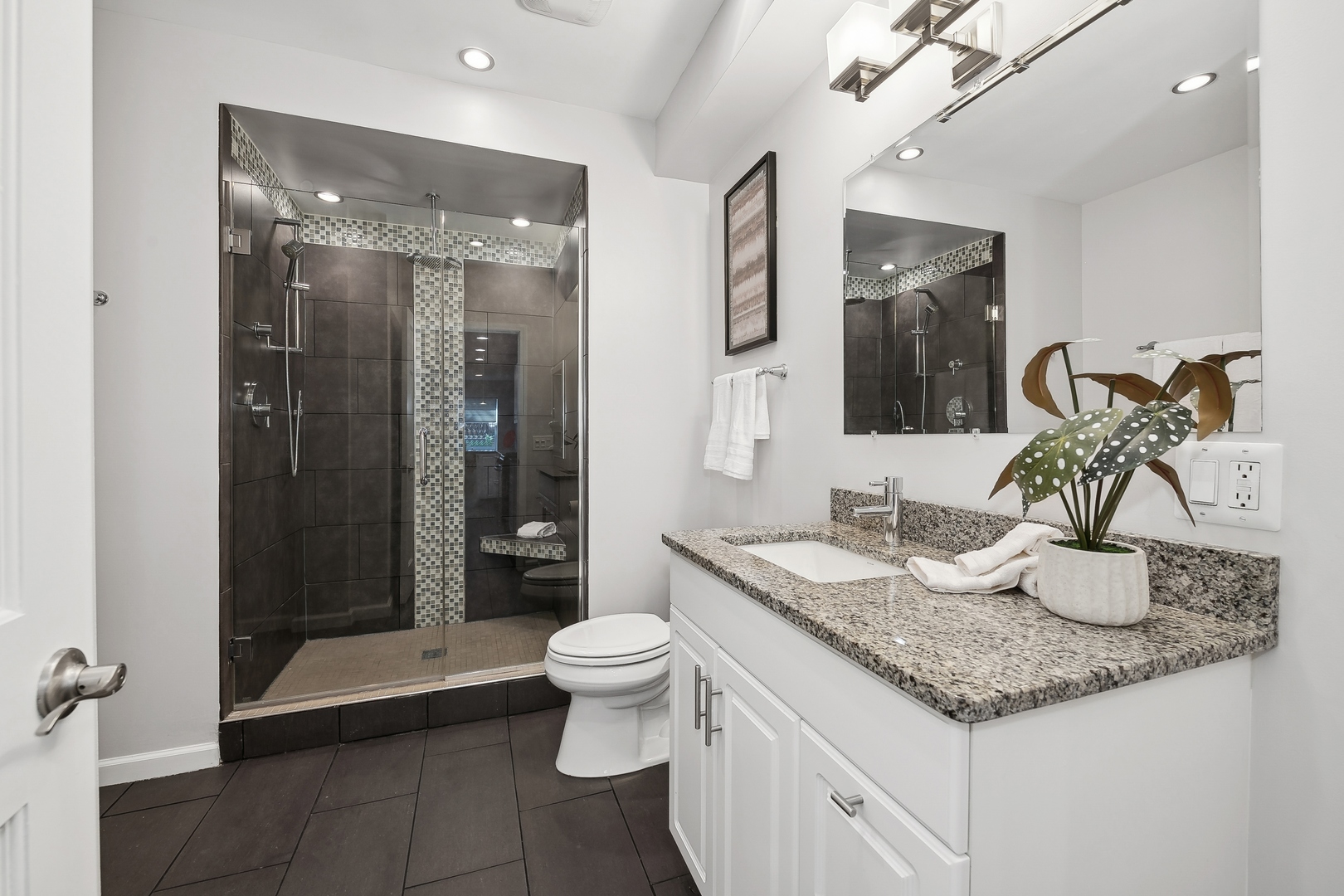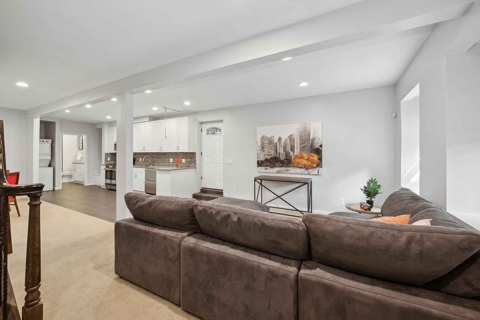 Welcome to this stunningly renovated home, perfectly situated in a premiere location of Bucktown which offers both serenity and convenience. Nestled on a quiet street, this residence provides a peaceful retreat while remaining easily accessible to nearby amenities and parks, including the free Holstein Park pool. The home has been meticulously updated featuring new engineered Hardwood Flooring (2022), Custom Cabinetry, new Paint Inside and Outside (2024) and additions to a peaceful Rooftop Deck. The spacious Family Room showcases exquisite Mahogany Custom Cabinetry, complemented by a gas ventless Fireplace. The Kitchen is a chef's dream, fully remodeled with Mahogany Custom Cabinetry, a double waterfall edge Quartz island, Jenn-Air Appliances with a Bespoke Refrigerator. Enjoy the convenience of a Walk-In Pantry and Mud Room drop zone. The home's layout is both functional and luxurious and the lower level is the perfect In-Law Suite. Included is a large 1-Bedroom space with a Full Kitchen, Full Bath, dedicated Washer and Dryer, large Family Room area and Dining Area. The newly created expansive Laundry Room located on the 2nd floor, accessible from the Master Closet or the Hallway features steel frame pocket doors and Custom Cabinetry, ensuring a practical and stylish space. The Primary Suite is a true sanctuary, boasting a 10x12 Custom Closet with Walnut built-ins and an additional Walnut closet with shoe shelving. The fully renovated Master Bath (2022) is a luxurious retreat with a custom 4x6 Marble Shower, Marble finishes throughout, LED anti-fog mirror, and custom Wenge wood floating vanity. Additional updates include Tankless Water Heater (2022), Tuckpointing (2023), painted Metal Railings and Stairs (2024), Cedar Pergola (2022), Ipe Deck and Landing (2021) and a landscaped Parkway with fencing (2021), ensuring both curb appeal and privacy. This home is ideally situated on a quiet, non-thoroughfare street, offering a serene living environment while remaining close to the local parks and community amenities.