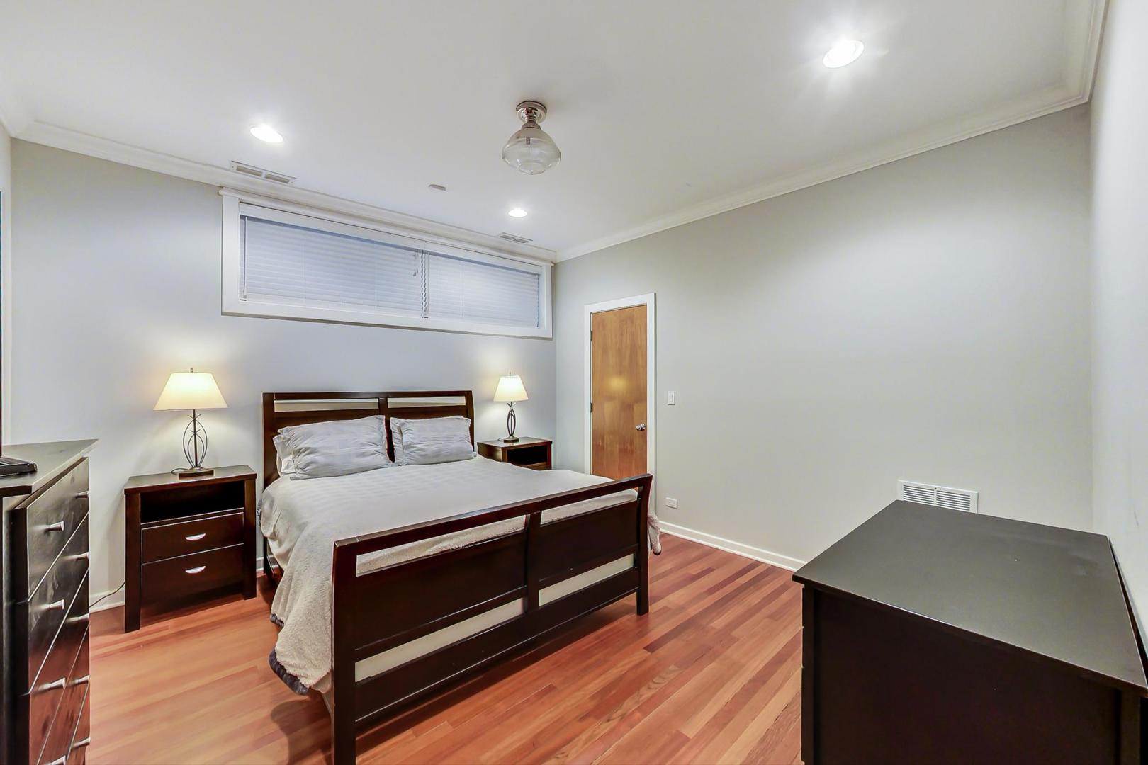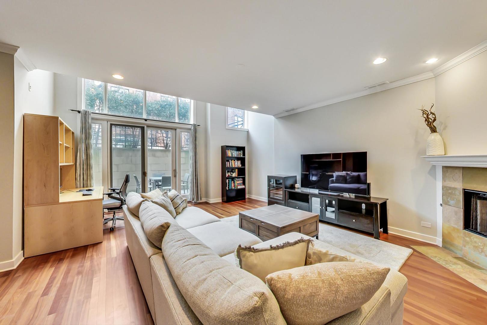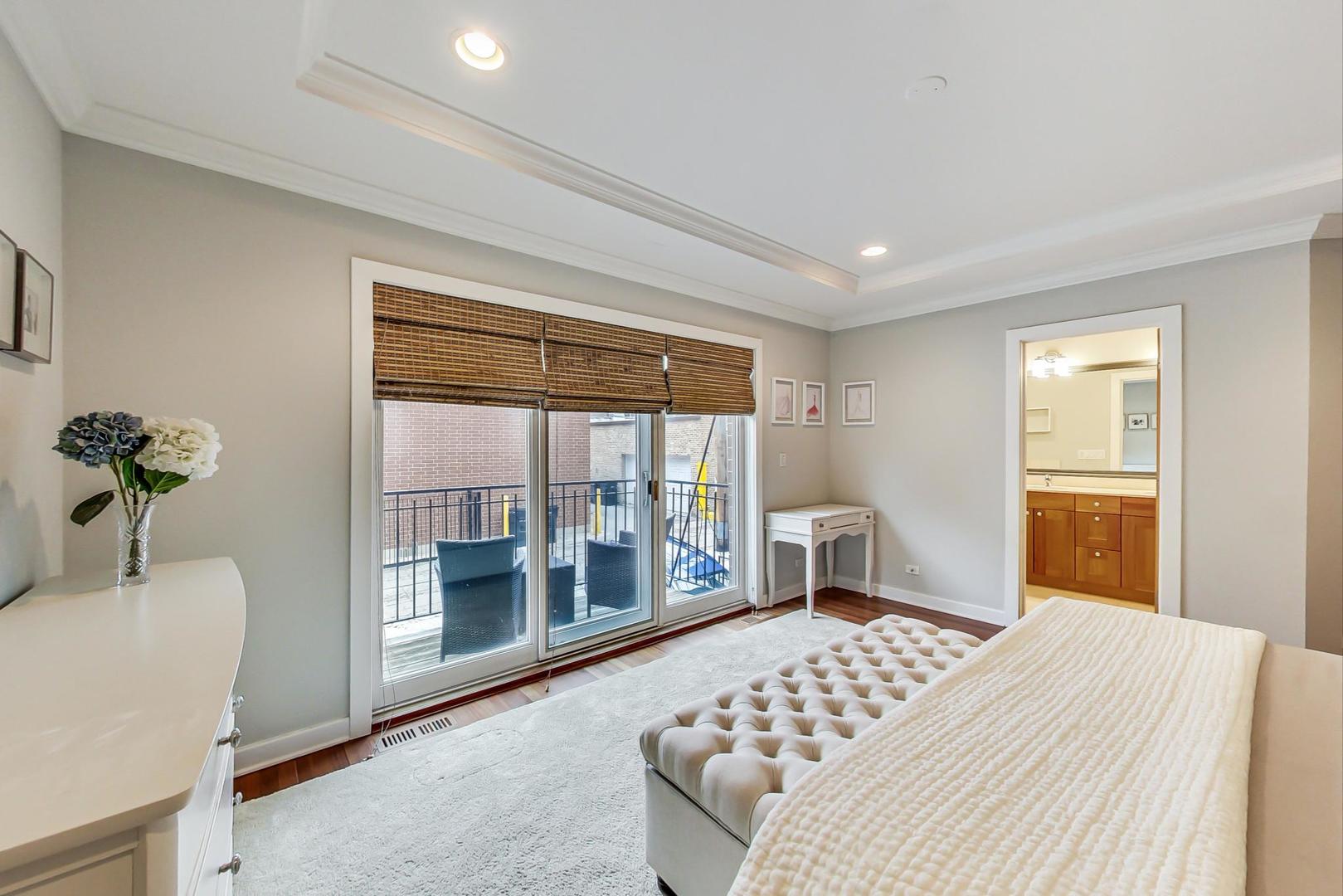 Fabulous EXTRA WIDE 3bed/3bath duplex down on coveted Wabansia Ave in the heart of Bucktown. This home boasts 22' wide interior, all brick masonry construction & ATTACHED garage parking right at your back door. With almost 2,700sqft, this home truly lives like a single family w/ two full levels of living, hardwood floors throughout, 2 fireplaces, crown moulding, and a dramatic two story wall of windows w/ motorized shades overlooking Wabansia. The unusually wide main level greets you with large windows and an expansive living/dining/kitchen space. Professional grade kitchen complete with 42'' cabinets, oversized granite island w/ ample seating, Wolf oven, & all high-end stainless steel appliances + wine fridge. Large main level primary suite complete with south facing balcony, tray ceiling, custom closet by Closet Works and a beautiful all stone primary bath with double sinks, whirlpool tub, and separate steam shower with body sprays. Second bedroom/office w/ organized closet & 2nd full bath also located on the main level. Fabulous lower level with dramatic ceiling height, huge family room w/ woodburning fireplace, & gracious walk-out patio. On the lower level you'll also find a 3rd well appointed bedroom, full bath, laundry room with side-by-side W/D & attached garage parking w/ heated driveway. FANTASTIC Bucktown location with the 606, blue line, and all the bars & restaurants at your fingertips.