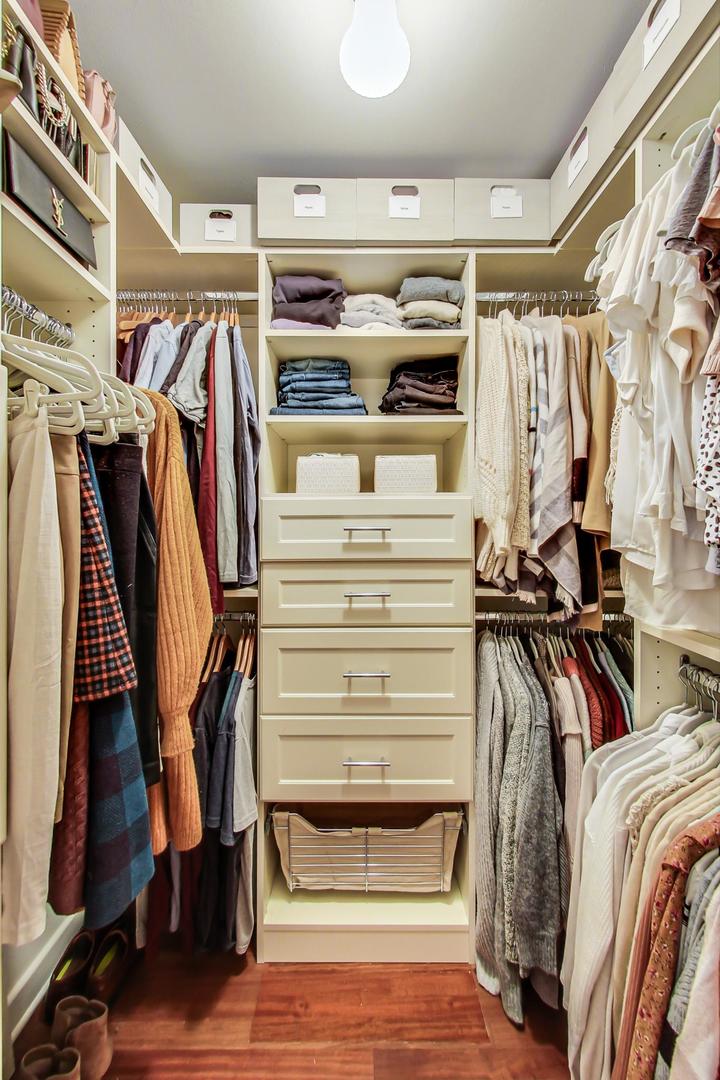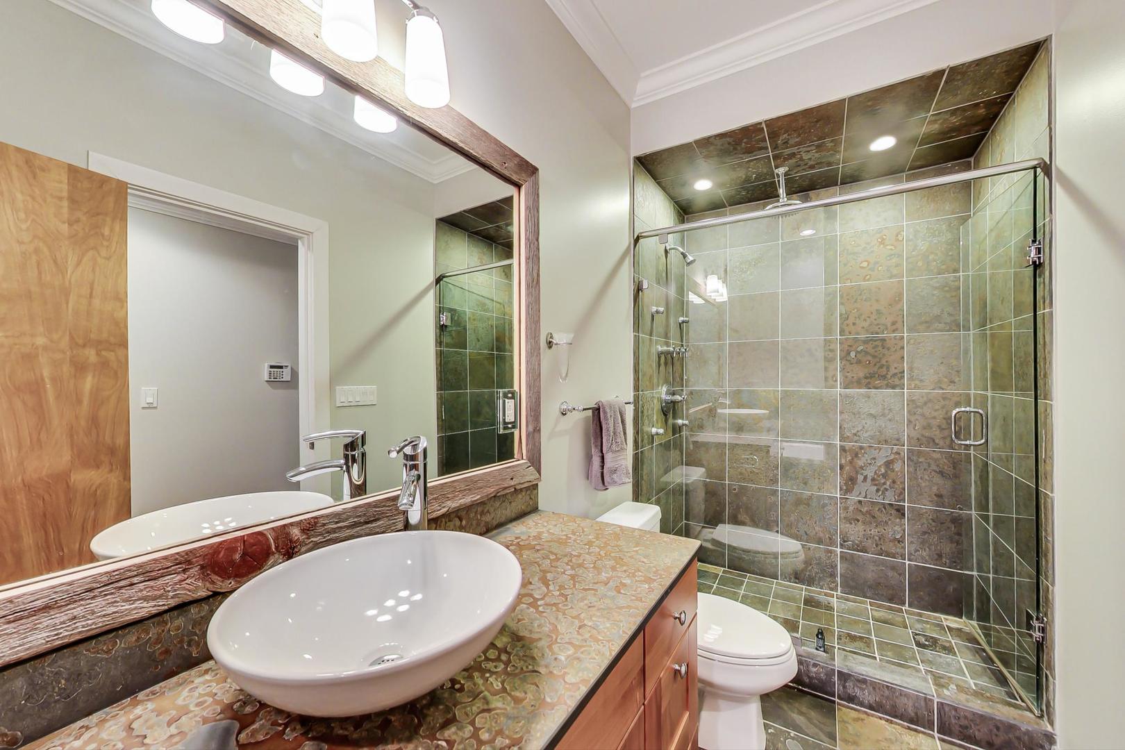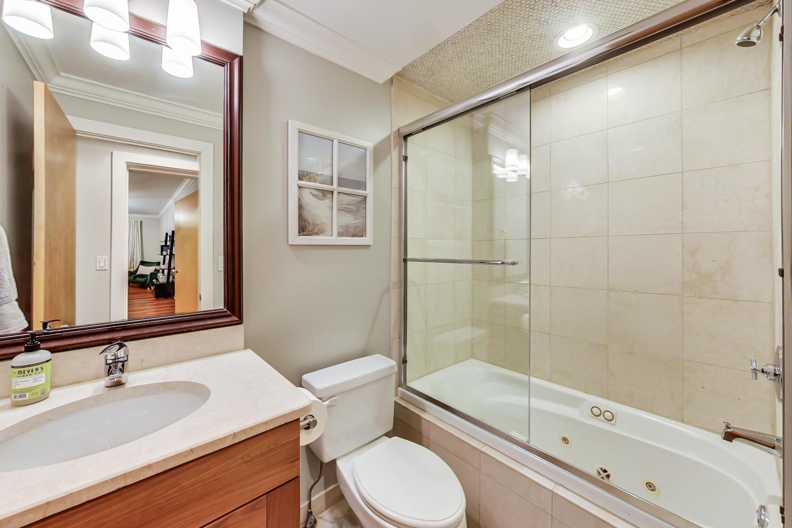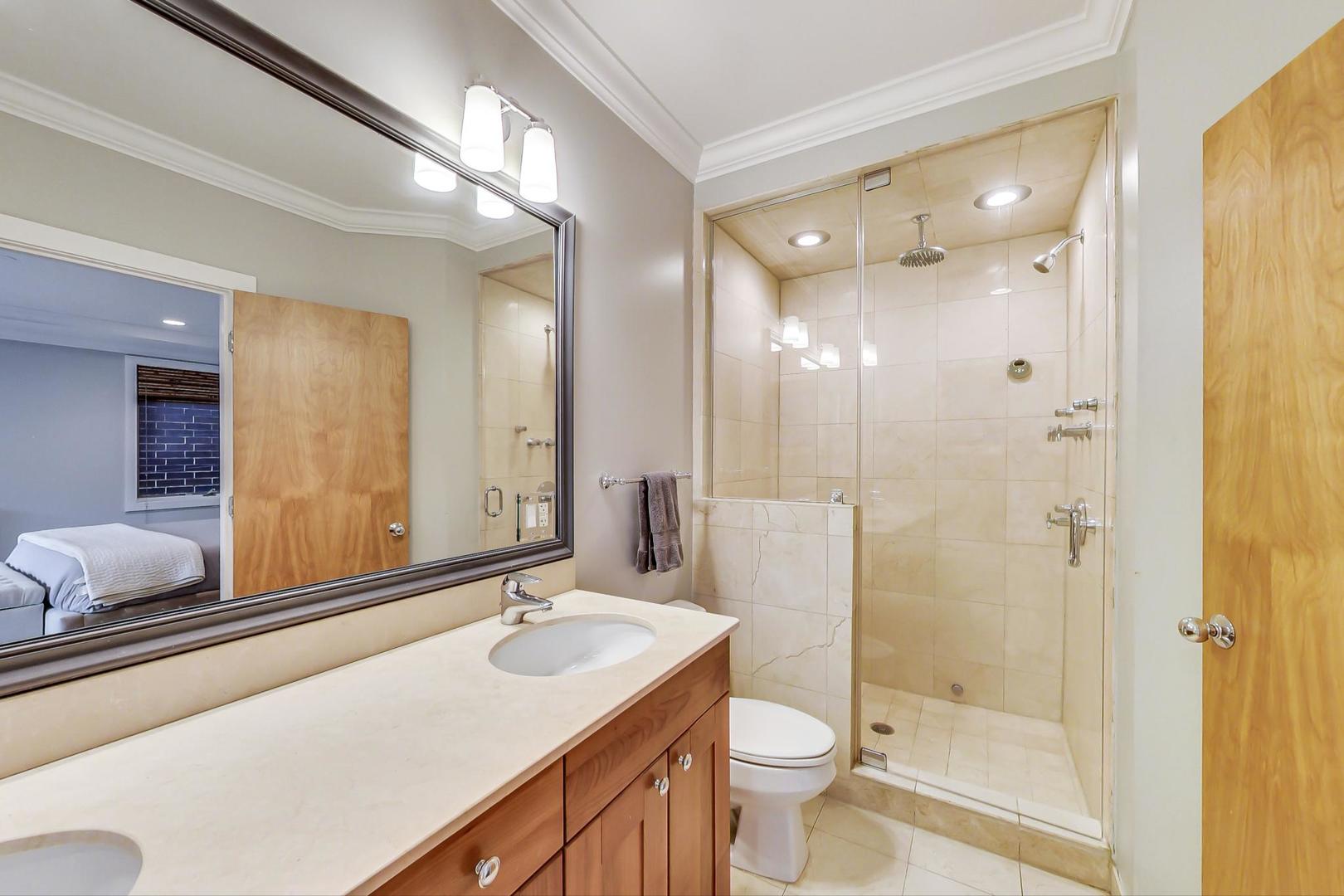 Fabulous EXTRA WIDE 3bed/3bath duplex down on coveted Wabansia Ave in the heart of Bucktown. This home boasts 22' wide interior, all brick masonry construction & ATTACHED garage parking right at your back door. With almost 2,700sqft, this home truly lives like a single family w/ two full levels of living, hardwood floors throughout, 2 fireplaces, crown moulding, and a dramatic two story wall of windows w/ motorized shades overlooking Wabansia. The unusually wide main level greets you with large windows and an expansive living/dining/kitchen space. Professional grade kitchen complete with 42'' cabinets, oversized granite island w/ ample seating, Wolf oven, & all high-end stainless steel appliances + wine fridge. Large main level primary suite complete with south facing balcony, tray ceiling, custom closet by Closet Works and a beautiful all stone primary bath with double sinks, whirlpool tub, and separate steam shower with body sprays. Second bedroom/office w/ organized closet & 2nd full bath also located on the main level. Fabulous lower level with dramatic ceiling height, huge family room w/ woodburning fireplace, & gracious walk-out patio. On the lower level you'll also find a 3rd well appointed bedroom, full bath, laundry room with side-by-side W/D & attached garage parking w/ heated driveway. FANTASTIC Bucktown location with the 606, blue line, and all the bars & restaurants at your fingertips.