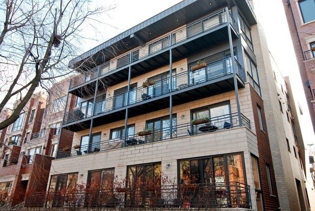 Huge 1800 square foot extra wide duplex-up in great Bucktown location. Spectacular layout with floor to ceiling windows. Newly refinished hardwood floors throughout unit. Open kitchen with Viking appliances, cherry cabinets & granite counters. Huge private roof deck with city views AND two additional balconies. Spacious master bedroom with walk-in closet. Beautiful master bath includes oversized shower with body sprays, separate whirlpool tub and two sinks. 1 outdoor radiant heated parking space included.