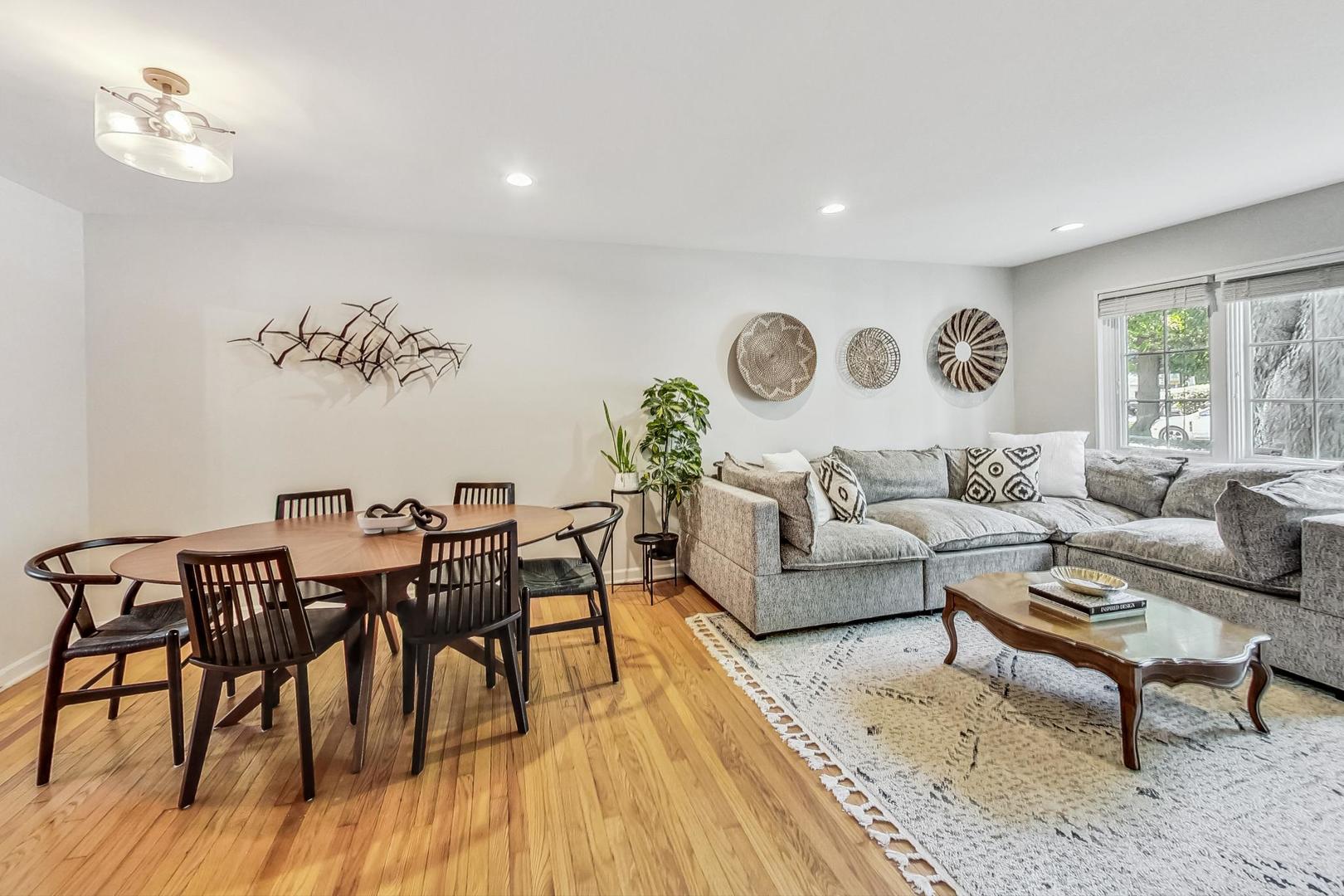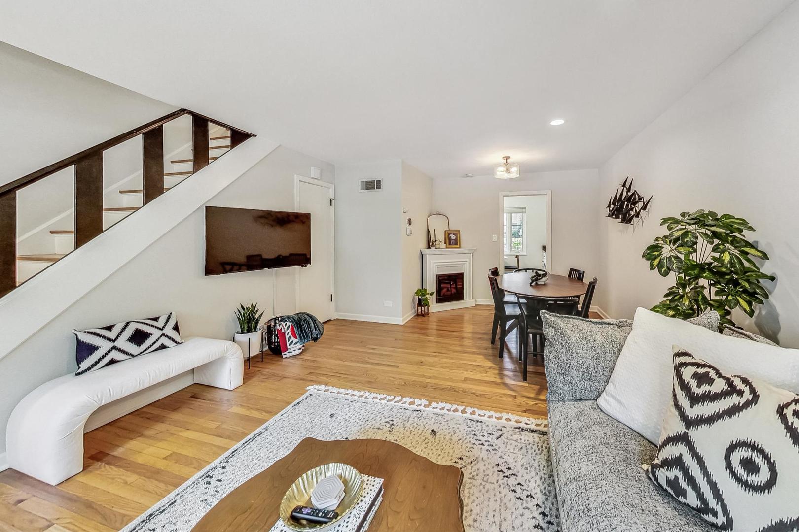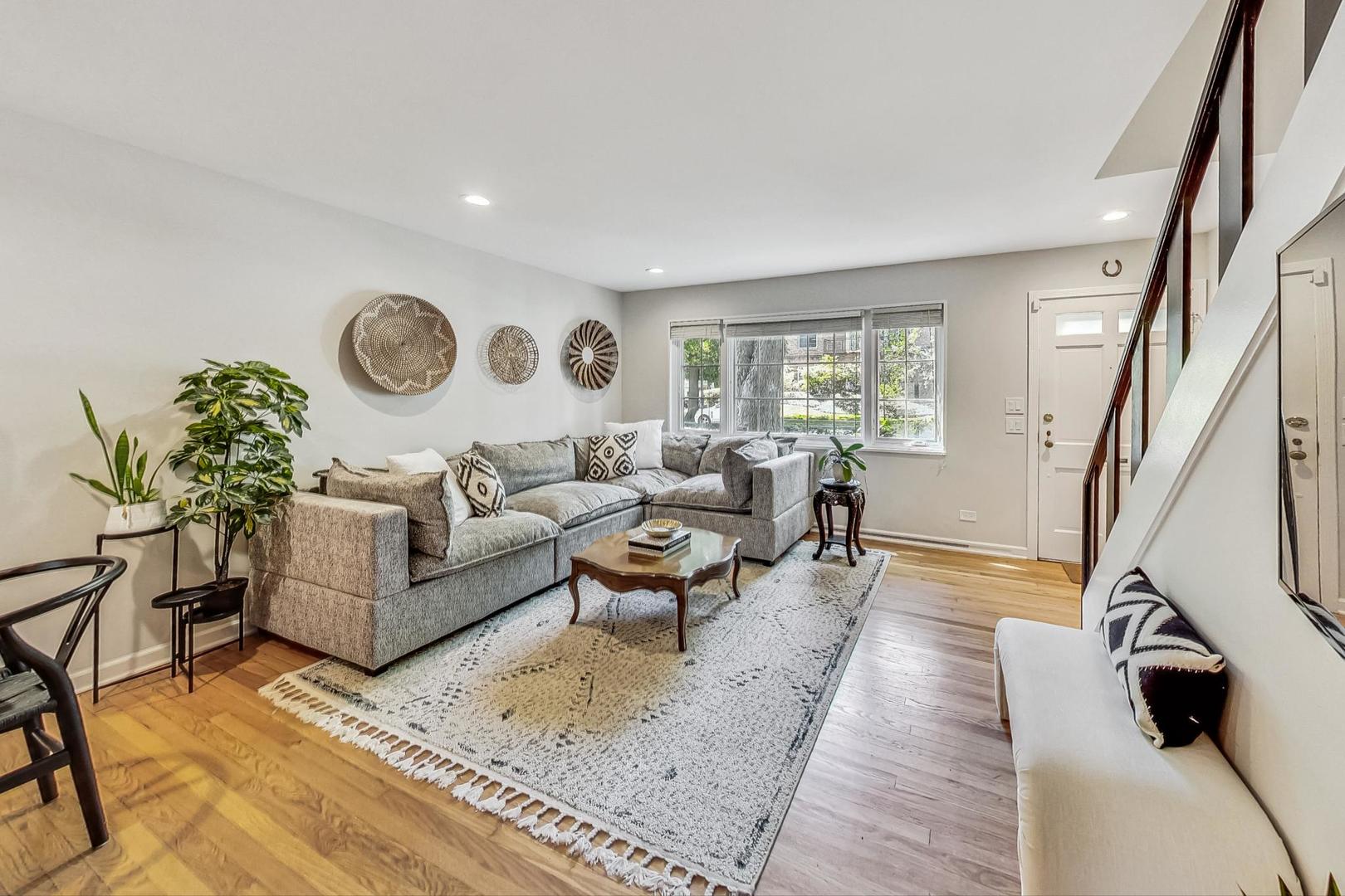 Discover this chic and spacious two-bedroom townhome with a versatile den/loft in an unbeatable location. Enjoy the comfort of multi-level living in this charming home, featuring a light-filled, generously sized living and dining area on the main floor, complemented by an updated eat-in kitchen with white cabinets, granite countertops, subway tile backsplash, and stainless steel appliances. The second floor offers two large bedrooms and a brand new full bathroom. Ascend another flight of stairs to find a bonus den/loft - perfect for an extra family room, workout room or great storage. The home boasts hardwood floors throughout, a new in-unit washer/dryer, an adorable backyard, and off-street parking. Recent upgrades include a brand new whole-home water filtration system, updated air conditioner, furnace, and water heater, all new electrical wiring, and newer Marvin windows. Conveniently located just two blocks from the El and four blocks from the Central St. Metra station, this townhome is within walking distance of Lake Michigan, Lighthouse Beach, Northwestern University, Ryan Field, Canal Shores Golf Course, Leahy Park, and all that N.E. Evanston has to offer. Enjoy shopping and dining on Central St. and Noyes St., including popular spots like Bluestone, Ten Mile House, and Hewn Bakery. HOA $200/month.