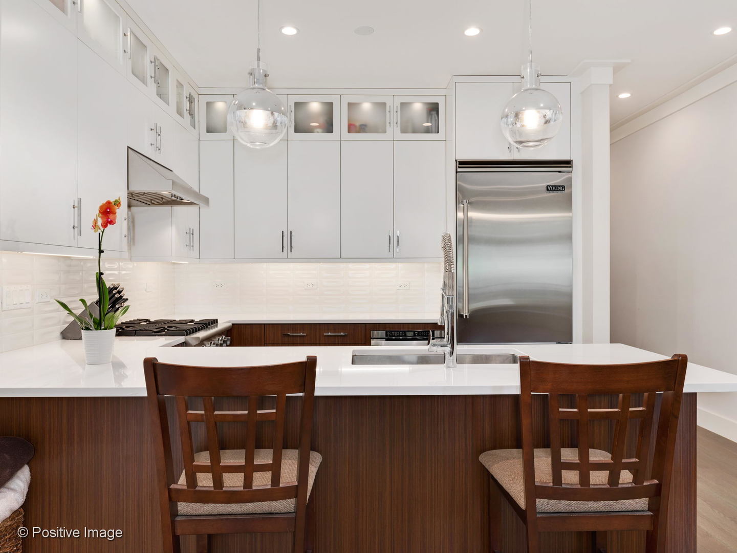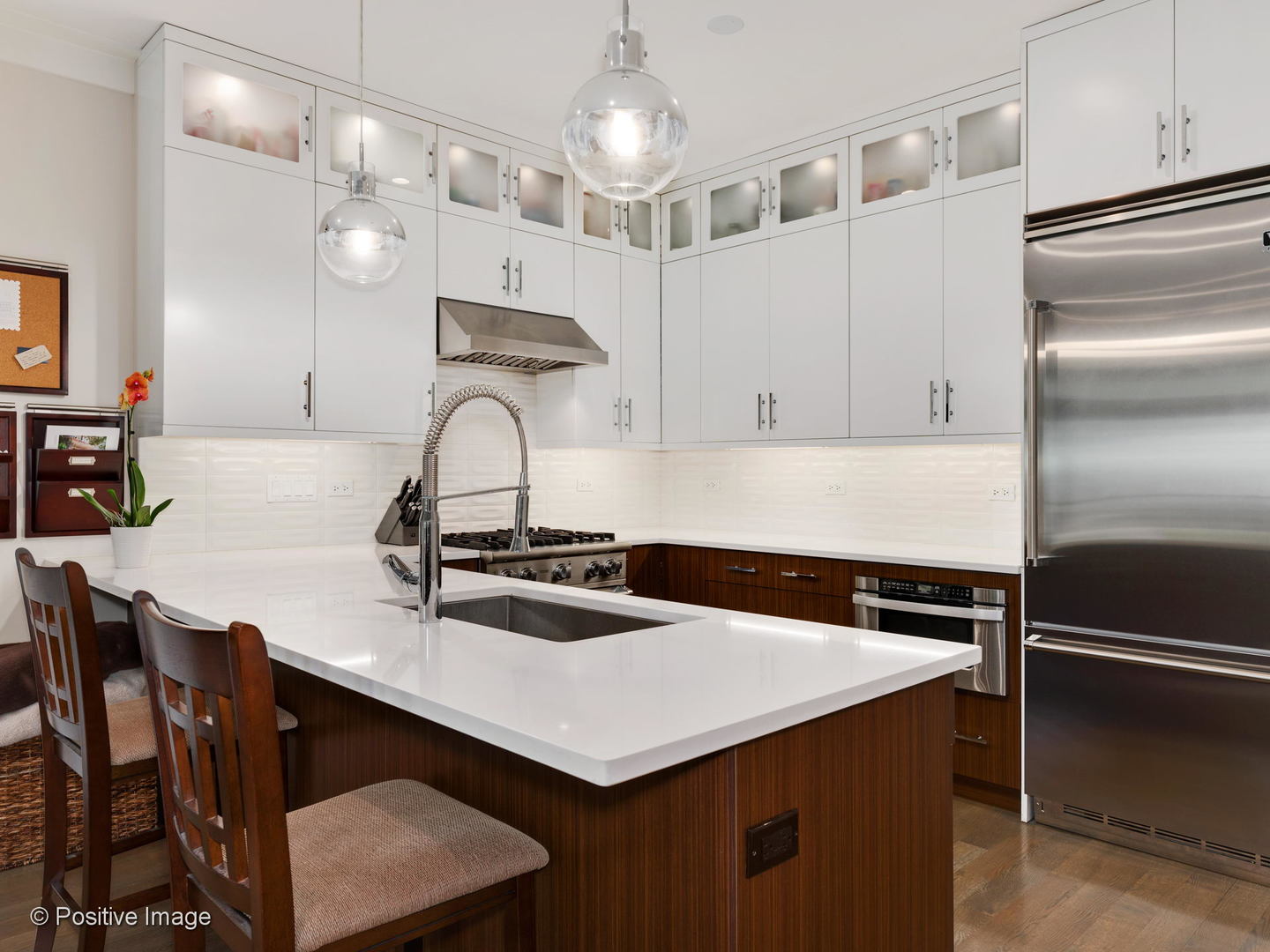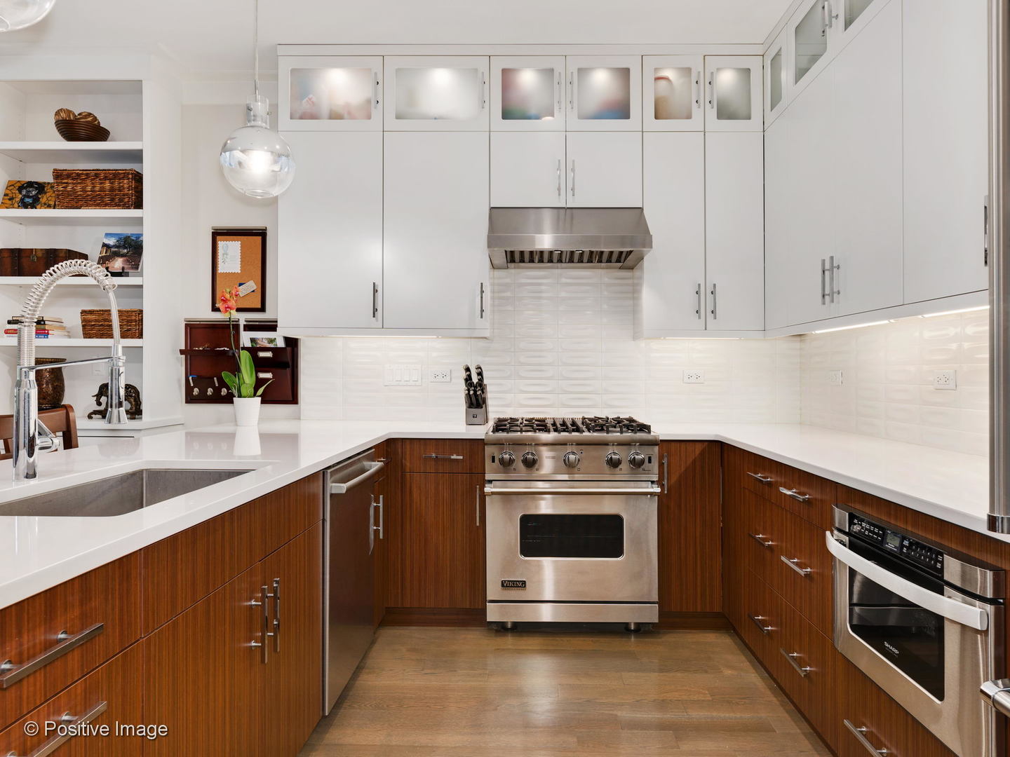 Stunning, first resale of this like-new 2bed/2bath with extra wide layout & expansive front balcony overlooking beautiful tree-lined Bosworth Ave. State of the art kitchen with Viking/Bosch appliances & custom 42'' cabinetry. Open living space with gas fireplace surrounded by custom built-ins. Designated dining area opens onto living room & kitchen. Great size second bedroom w/ professionally organized closet. Lux primary suite includes en-suite bath w/ steam shower & heated floors. Sellers went above & beyond to add custom closets & storage throughout including 2 coat closets, 2 master closets & side by side W/D in custom-built laundry center. Hardwood floors throughout. Bowers & Wilkins speaker system throughout. All masonry & limestone construction - not your cookie cutter home. Garage parking included.