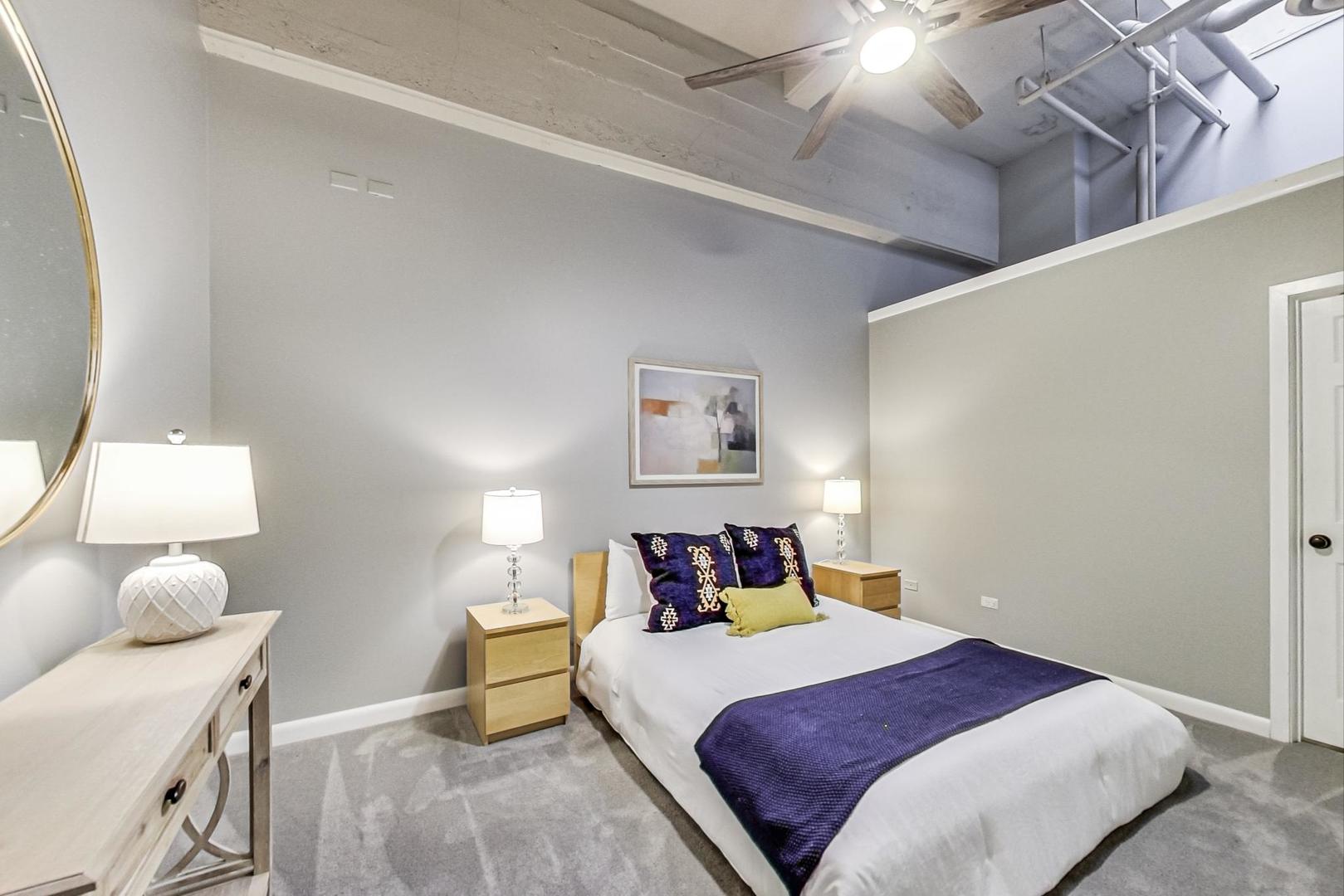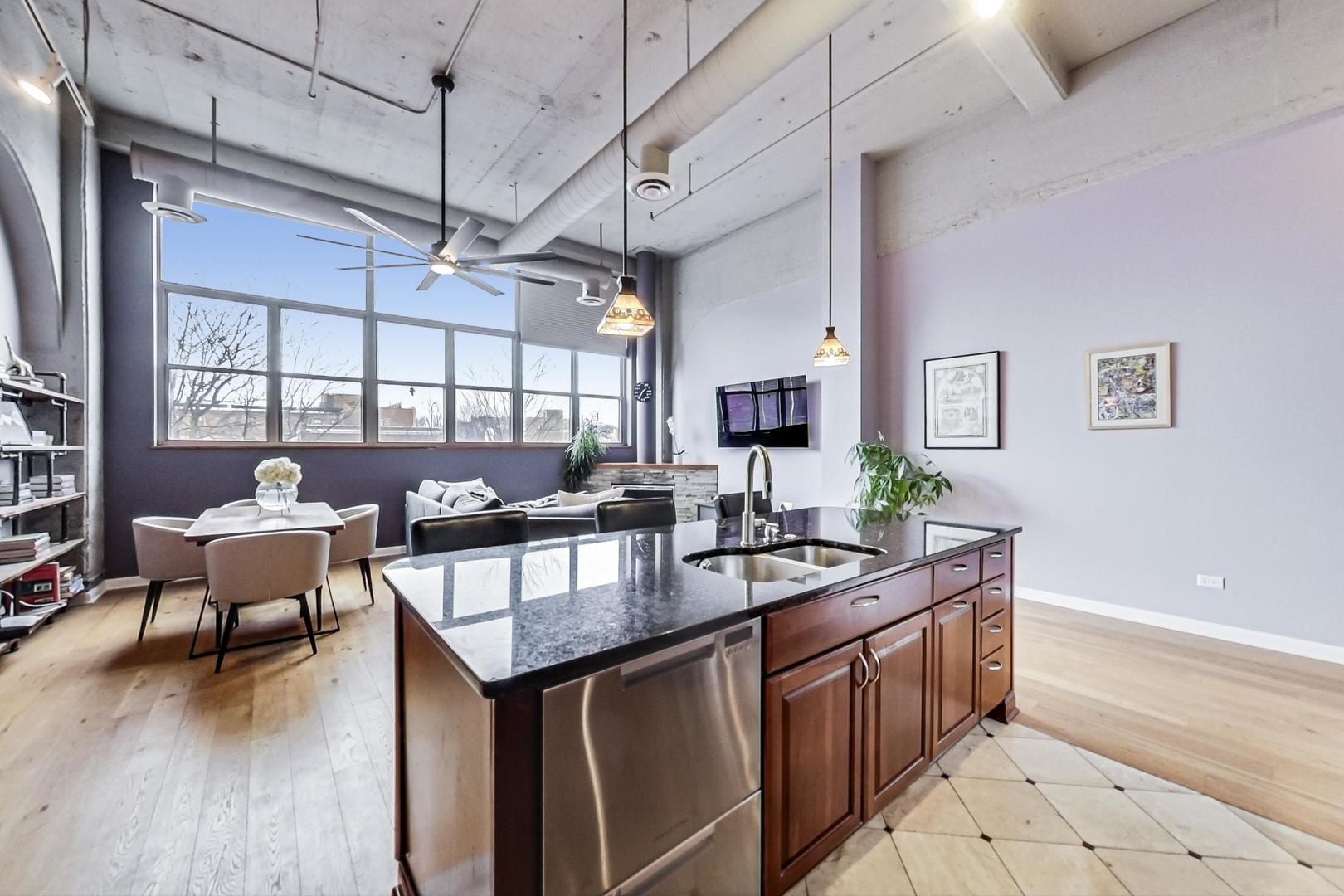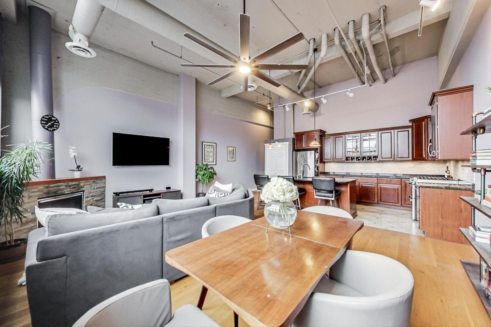 MULTIPLE OFFERS RECEIVED. HIGHEST & BEST DUE BY NOON MONDAY 2/12. Introducing a rare Lincoln Park gem - a captivating Duplex-Up loft offering 2 beds, 2baths, soaring 14+ft ceilings, a private rooftop deck and heated garage parking. The living and dining room, adorned with a gas fireplace and wall of west-facing windows, offer breathtaking views and natural light. Embrace the outdoors on your own rooftop deck with plenty of room for outdoor living & dining space. The enormous eat-in kitchen is a chef's dream, featuring granite countertops, 42'' cabinets, and heated travertine floors. Ideal split-bedroom layout with large 2nd bedroom located on 1st floor w/ updated full bath.The second-floor primary suite comes complete with a wall of closets and stunning newly renovated bath. Heated attached garage parking, in-unit W/D, and storage cage included. Incredibly cool and unique space both inside and out. Fantastic location - just one block from the Southport corridor and a short walk or bus ride to the El, this Lincoln Park loft offers the perfect blend of elegance and urban convenience. Don't miss!
