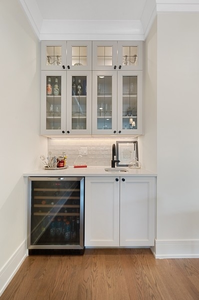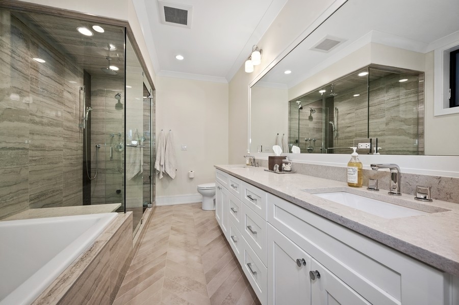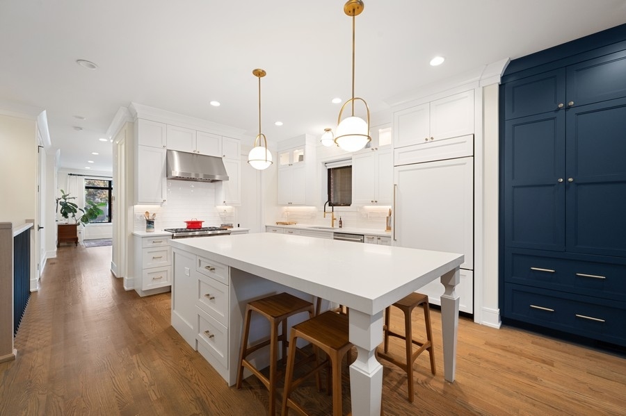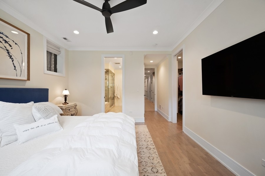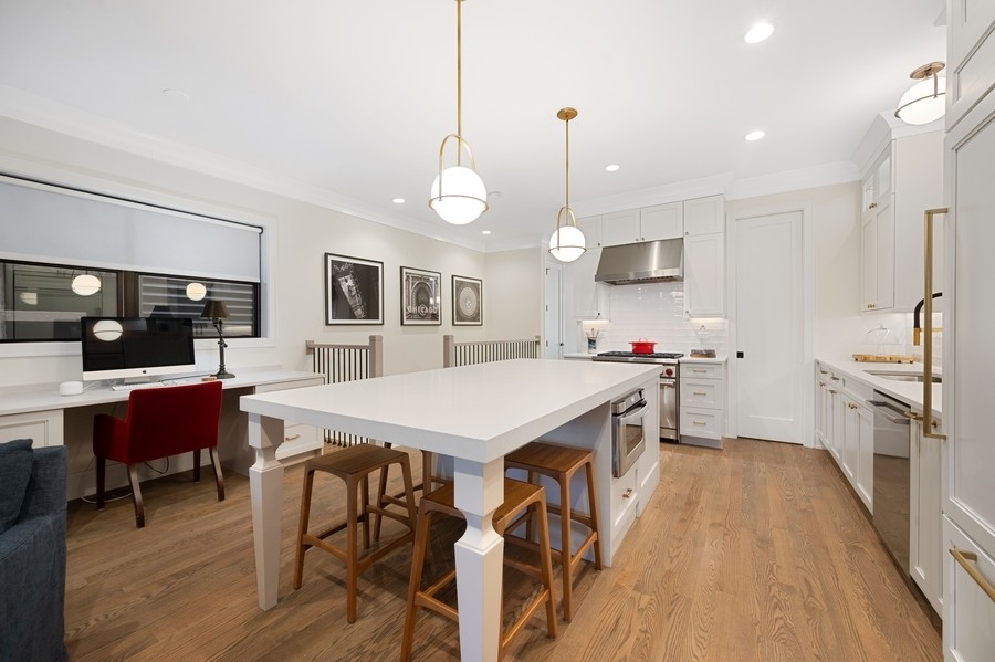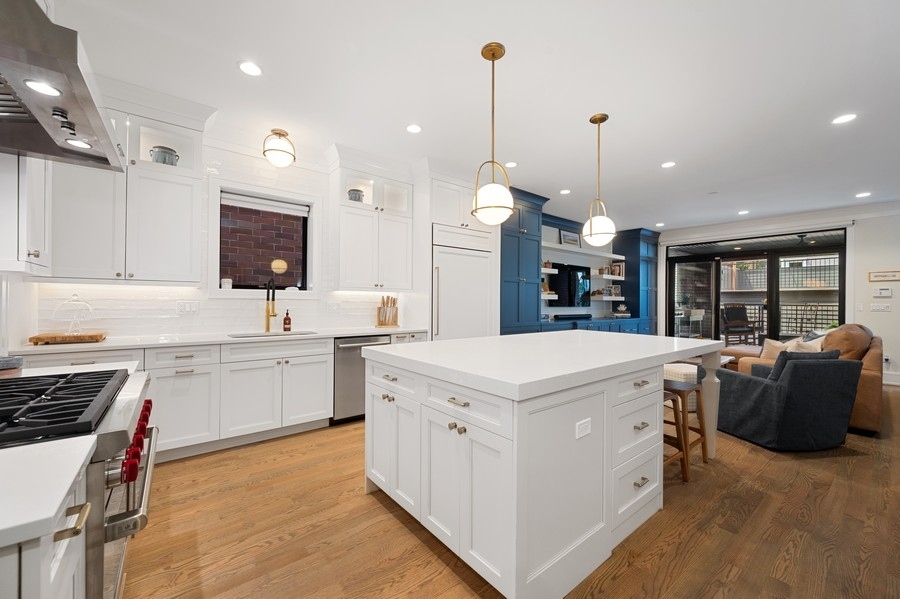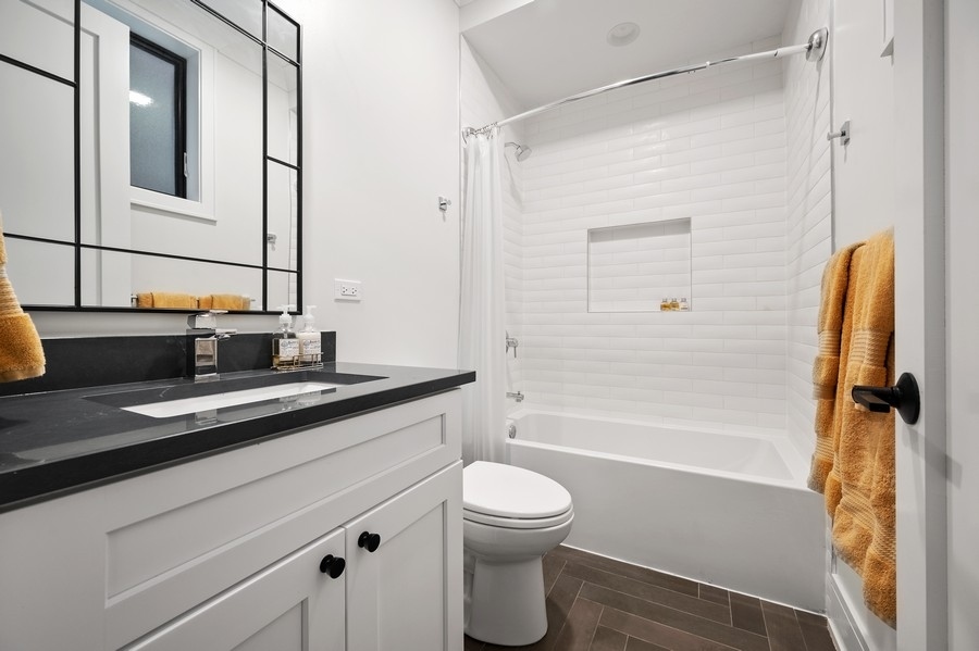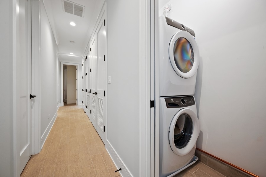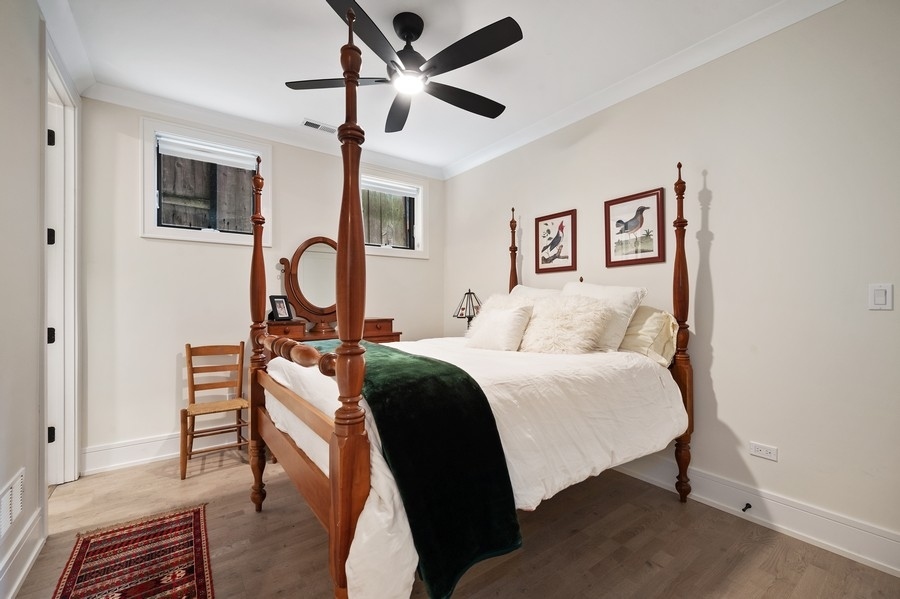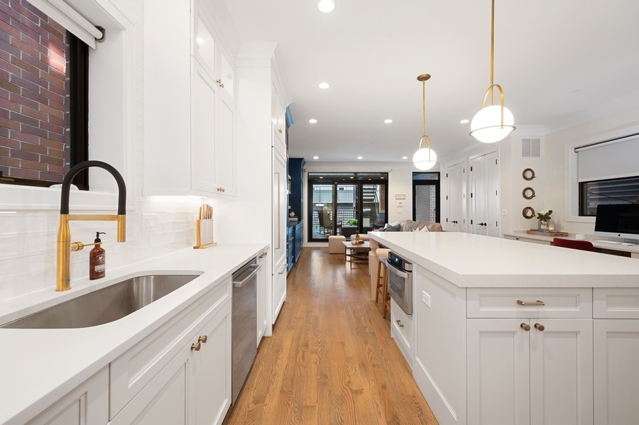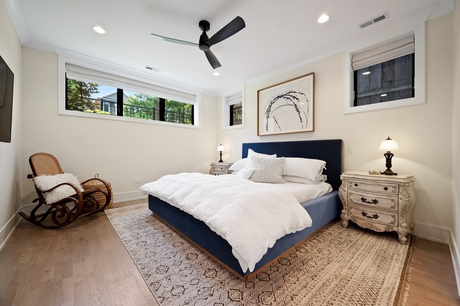 New Construction Duplex Down meets designer with an eye for sophistication & function and you get upgraded 1st class finishes with custom build outs! This upscale 4 bedroom/3.1 bath is solid brick & limestone construction measuring about 2700 sq. ft. with a whopping additional 1158 sq. ft. of exclusive outdoor space! Sunshine greets you as you enter into the sunny living room with an oversized picture window and a cozy gas burning fireplace adorned with a custom matte black mantle. Then head to the dining room & grab a drink at the wet bar with quartz counters, a built-in wine fridge & custom glass panels with hand laid mullions! You will be blown away entering in this kitchen! From the oversized quartz counters, to the top of line appliances including a 6 burner Wolf range & sub zero fridge, to the upgraded bronze lighting & hardware fixtures, to the walk-in pantry, its everything you dream of... but wait there's more!! A built-in coffee bar .. and a built-in desk with matching quartz counters and cabinets - ideal for the work from home environment. The custom built-in entertainment center anchors the zen living room... and brings the outdoors in! Floor to ceiling windows and doors seamlessly flow the family room to the 2 outdoor decks outfitted with porcelain tile floating floors. Cozy up to the hard piped gas firepit on the first patio or extend your outdoor life to the private garage rooftop deck - yes 2 private outdoor spaces!! Ideal floorplan with all 4 bedrooms on the lower level plus 2 en-suite bathrooms and HEATED floors!! King sized primary suite with all of the bells & whistles. The bathroom is appointed with herringbone porcelain tiles, double quartz vanity, double sized steam shower with a stone bench and an air jet soaker tub. Need closet space... no problem... 23 ft long walk-in closet ALL customized! The 3 other bedrooms are all great size with an en-suite bath in the 4th bedroom -perfect out of town guest & au-pairs! Prime Lakeview location steps to shopping & restaurants on Lincoln & Southport and in Tubman, (formerly (Agassiz) elementary & the Brown Line. Come on home to this first class new construction build! ****Check out the virtual & video tour of the home!***