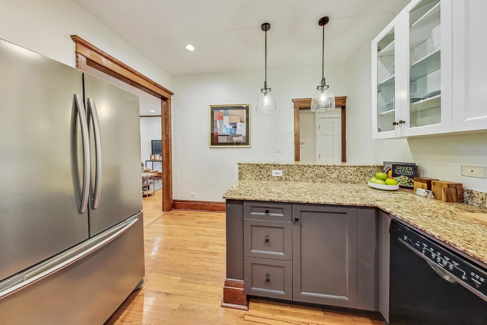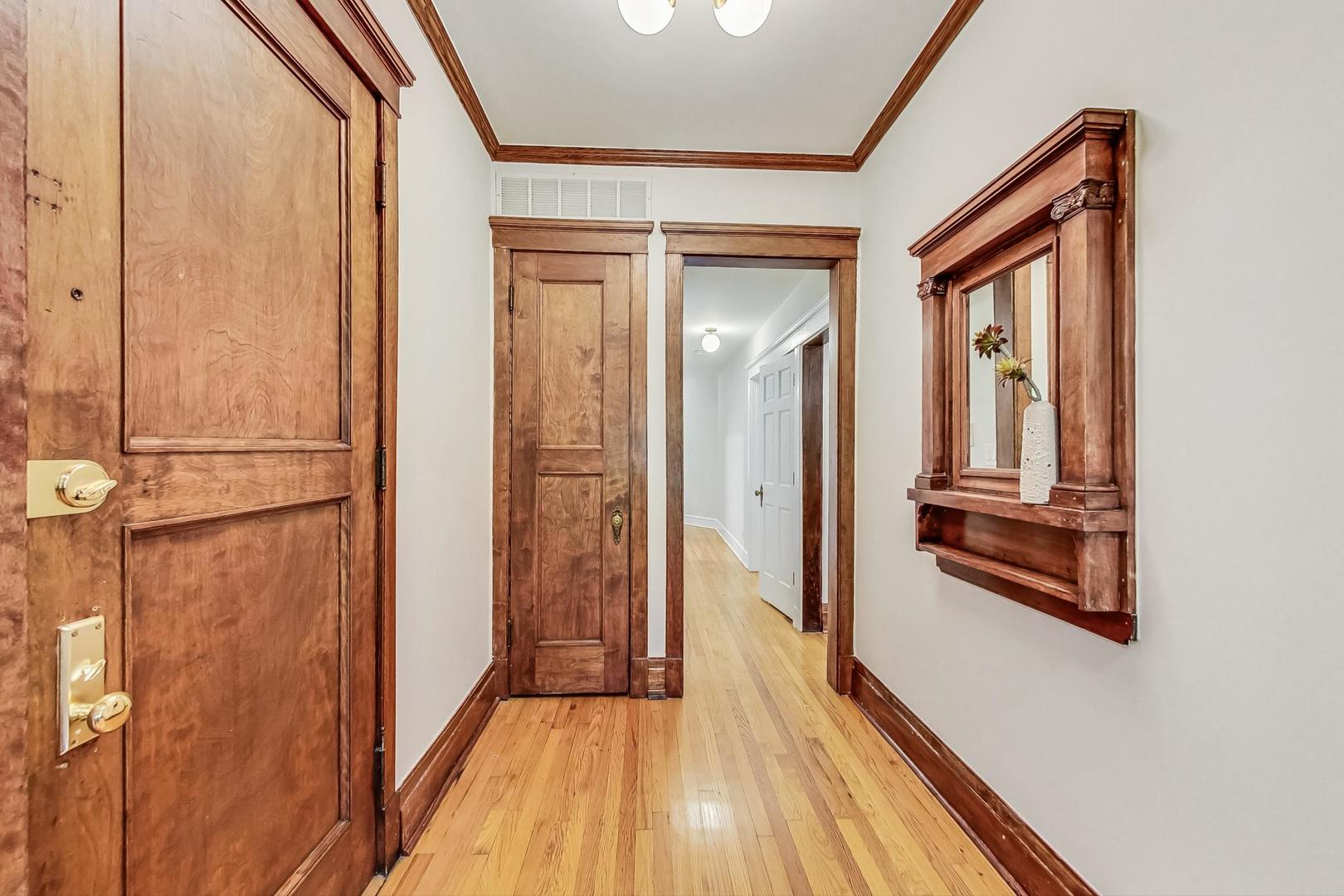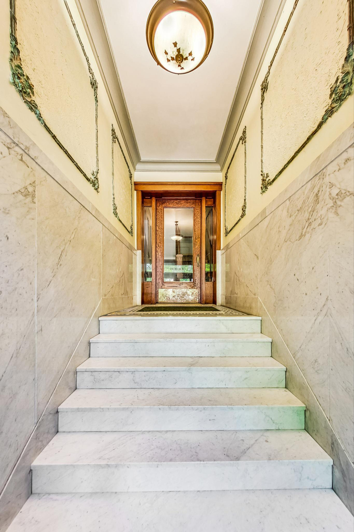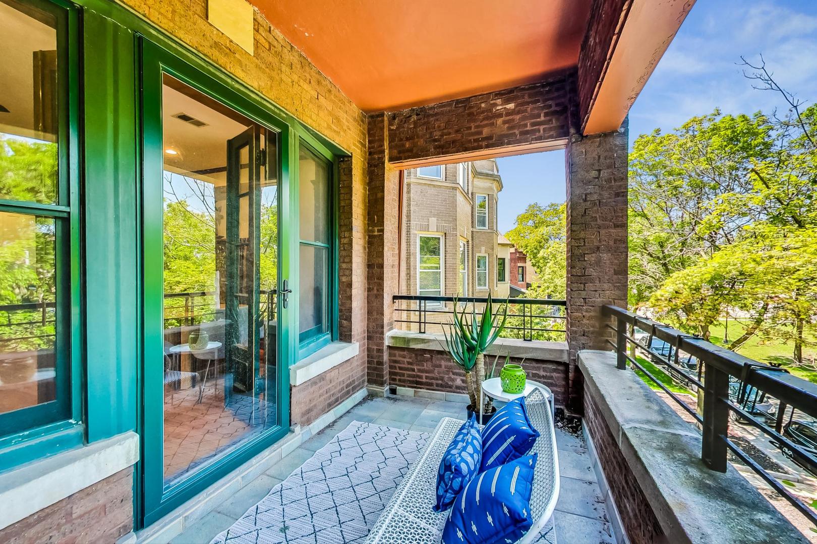 HIGHEST & BEST DUE BY NOON SUNDAY 8/4. Live in the HEART of Logan Square in this stunning vintage 3 bed/2 bath home right on the Boulevard. This residence redefines vintage glamour and modern living, featuring professionally designed bathrooms (completed in 2022), 9.5 ft ceilings, oak flooring, exquisite original wood trim and built-ins throughout. This classic landmark building boasts a gracious marble entryway, leading to an elegant foyer with original built-in mirror and charming greeting space. The generous living & dining areas include a slate tile fireplace flanked by original oak cabinets, and easy access to the front terrace for lounging and grilling with pretty views overlooking the Boulevard - and the best Farmer's Market in town. The open kitchen features granite counters, breakfast bar and plenty of cabinet space. The primary suite includes a huge walk-in closet, balcony and a stunning ensuite bath with custom walnut double vanity w/ quartz countertop, restoration hardware finishes, marble tile flooring, gorgeous sconces & new lighting. Both the second and third bedrooms have professionally organized closets. Third bedroom, with beautiful french doors, is perfect for an office/guest bedroom combo. Second full bath was also gutted and professionally designed in 2022 and includes custom maple vanity w/ quartz countertop, hidden linen closet, West Elm medicine cabinet, marble flooring, and gorgeous walk-in shower w/ Kohler/Delta accessories. GARAGE PARKING and storage unit are included. New LG washer/dryer Washtower (2022). Enjoy some of the city's best parks, award-winning dining, shops, and convenience of the blue line. This classic vintage home with tasteful modern updates is a true gem of Logan Boulevard - don't miss!