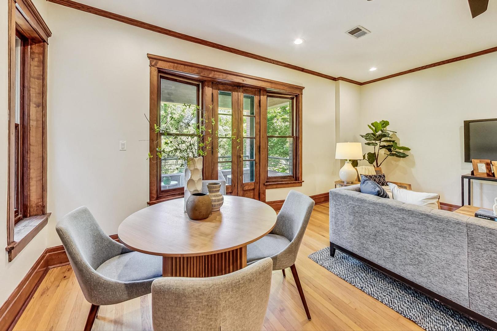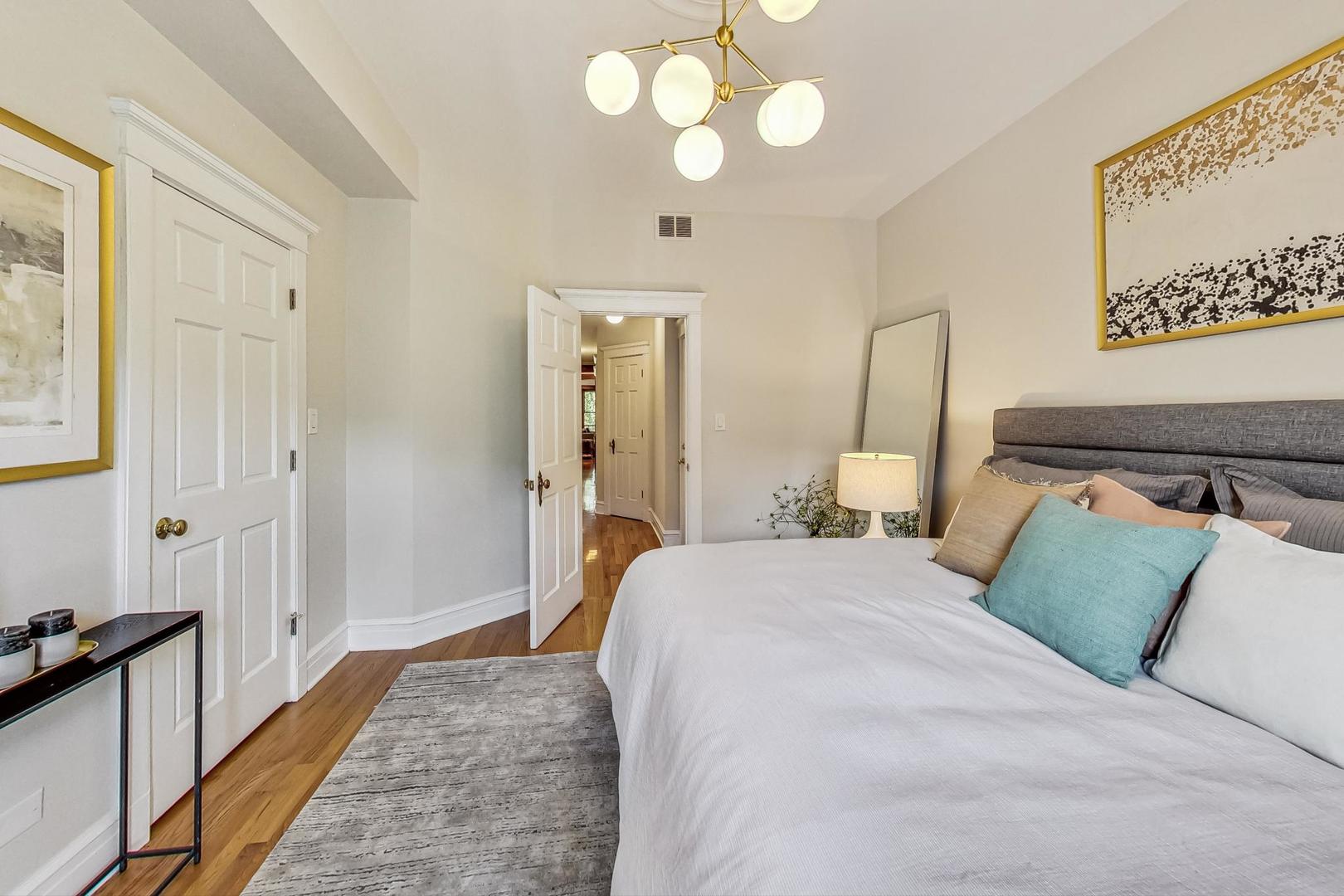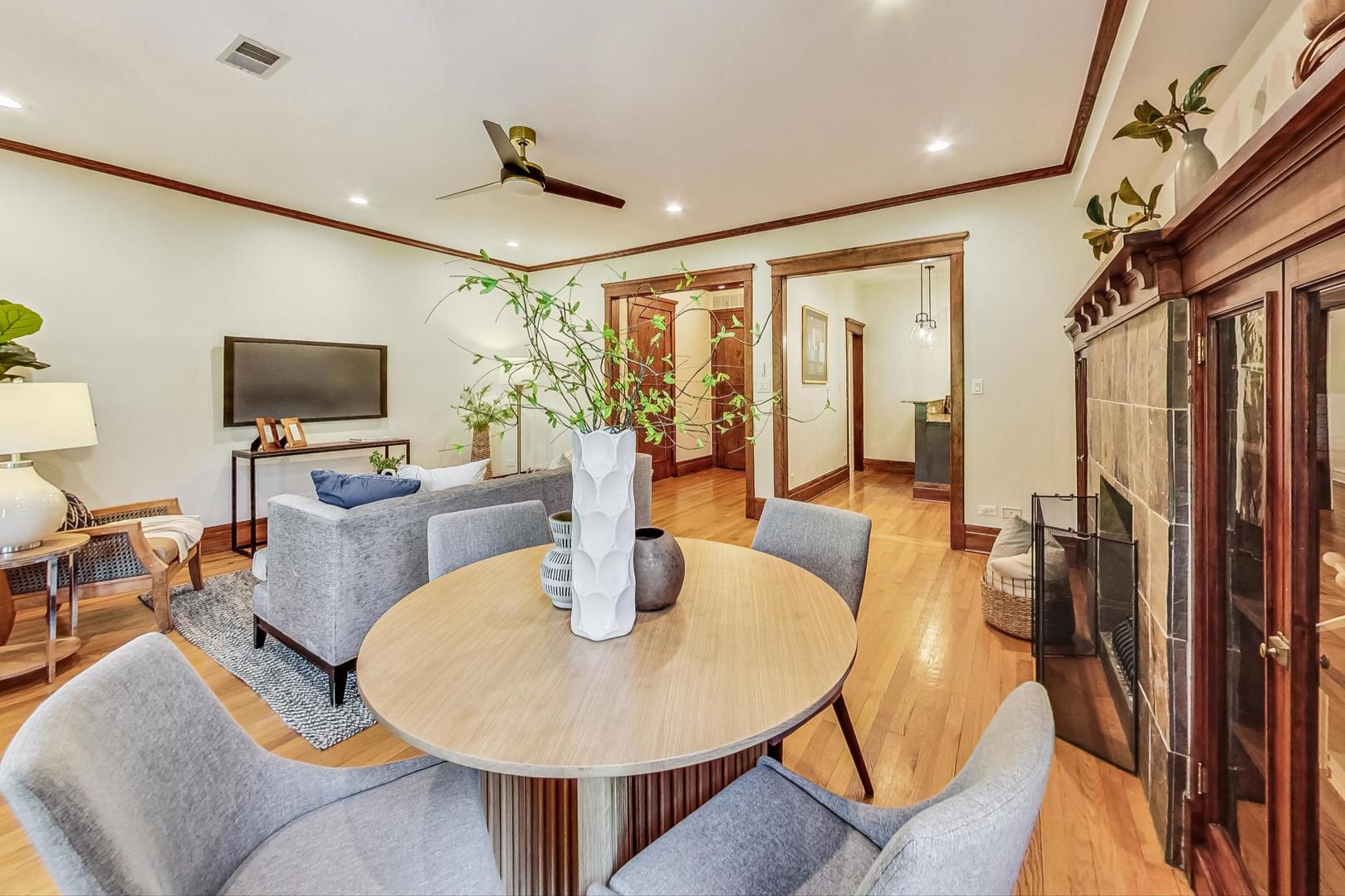 HIGHEST & BEST DUE BY NOON SUNDAY 8/4. Live in the HEART of Logan Square in this stunning vintage 3 bed/2 bath home right on the Boulevard. This residence redefines vintage glamour and modern living, featuring professionally designed bathrooms (completed in 2022), 9.5 ft ceilings, oak flooring, exquisite original wood trim and built-ins throughout. This classic landmark building boasts a gracious marble entryway, leading to an elegant foyer with original built-in mirror and charming greeting space. The generous living & dining areas include a slate tile fireplace flanked by original oak cabinets, and easy access to the front terrace for lounging and grilling with pretty views overlooking the Boulevard - and the best Farmer's Market in town. The open kitchen features granite counters, breakfast bar and plenty of cabinet space. The primary suite includes a huge walk-in closet, balcony and a stunning ensuite bath with custom walnut double vanity w/ quartz countertop, restoration hardware finishes, marble tile flooring, gorgeous sconces & new lighting. Both the second and third bedrooms have professionally organized closets. Third bedroom, with beautiful french doors, is perfect for an office/guest bedroom combo. Second full bath was also gutted and professionally designed in 2022 and includes custom maple vanity w/ quartz countertop, hidden linen closet, West Elm medicine cabinet, marble flooring, and gorgeous walk-in shower w/ Kohler/Delta accessories. GARAGE PARKING and storage unit are included. New LG washer/dryer Washtower (2022). Enjoy some of the city's best parks, award-winning dining, shops, and convenience of the blue line. This classic vintage home with tasteful modern updates is a true gem of Logan Boulevard - don't miss!