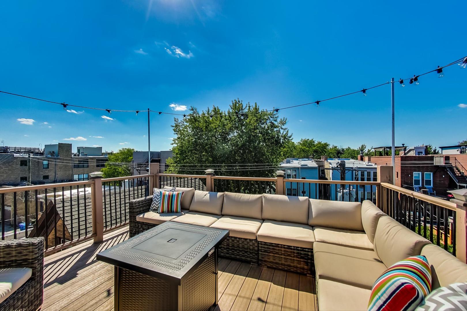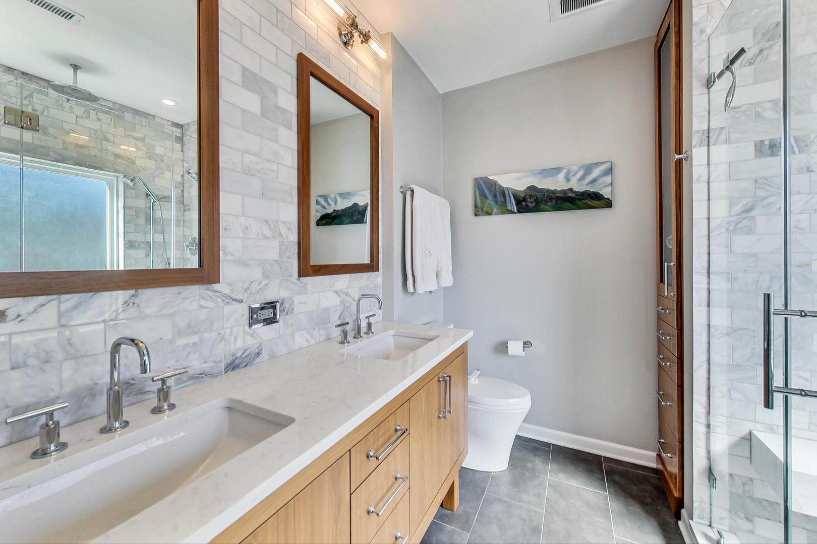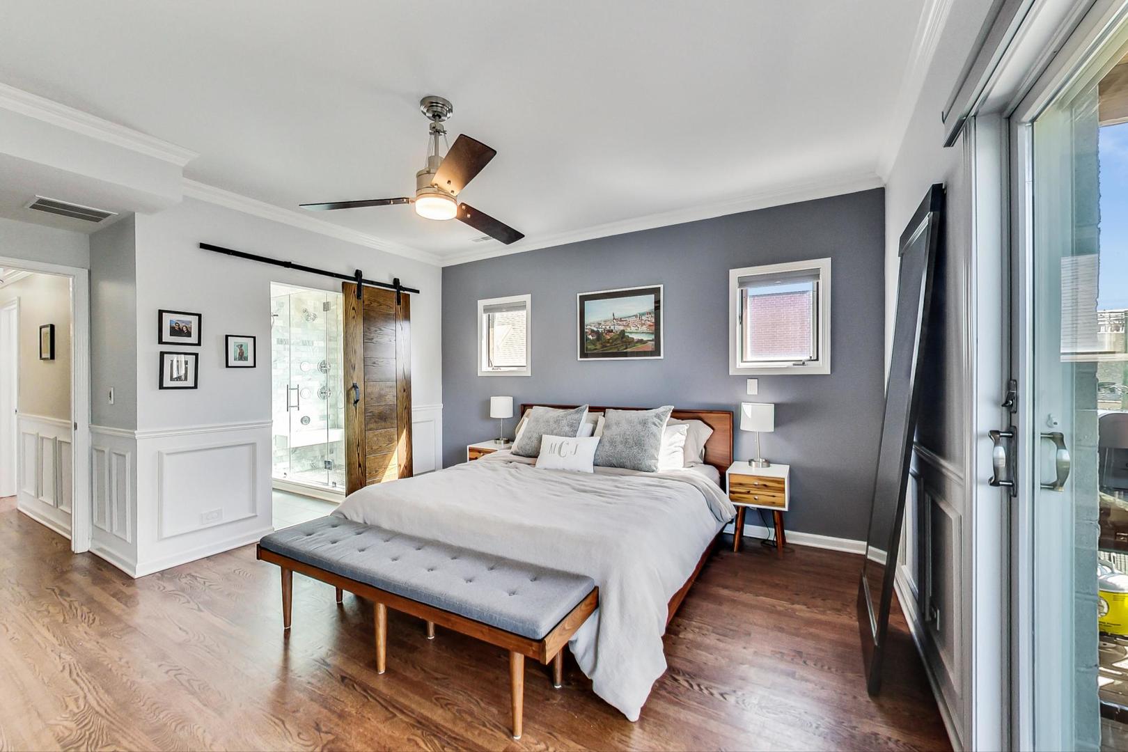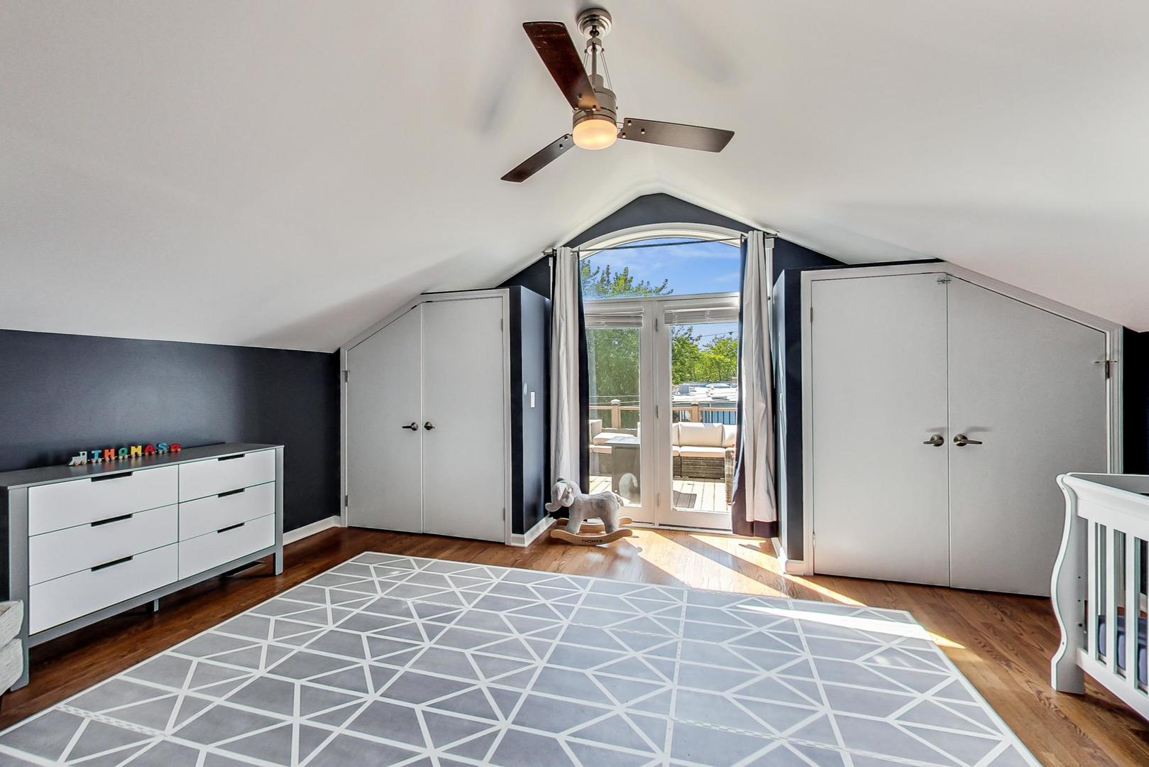 Don't miss this expansive, sophisticated 3bed/2bath + office on one of Lakeview's best blocks - complete w/ TWO oversized decks & garage parking. This duplex penthouse experience begins w/ a private entry staircase that leads up to the bright and airy living room & formal dining area with vaulted cathedral ceilings and skylights, allowing for great natural light throughout. Chic white built-ins flank the woodburning fireplace adding both style and function w/ a bar area & storage. The main level also boasts hardwood floors, new crown moulding, millwork & wainscoting throughout. Beautifully updated eat-in kitchen features white shaker-style cabinets, granite countertops, natural stone backsplash, and all SS appliances. Fridge, dishwasher, oven/range & microwave all replaced in 2020. The lovely primary suite is sure to impress w/ double closets and a spa-like en-suite bath w/ walnut farm door, heated floors, massive marble shower, & dual vanity. From the primary suite, brand new sliding glass doors lead you to one of two oversized and freshly upgraded decks tricked out with composite decking, railings & custom lighting. The bright & well-appointed second bedroom w/ newly added closet and second full bathroom are also located on the main level. Retreat upstairs to the spacious and inviting family room on the second level, as well as the generously-sized third bedroom and brand new home office. Dark wood beams & numerous skylights create the perfect second level of versatile live/work space. Enjoy other outdoor entertaining options with an additional oversized deck on the second level as well as the front balcony. GARAGE PARKING included. PRIME Lakeview location just a few blocks from Southport Corridor, all the great restaurants, shopping, and nightlife as well as Whole Foods and BOTH the red and brown lines. Level 1+ Nettelhorst Elem School. HOA $257/mo. Taxes $12,010.27. *Second floor office is plumbed and could easily be converted to a 3rd bathroom