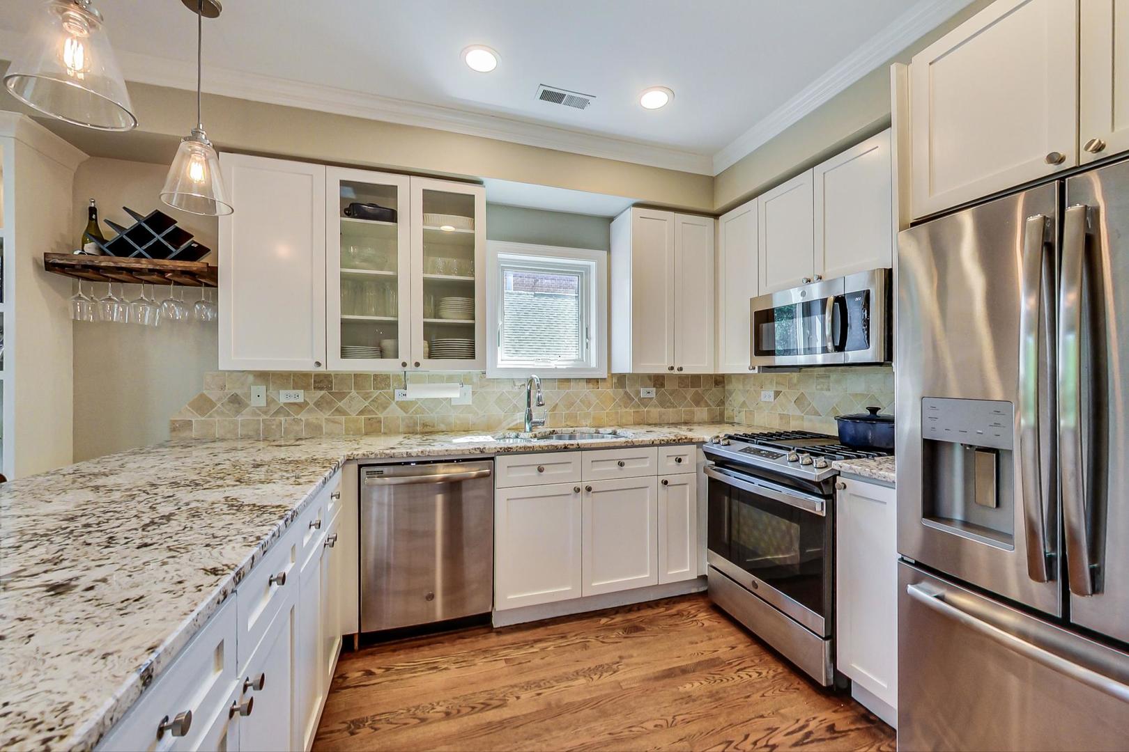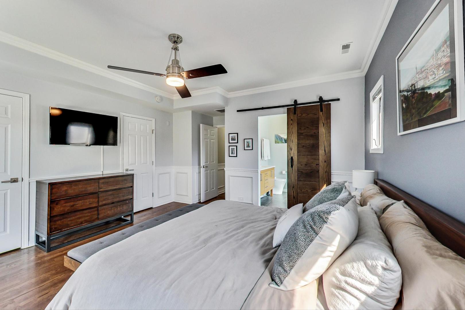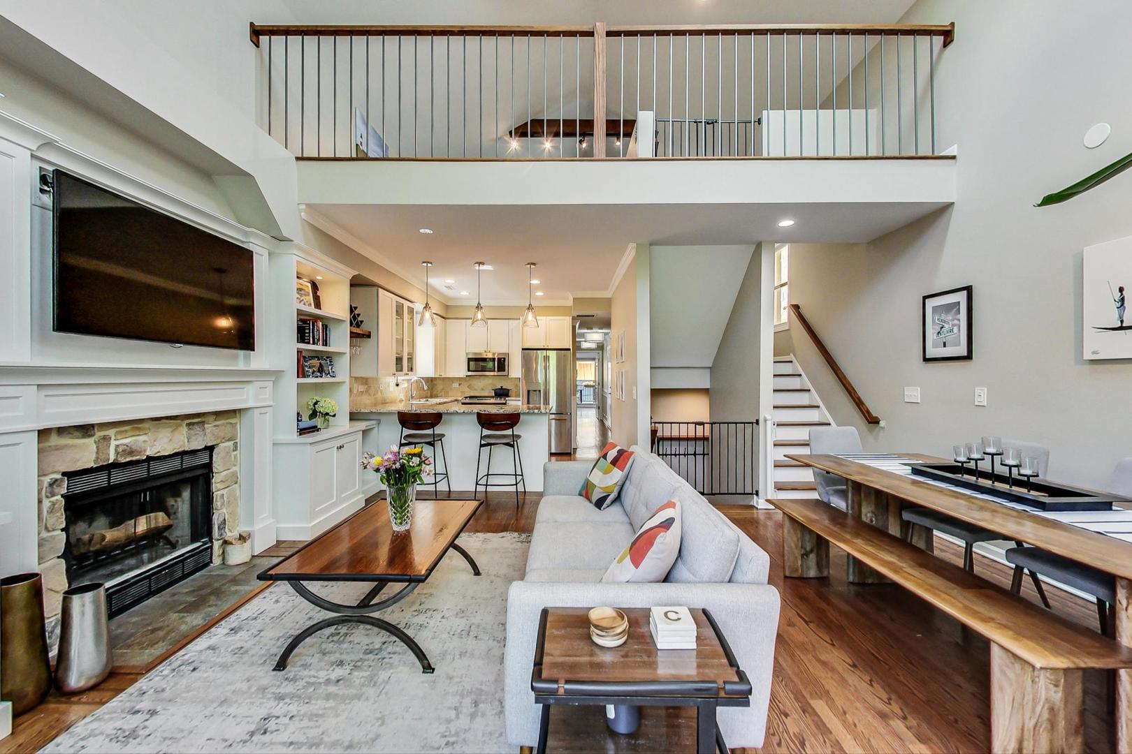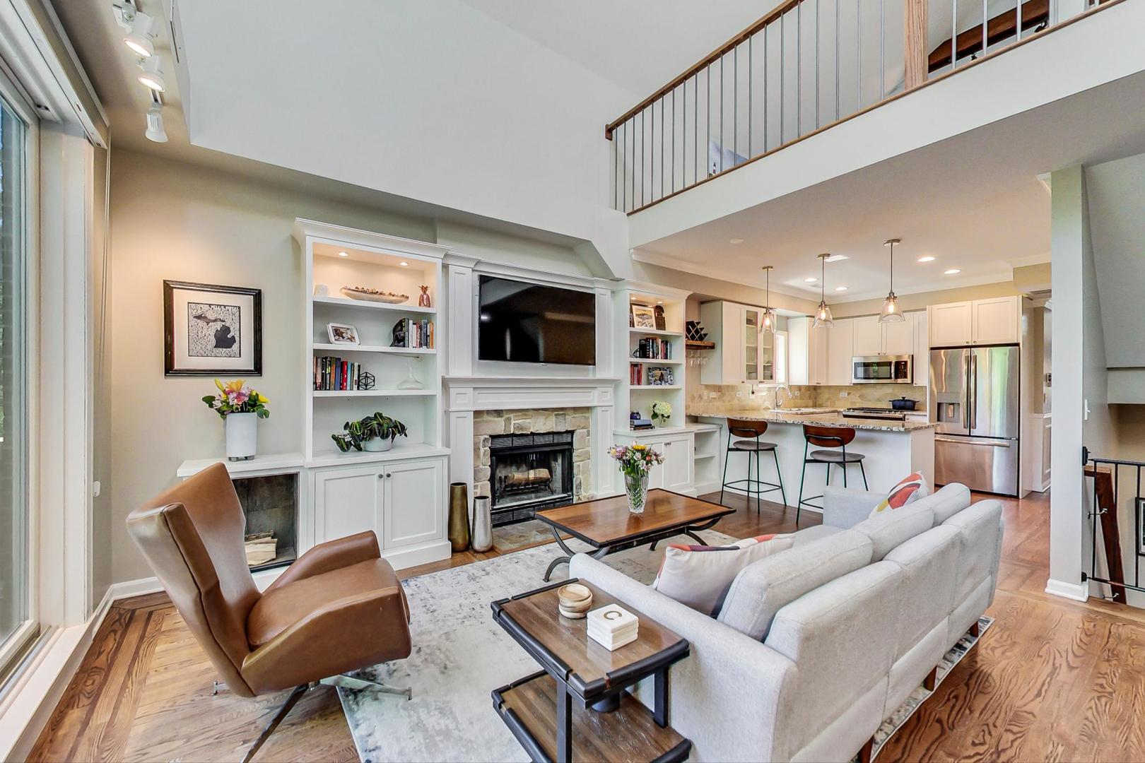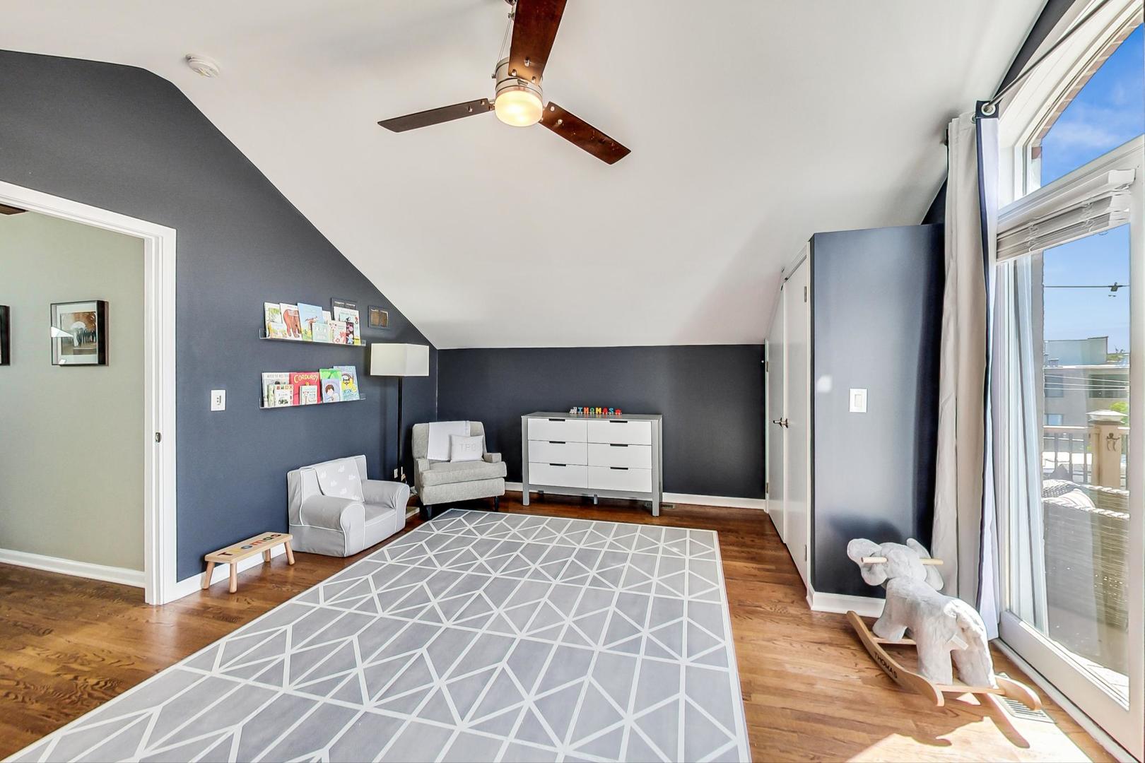 Don't miss this expansive, sophisticated 3bed/2bath + office on one of Lakeview's best blocks - complete w/ TWO oversized decks & garage parking. This duplex penthouse experience begins w/ a private entry staircase that leads up to the bright and airy living room & formal dining area with vaulted cathedral ceilings and skylights, allowing for great natural light throughout. Chic white built-ins flank the woodburning fireplace adding both style and function w/ a bar area & storage. The main level also boasts hardwood floors, new crown moulding, millwork & wainscoting throughout. Beautifully updated eat-in kitchen features white shaker-style cabinets, granite countertops, natural stone backsplash, and all SS appliances. Fridge, dishwasher, oven/range & microwave all replaced in 2020. The lovely primary suite is sure to impress w/ double closets and a spa-like en-suite bath w/ walnut farm door, heated floors, massive marble shower, & dual vanity. From the primary suite, brand new sliding glass doors lead you to one of two oversized and freshly upgraded decks tricked out with composite decking, railings & custom lighting. The bright & well-appointed second bedroom w/ newly added closet and second full bathroom are also located on the main level. Retreat upstairs to the spacious and inviting family room on the second level, as well as the generously-sized third bedroom and brand new home office. Dark wood beams & numerous skylights create the perfect second level of versatile live/work space. Enjoy other outdoor entertaining options with an additional oversized deck on the second level as well as the front balcony. GARAGE PARKING included. PRIME Lakeview location just a few blocks from Southport Corridor, all the great restaurants, shopping, and nightlife as well as Whole Foods and BOTH the red and brown lines. Level 1+ Nettelhorst Elem School. HOA $257/mo. Taxes $12,010.27. *Second floor office is plumbed and could easily be converted to a 3rd bathroom