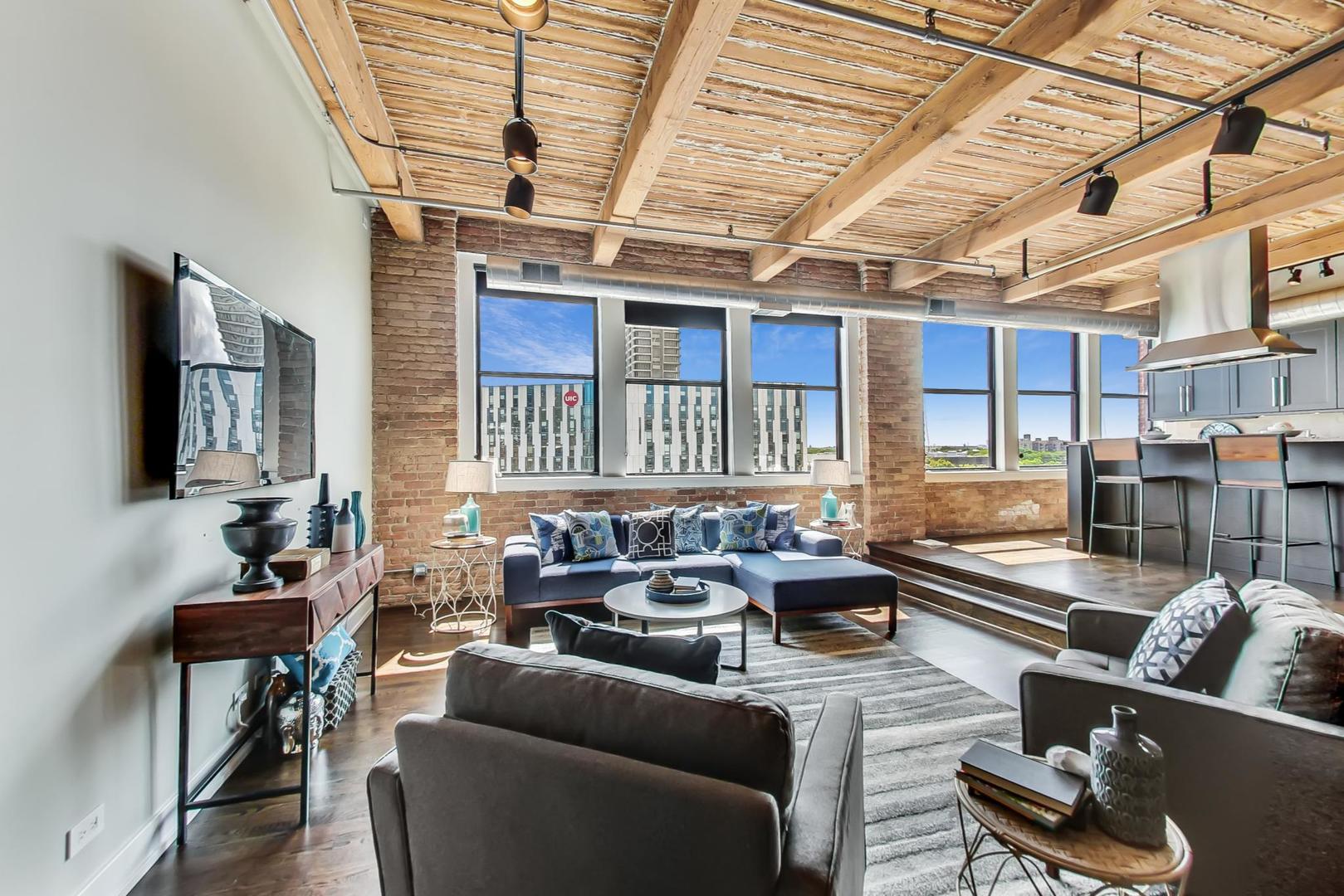 Welcome home to this one-of-a-kind authentic timber loft in the heart of West Loop. This sprawling 1780sqft 2bed/2bath boasts soaring 14ft ceilings, hardwood floors, fully enclosed bedrooms, chic barn door details and abundant storage throughout. Sophistication exudes from this open concept living, dining, and kitchen layout with a wall of oversized windows and hard-to-find unobstructed Southern exposure. Primary suite complete with enormous walk-in closet plus custom shoe closet and lux en-suite bath. Large second bedroom outfitted with gracious double doors and professionally organized walk-in closet. Enjoy an ideal split floor plan with no shared bedroom walls. Tasteful & timeless kitchen w/ Wolf & Subzero appliances, large island, custom cabinetry, and plenty of workspace. Side by side W/D with elegant quartz folding station and even more storage. Walk to Restaurant Row, Greek Town, Bartelme Park, Mariano's & Whole Foods from this unbeatable West Loop location. Storage unit, cable and internet included in HOA.