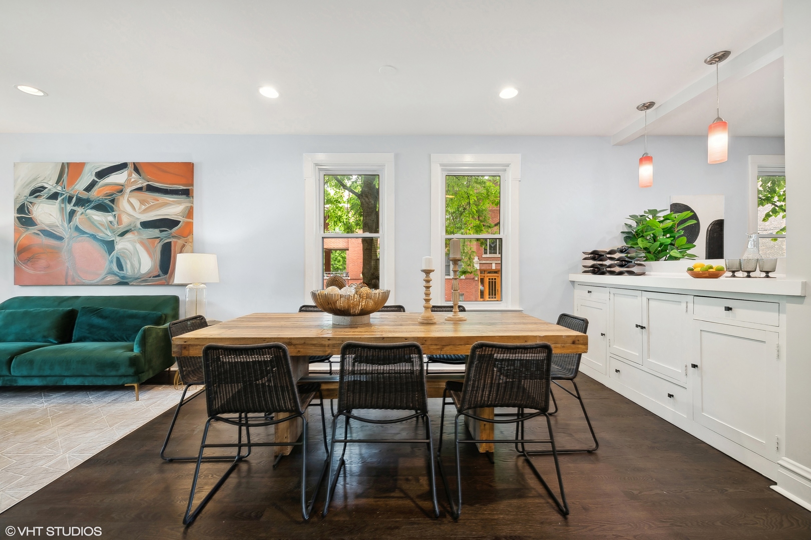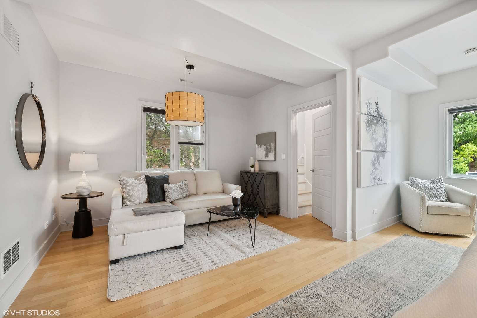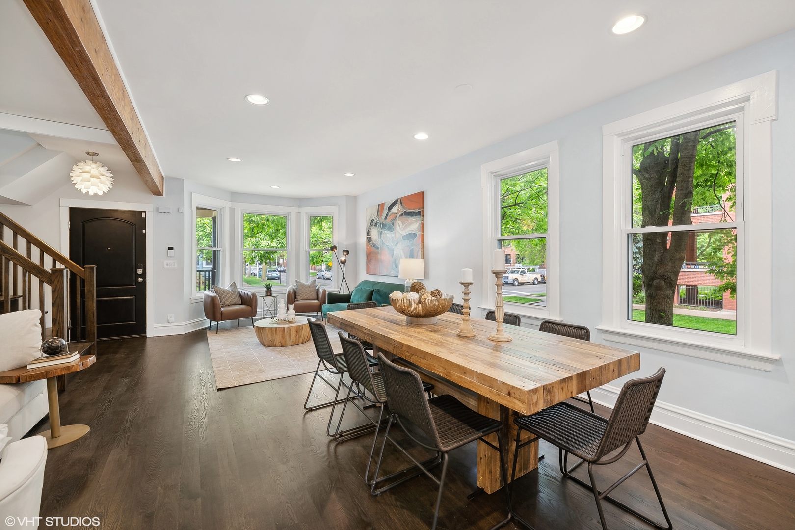 Elegant custom home in North Center within Coonley Elementary! On a tree-lined corner lot with an extra-wide footprint, this home was rehabbed in 2004 and again in 2010 to be the unique and gracious home it is today. Boasting spacious living and bedroom spaces and a cool blend of modern and traditional finishes, a fully finished basement & a rare 3rd level - this home has so much to offer! Off the formal front entry with offset mudroom nook, the flexible living spaces allow you to decide how you use the large formal and informal open spaces with room for a full dining room set, built-in vintage hutch and adjacent, convenient powder room for guests. The open kitchen boasts an industrial flair with an oversized butcher block and corrugated steel island with inset beverage refrigerator and ample seating, flat panel maple cabinets with honed granite counters, custom backsplash, stainless appliances including double oven, six-burner cooktop, professional hood and custom lighting. Just off the kitchen is another flexible space, perfect for the soft seating of a family room or additional, more casual dining. And, just off the kitchen is a patio door to your outside oasis. Upstairs find four gracious bedrooms all with large closets. The immense primary suite includes ample space for a king bed in addition to a cozy, private den area for a relaxing at the end of the day. It features a large, professionally organized walk-in closet and an en-suite bath with modern finishes, radiant floor, dual-sinks, inset medicine cabinets, mosaic and wood accents, soaking tub and walk-in glass shower with bench and product cubby. The second bedroom is also en-suite with a pretty mosaic tile bath and glass walk-in shower. The two upstairs bedrooms share a sunny, white, dual-sink jack-and-jill bath between them, ample closet space for each and an additional reading nook. One of the top floor bedrooms is a tandem space through the third bedroom or off the primary suite - perfect for a baby's room or an office. Finally, the fully finished, mostly above grade basement adds all the play or entertaining space you could want with a standing shower bath, extra storage and both carpeted and tiled flooring for game or movie nights! Other features of this home include dark stained, white-washed and maple hardwood floors, oversized windows, custom millwork, built-ins, Dual-Zoned HVAC, Hardie Board siding, amazing storage & more! And, not to be outdone, the outside spaces also impress with low-maintenance turf and paver patio enclosed front and back yards, composite front porch and back deck (the back reinforced and with power to support a hot tub) and a two-car garage that includes attic storage, EV charging capability, built-in storage racks, a work bench, party door to back yard and rare Berteau curb cut. All this in fantastic North Center a block from Coonley Elementary and just steps from dining, shopping, nightlife, grocery, transport & the best of the city parks.