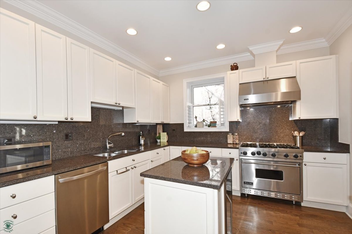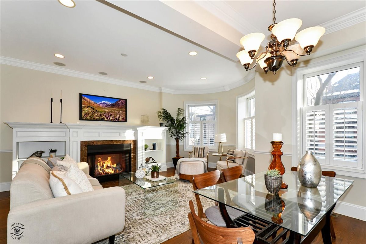 This huge corner 4 bed 3 bath duplex-down is flooded with light and in a great Lakeview location. Ideal floorplan with 2 bedrooms up and 2 bedrooms down. This spacious home features: fireplace w/built-in book cases, chef's kitchen w/commercial SS appls, 2 primary suites, hardwood floors on both levels, huge lower level family room w/wet bar. Amazing millwork, plantation shutters & wired for sound. Furance and a/c replaced in 2020. Being sold as-is.