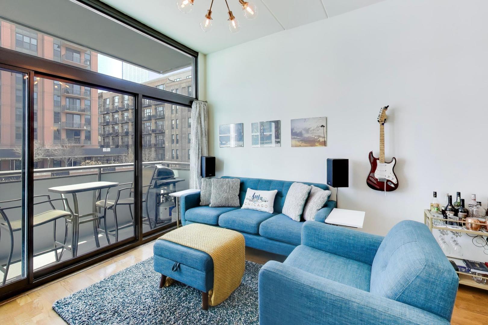 Meticulously maintained Fulton Market 1bed/1bath with HEATED GARAGE PARKING INCLUDED. Bright & sunny East facing unit overlooking Desplaines St (not an interior unit). The gracious layout features a welcoming front hallway with plenty of closet/mudroom space. Open concept living & dining space with all hardwood floors, high ceilings & a wall of windows and sliders that lead you directly to the private balcony. Fully equipped kitchen with quartz countertops, glass mosaic tile backsplash, and plenty of cabinet storage. Nicely appointed full bath & in-unit W/D. Large primary bedroom with tons of light and great closet space. This unit has been lived in by an original owner and this is the first time it has hit the market -- the pride of ownership really shows. Building amenities include a fitness center, gorgeous brand new rooftop terrace with lush garden, grills, fire pit & outdoor furniture. Also located on the rooftop level is a party room, business center, full kitchen, shuffleboard table, lounge seating & TVs. The building sits on a quiet street, just steps away from the top restaurants, bars, and grocery stores in Fulton Market, West Loop, River West, and the Loop. INVESTOR FRIENDLY building - no rental cap. Pet friendly. Deeded parking space and storage unit included in price. Don't miss!