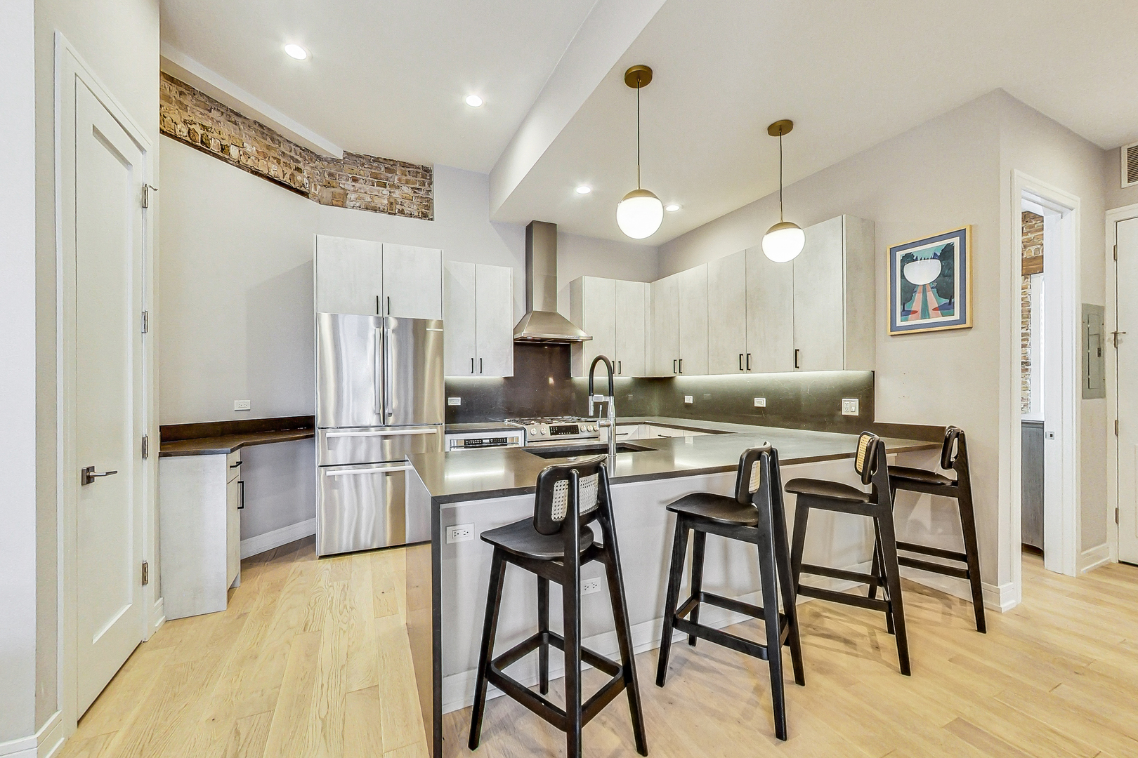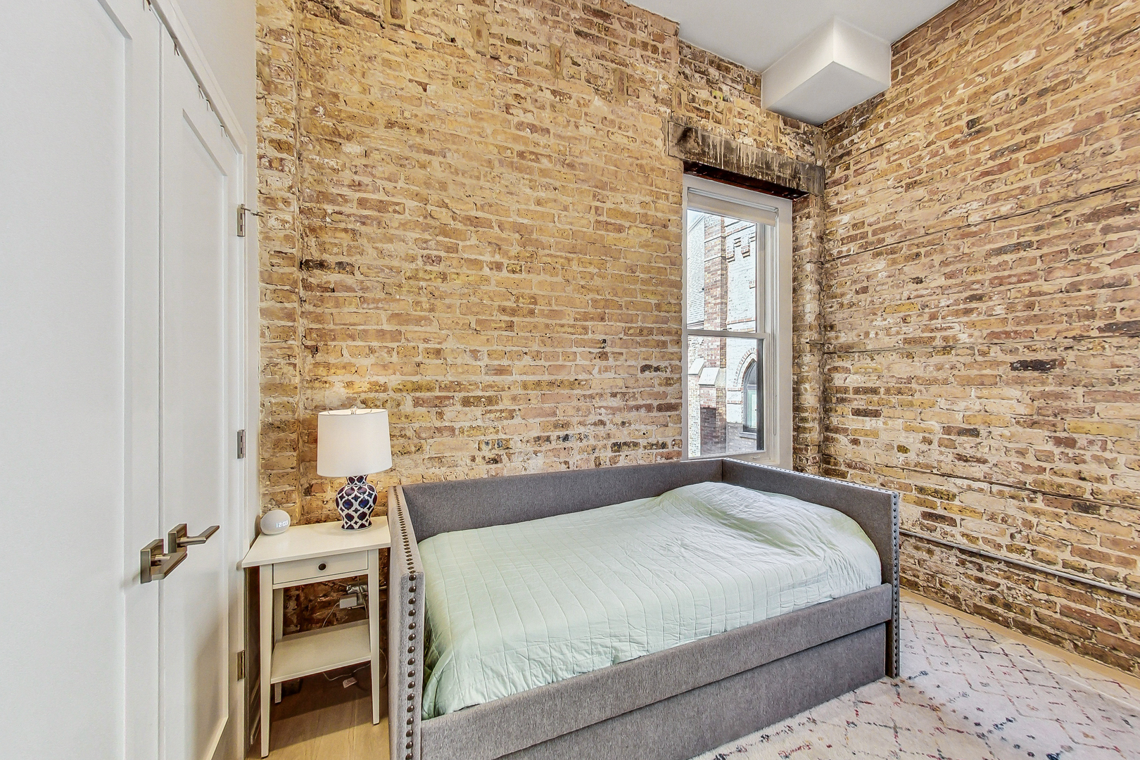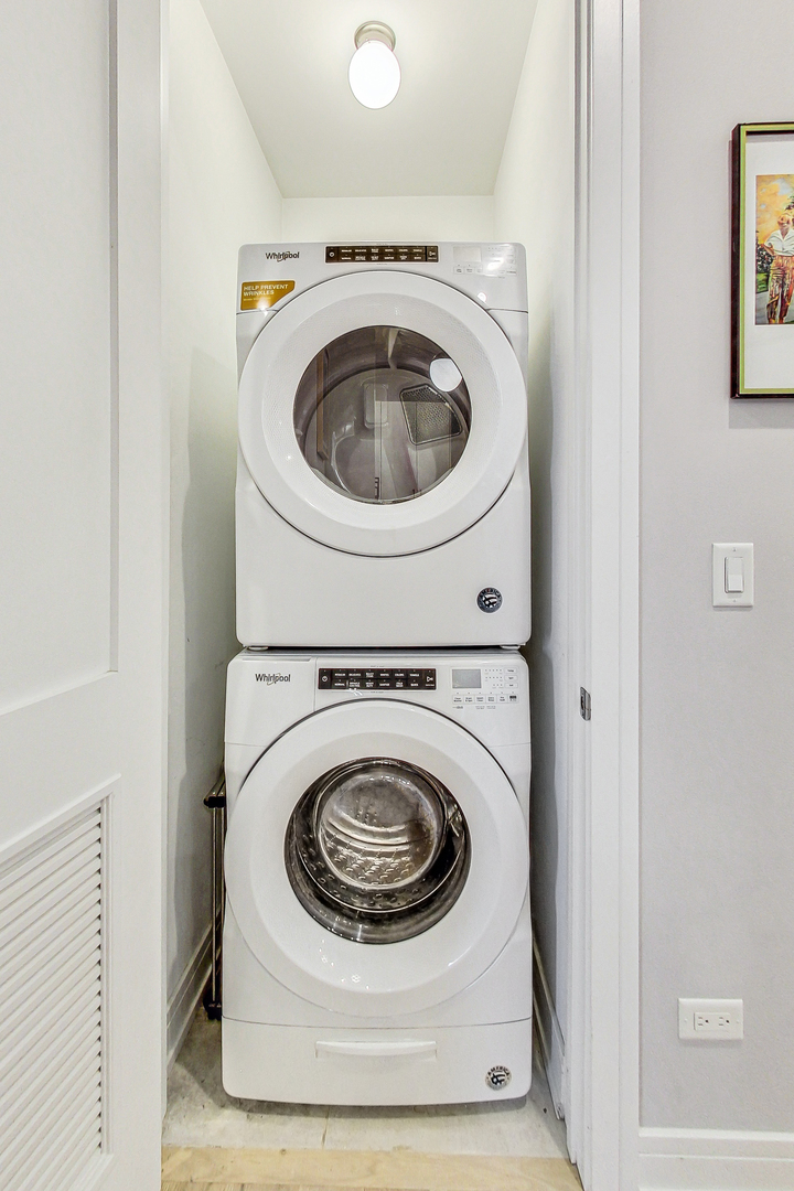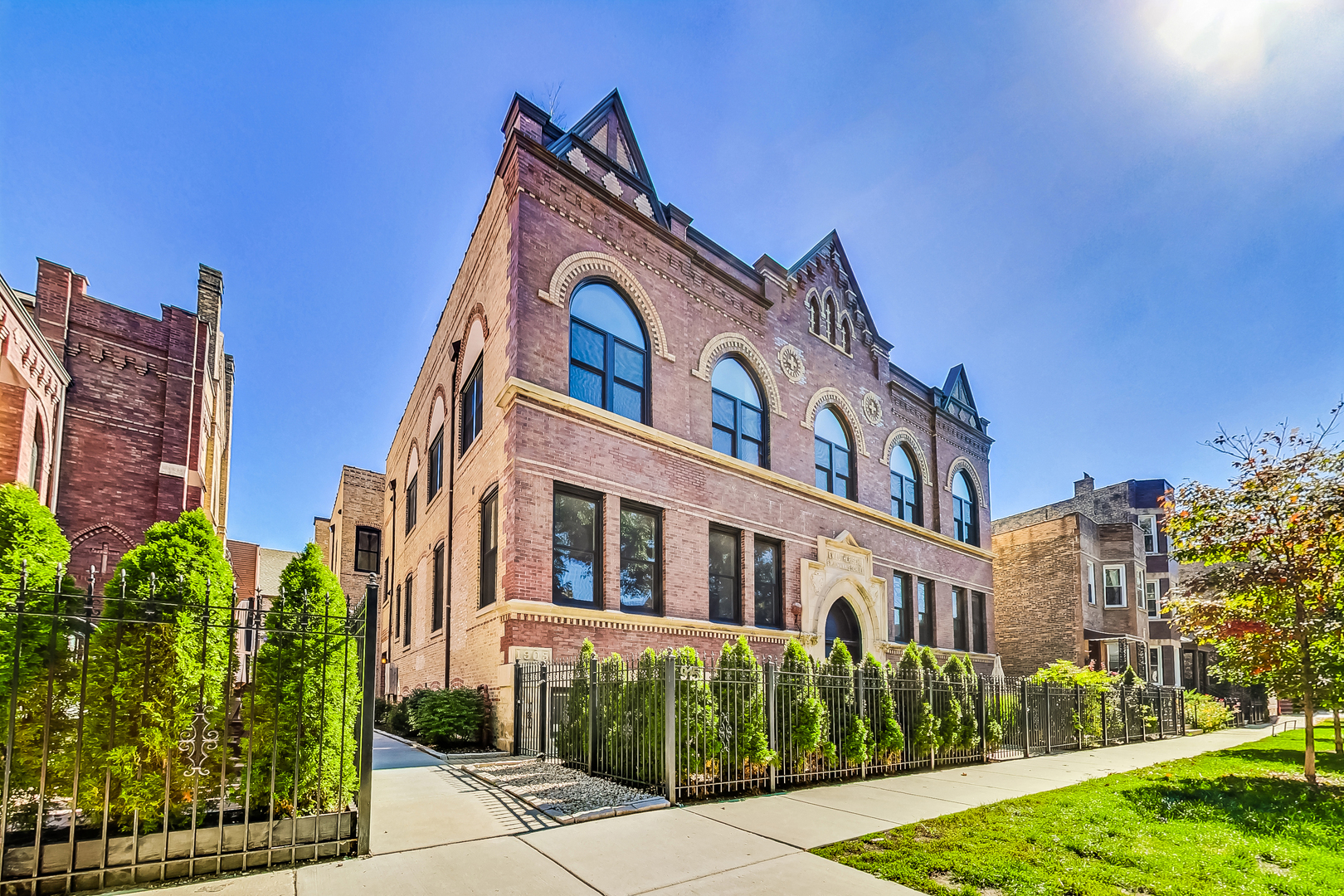 Welcome to Academy Hall, where history meets contemporary luxury. Originally built in 1905 as a Chicago landmark school, this exquisite property underwent a meticulous rehab and was restored in 2018, preserving its historic character while introducing modern amenities. With 11-foot ceilings, exposed brick and beams, and white oak flooring, this residence exudes timeless charm and elegance. Sunlight floods through large windows all day, illuminating the open concept living spaces. The gourmet kitchen showcases quartz countertops, an expansive island, and high-end Bosch appliances. Step onto the massive rooftop decks for breathtaking city views perfect for relaxation and entertaining. Walk-in closets, a full-size washer and dryer, and a spa-like primary bathroom with double sinks, quartz, and a spacious shower with custom seat to make daily living a pleasure. With a tankless water heater for endless hot showers and a handicap accessible chair lift, this condo offers both comfort and convenience. The property includes one garage spot with an EV Home Charger and additional storage. Academy Hall presents a rare Chicago living experience where you can walk to everything West Town, Wicker Park and Ukrainian Village has to offer.
