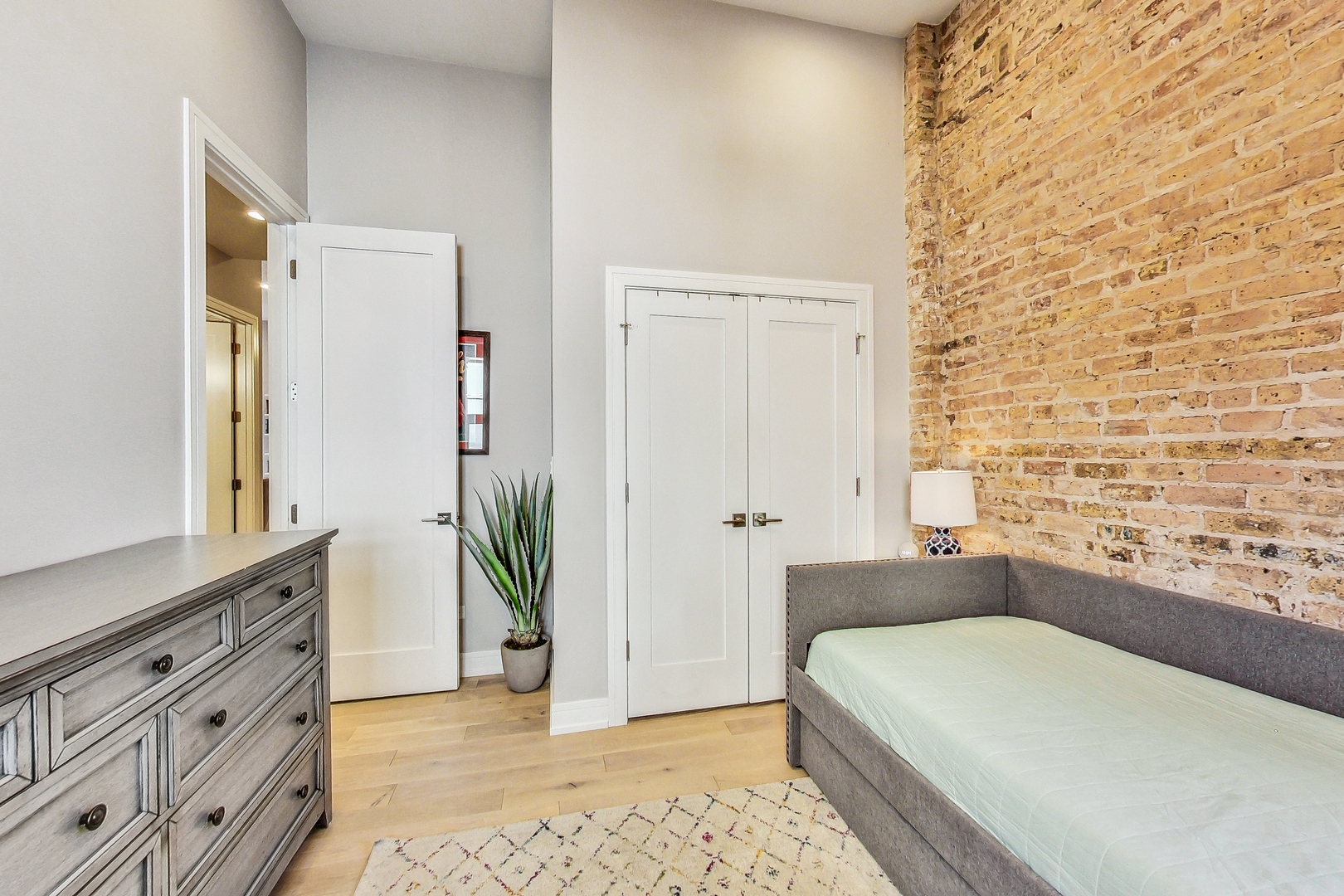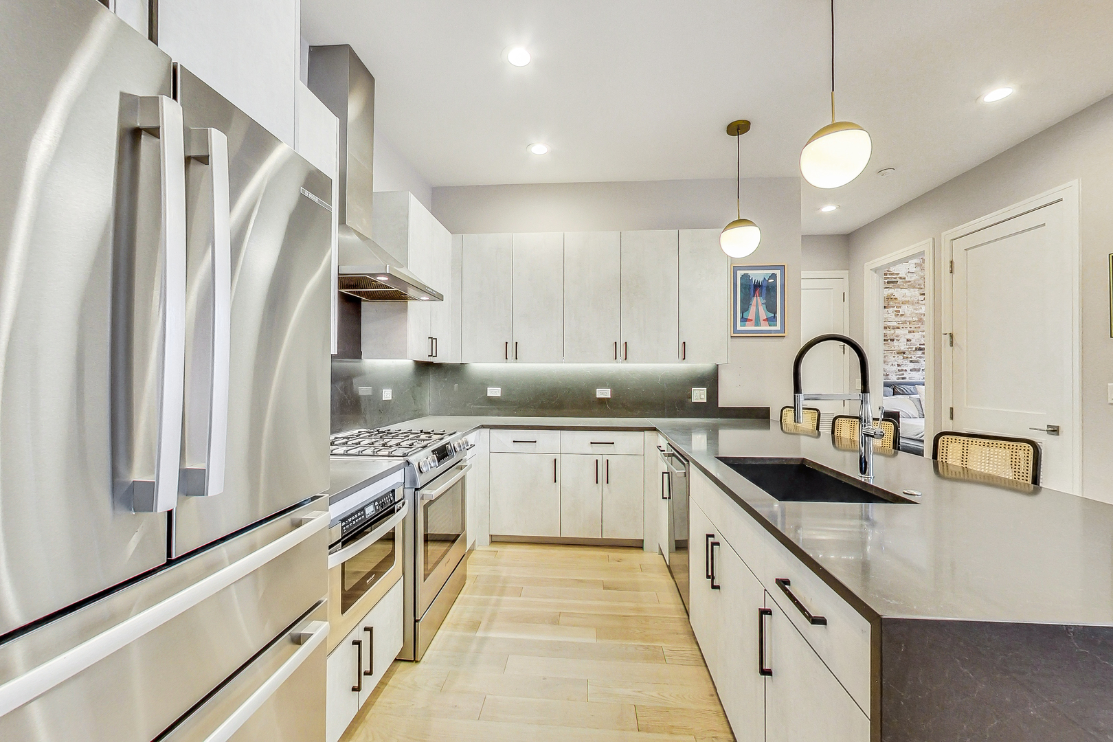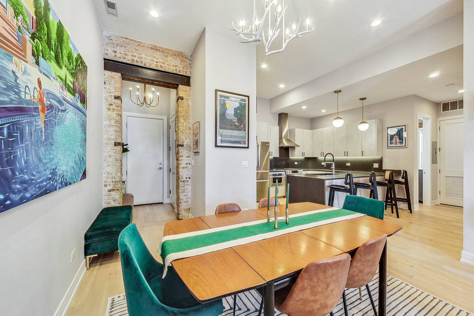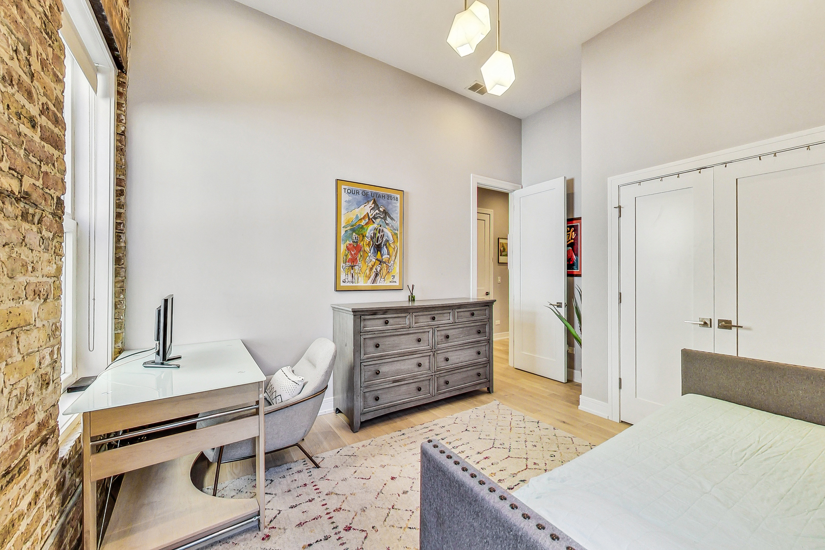 Welcome to Academy Hall, where history meets contemporary luxury. Originally built in 1905 as a Chicago landmark school, this exquisite property underwent a meticulous rehab and was restored in 2018, preserving its historic character while introducing modern amenities. With 11-foot ceilings, exposed brick and beams, and white oak flooring, this residence exudes timeless charm and elegance. Sunlight floods through large windows all day, illuminating the open concept living spaces. The gourmet kitchen showcases quartz countertops, an expansive island, and high-end Bosch appliances. Step onto the massive rooftop decks for breathtaking city views perfect for relaxation and entertaining. Walk-in closets, a full-size washer and dryer, and a spa-like primary bathroom with double sinks, quartz, and a spacious shower with custom seat to make daily living a pleasure. With a tankless water heater for endless hot showers and a handicap accessible chair lift, this condo offers both comfort and convenience. The property includes one garage spot with an EV Home Charger and additional storage. Academy Hall presents a rare Chicago living experience where you can walk to everything West Town, Wicker Park and Ukrainian Village has to offer.