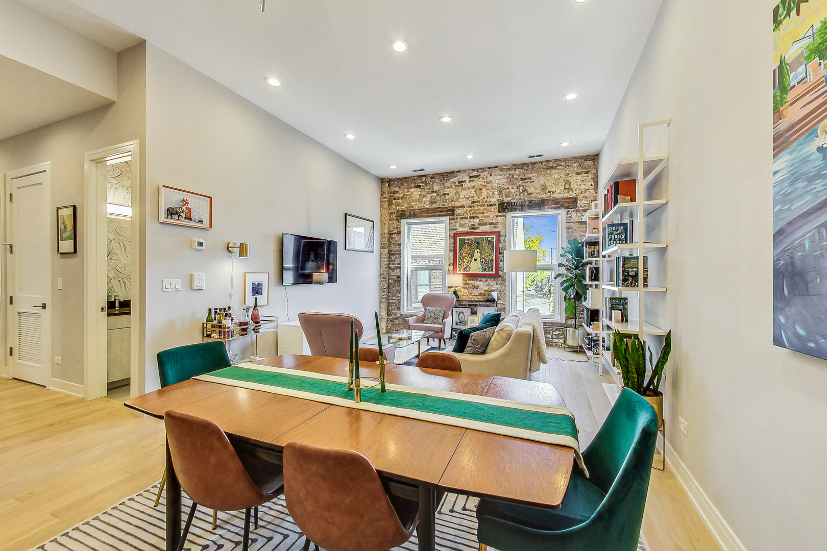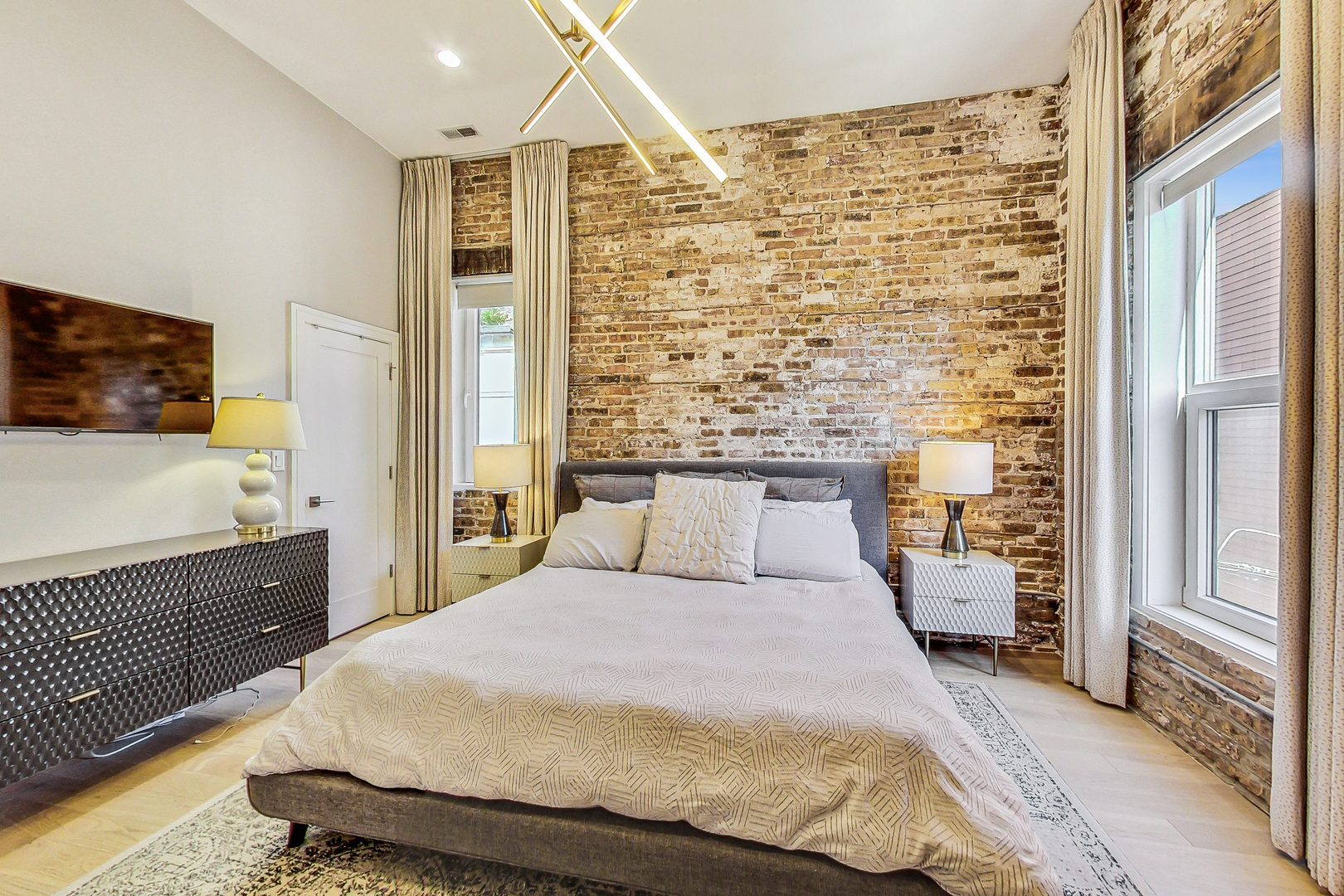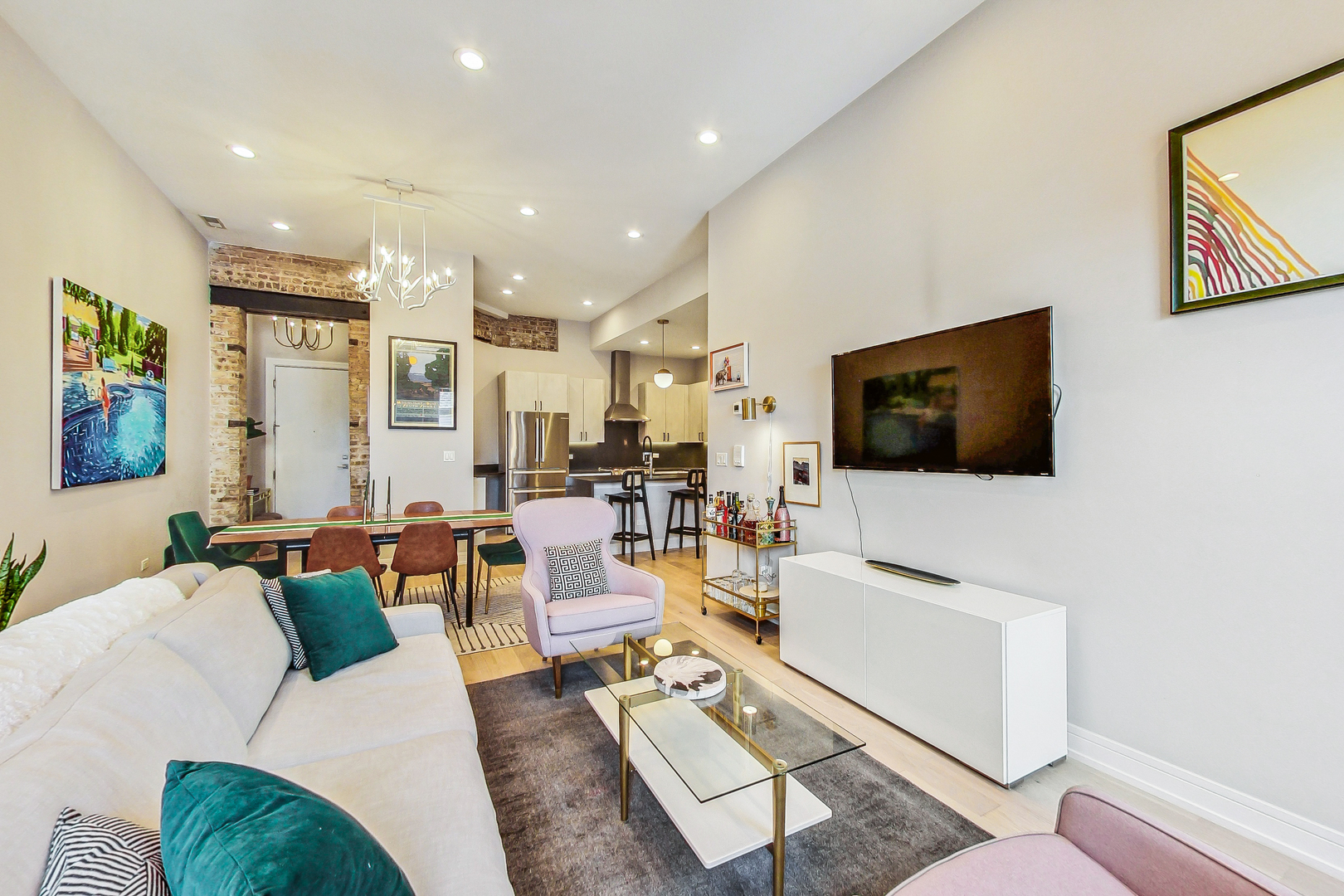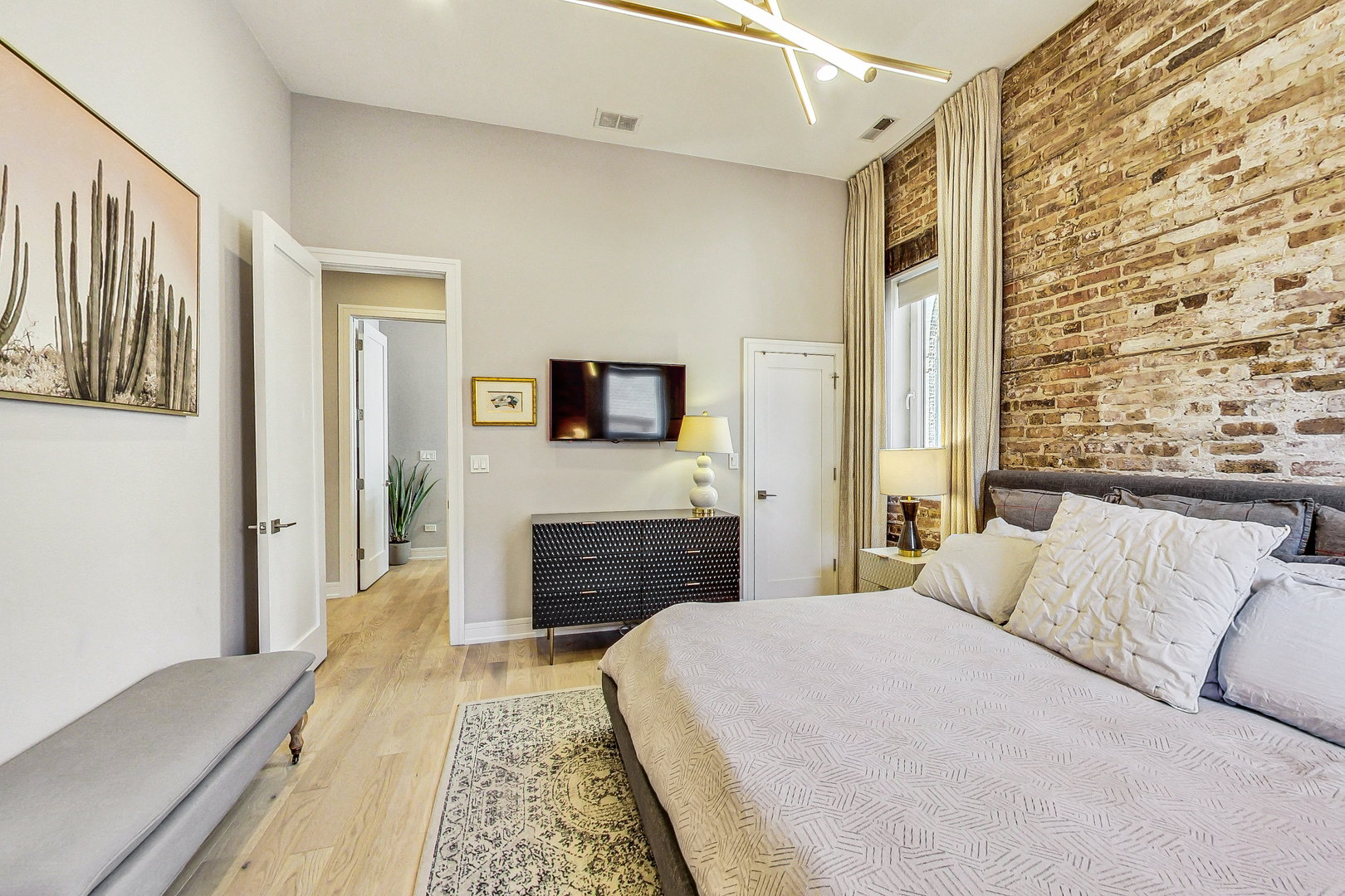 Welcome to Academy Hall, where history meets contemporary luxury. Originally built in 1905 as a Chicago landmark school, this exquisite property underwent a meticulous rehab and was restored in 2018, preserving its historic character while introducing modern amenities. With 11-foot ceilings, exposed brick and beams, and white oak flooring, this residence exudes timeless charm and elegance. Sunlight floods through large windows all day, illuminating the open concept living spaces. The gourmet kitchen showcases quartz countertops, an expansive island, and high-end Bosch appliances. Step onto the massive rooftop decks for breathtaking city views perfect for relaxation and entertaining. Walk-in closets, a full-size washer and dryer, and a spa-like primary bathroom with double sinks, quartz, and a spacious shower with custom seat to make daily living a pleasure. With a tankless water heater for endless hot showers and a handicap accessible chair lift, this condo offers both comfort and convenience. The property includes one garage spot with an EV Home Charger and additional storage. Academy Hall presents a rare Chicago living experience where you can walk to everything West Town, Wicker Park and Ukrainian Village has to offer.